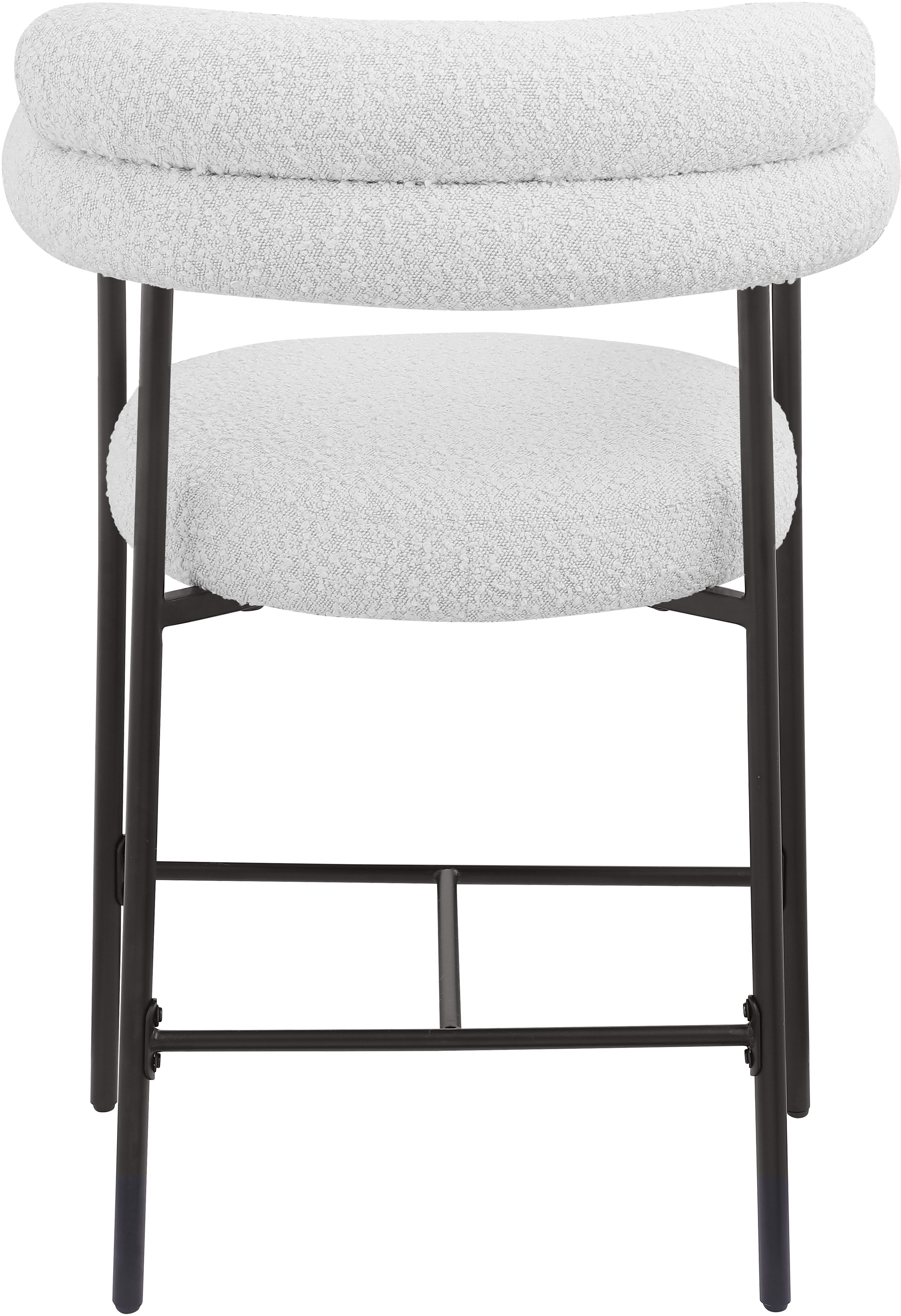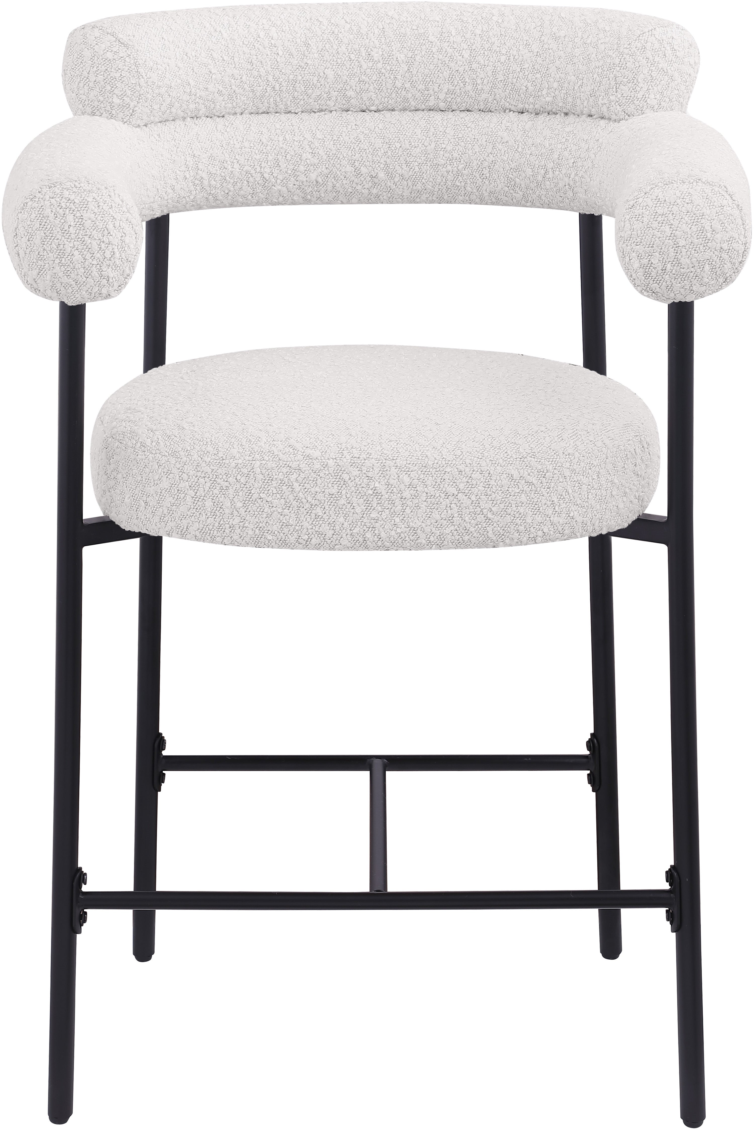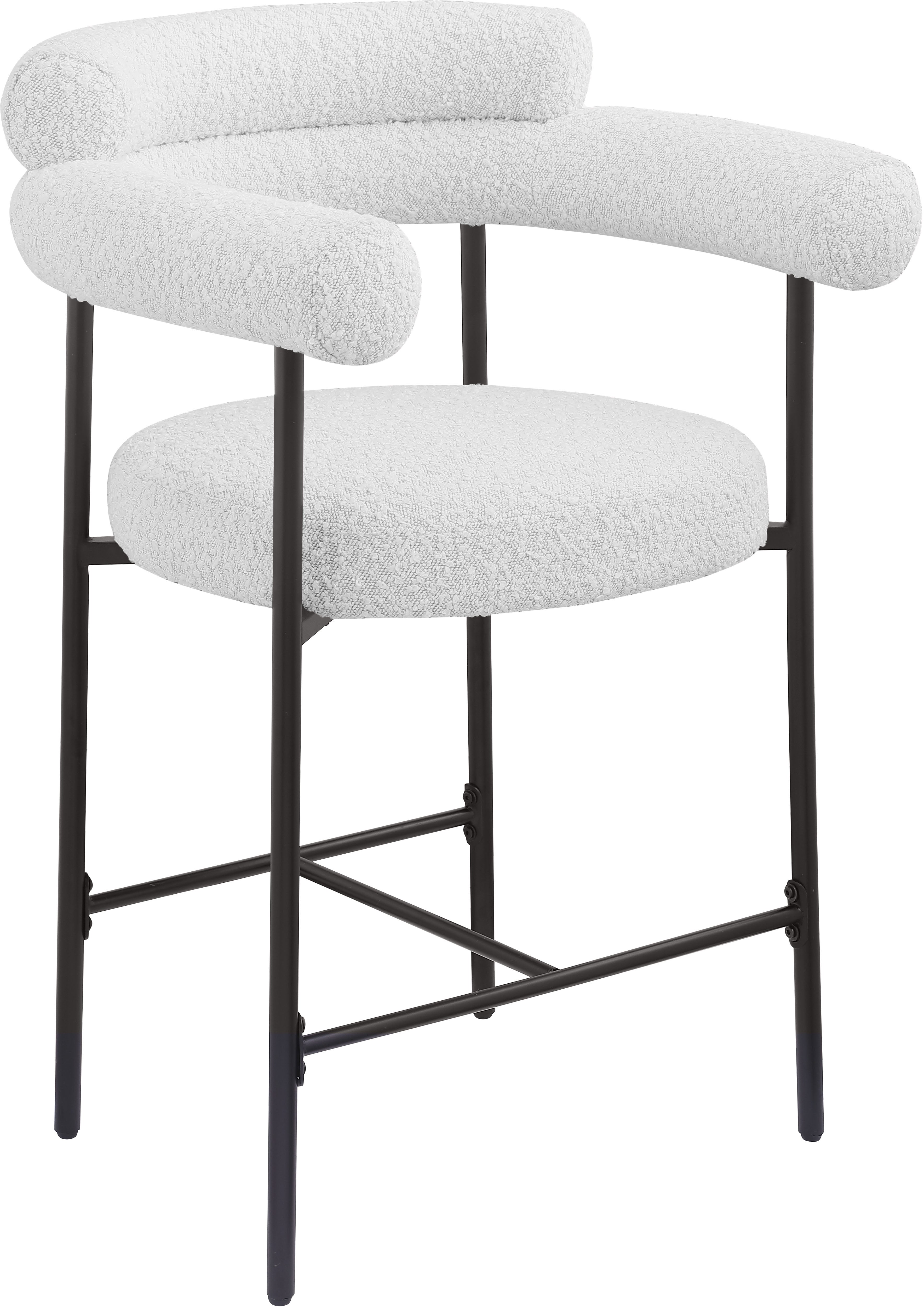 If what you crave is a home bar rescue or kitchen counter rehab, then this Blake counter stool in cream boucle fabric is a good place to start. This beautiful stool has the creature comforts you're looking for to keep guests happy and coming back for more, including a rounded back for structural body support and plump cushions that make sitting and chatting more comfortable. A black matte iron metal frame is sturdy and durable, while the rich cream boucle fabric adds a chic touch.