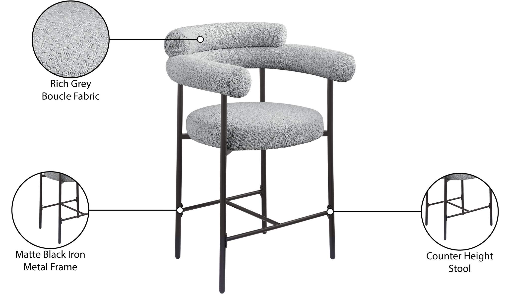 Blake Grey Boucle Fabric Upholstered Counter Stool (Set of 2) | Meridian Furniture - 986Grey-C