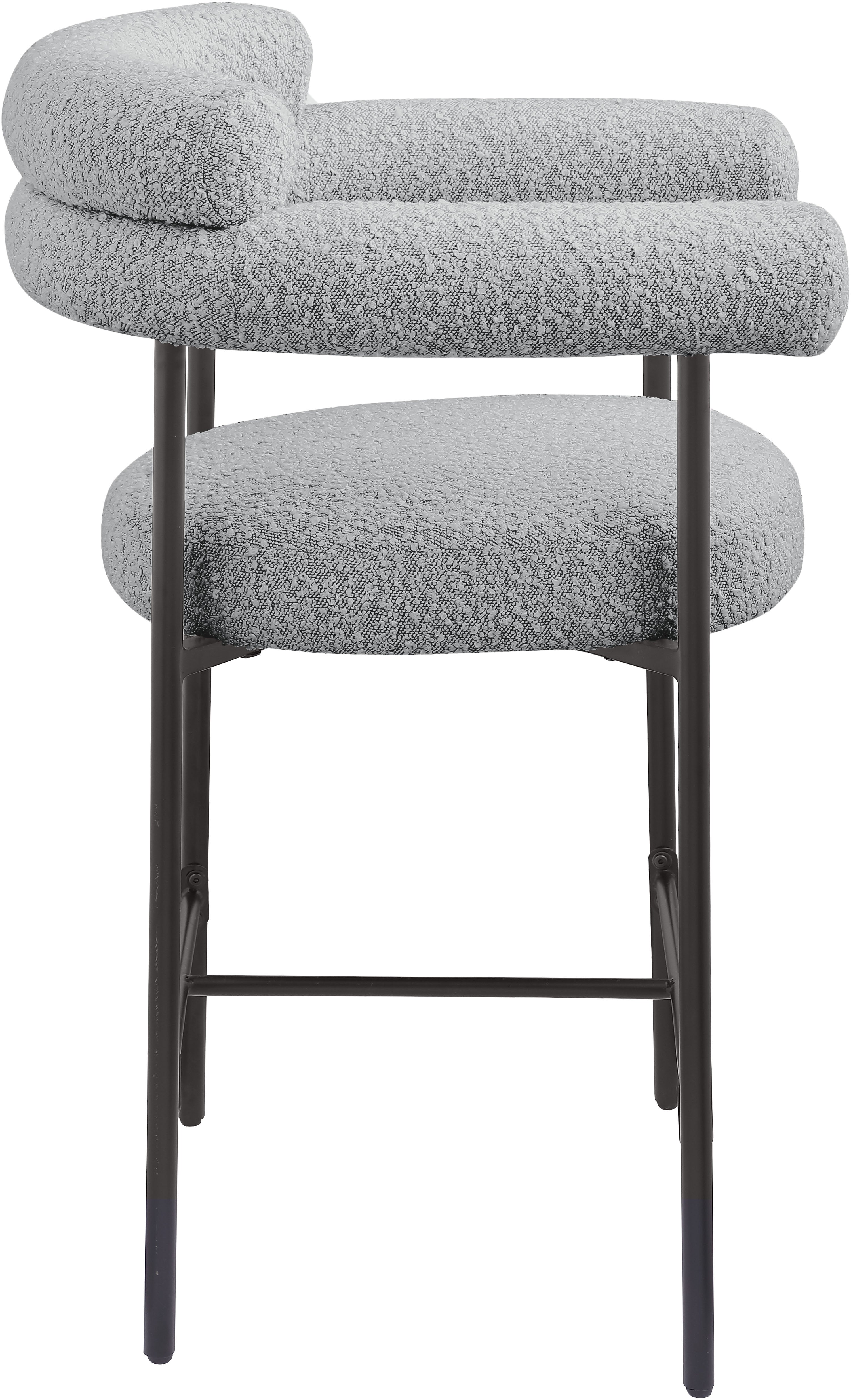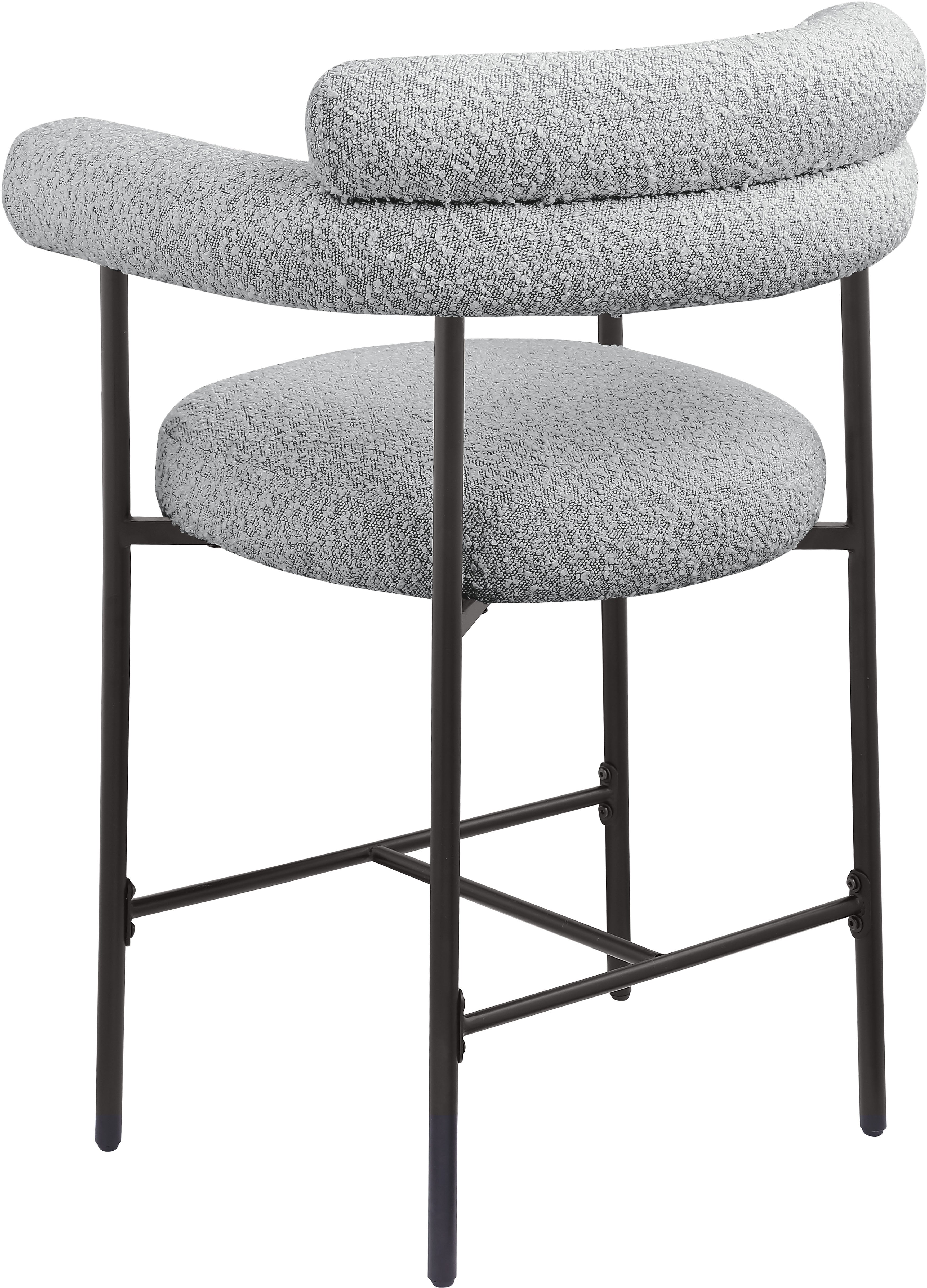 If what you crave is a home bar rescue or kitchen counter rehab, then this Blake counter stool in grey boucle fabric is a good place to start. This beautiful stool has the creature comforts you're looking for to keep guests happy and coming back for more, including a rounded back for structural body support and plump cushions that make sitting and chatting more comfortable. A black matte iron metal frame is sturdy and durable, while the rich grey boucle fabric adds a chic touch.