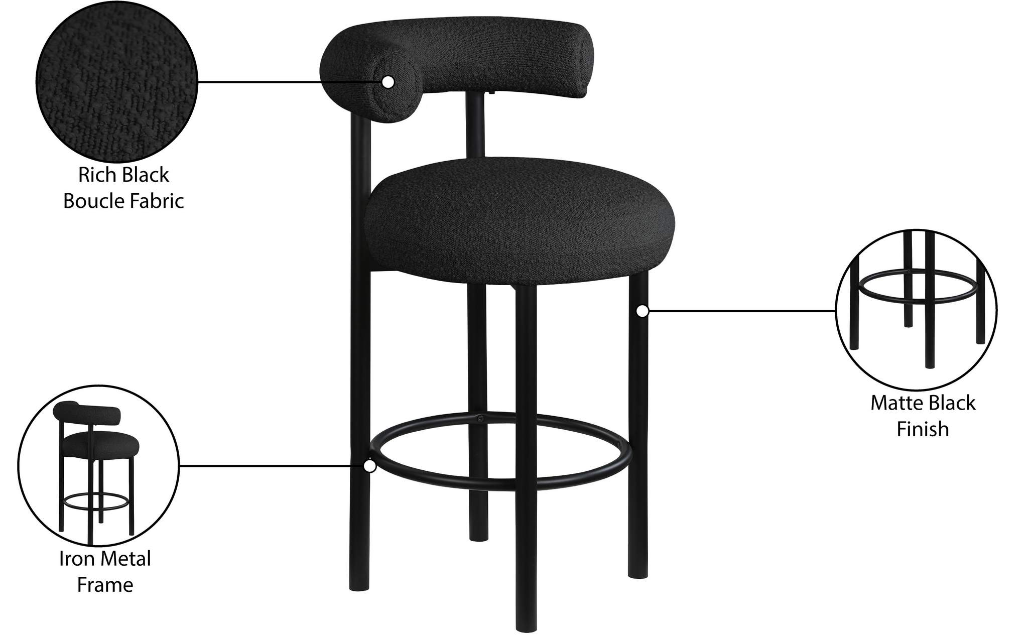 Bordeaux Black Boucle Fabric Upholstered Counter Stool (Set of 2) | Meridian Furniture - 551Black-C