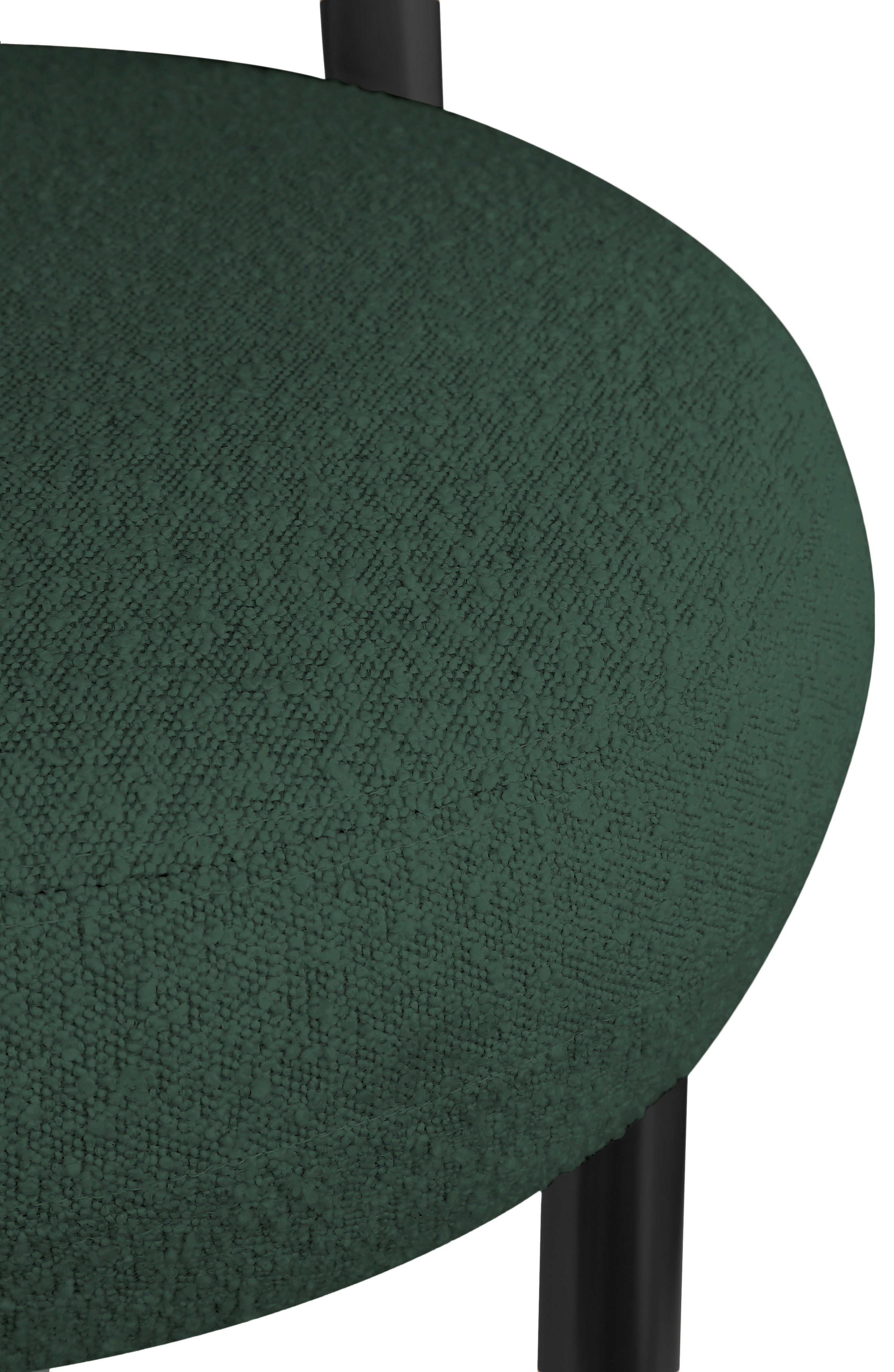Get comfortable in this Bordeaux boucle fabric accent chair. This curvy chair features a back that hugs and provides support to your back while you hang out and get cozy. The soft green boucle fabric is soft to the touch, providing a welcoming spot for you to relax and unwind. A black matte finish on the iron legs gives this chair a touch of modish charm.