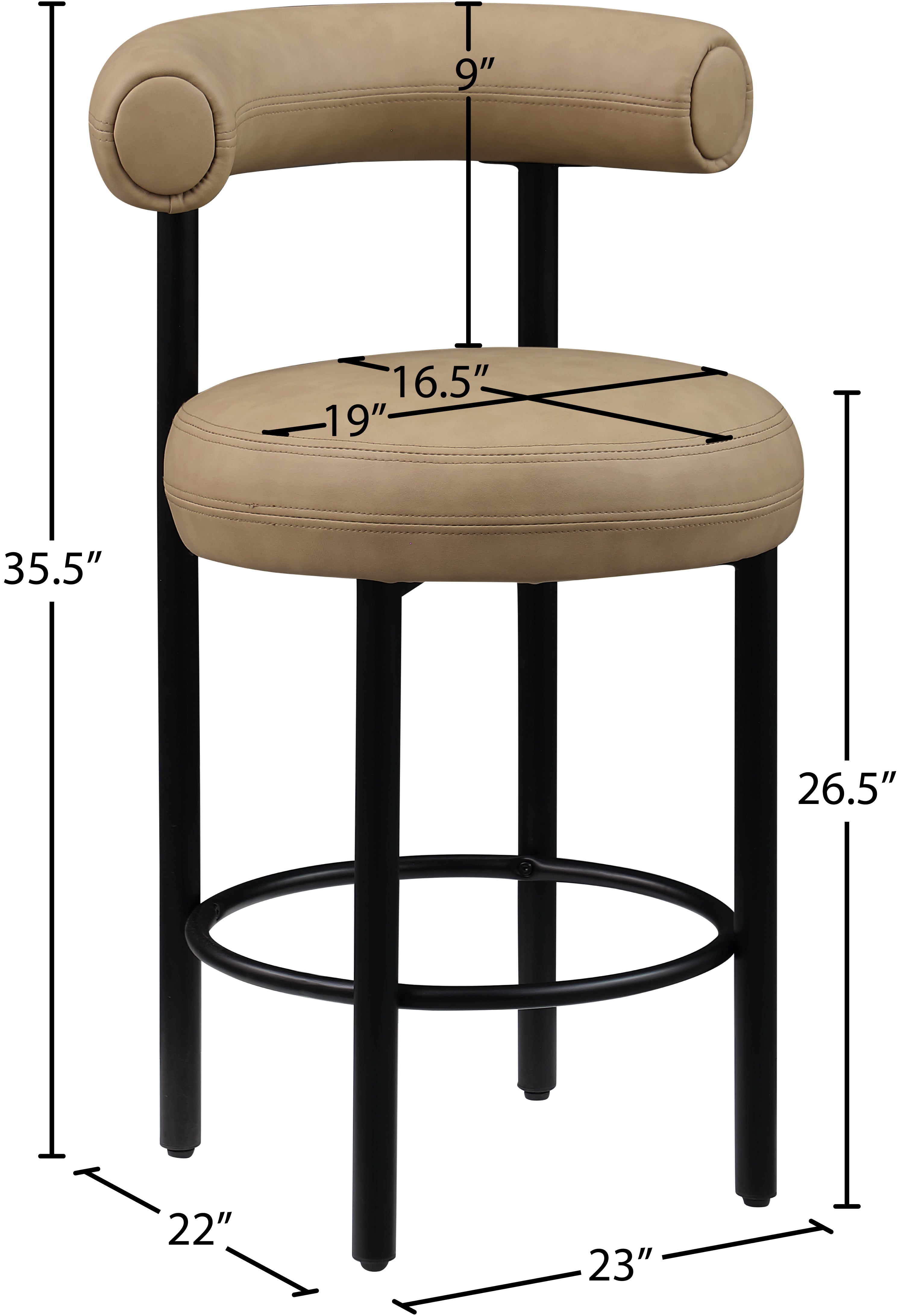 Home bar guests (or family and friends gathered round the kitchen counter) never want to leave when you seat them in this Bordeaux tan vegan leather counter stool. Designed as an instant draw for the eye, this counter stool has a curvy back to provide support whether you're serving snacks or drinks. The upholstery is soft tan vegan leather, so you have minimal worries about maintenance and upkeep. An iron metal frame with a black matte finish gives a contemporary look to this handsome stool.