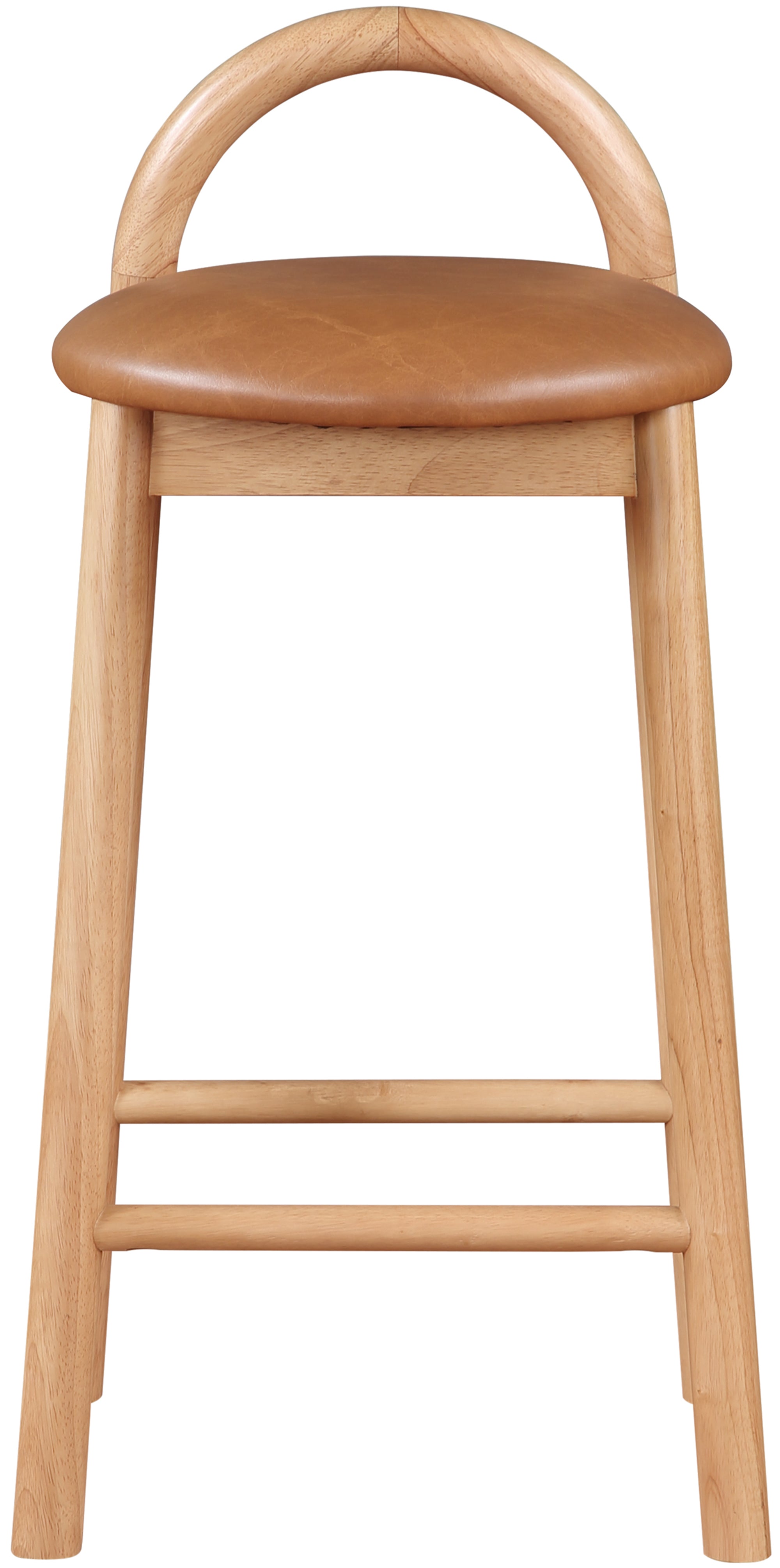 Discover the look of simplicity with this beautiful Calvin vegan leather counter stool. An epitome of refined elegance and simplistic design, this stool is perfect for both the home bar and the kitchen counter. A cognac vegan leather seat looks so much like leather that only you will know its not. The mid-century modern stool features a handsome wooden base with cross bars that double as foot rests, so guests and family can "stay till closing time" in comfort.