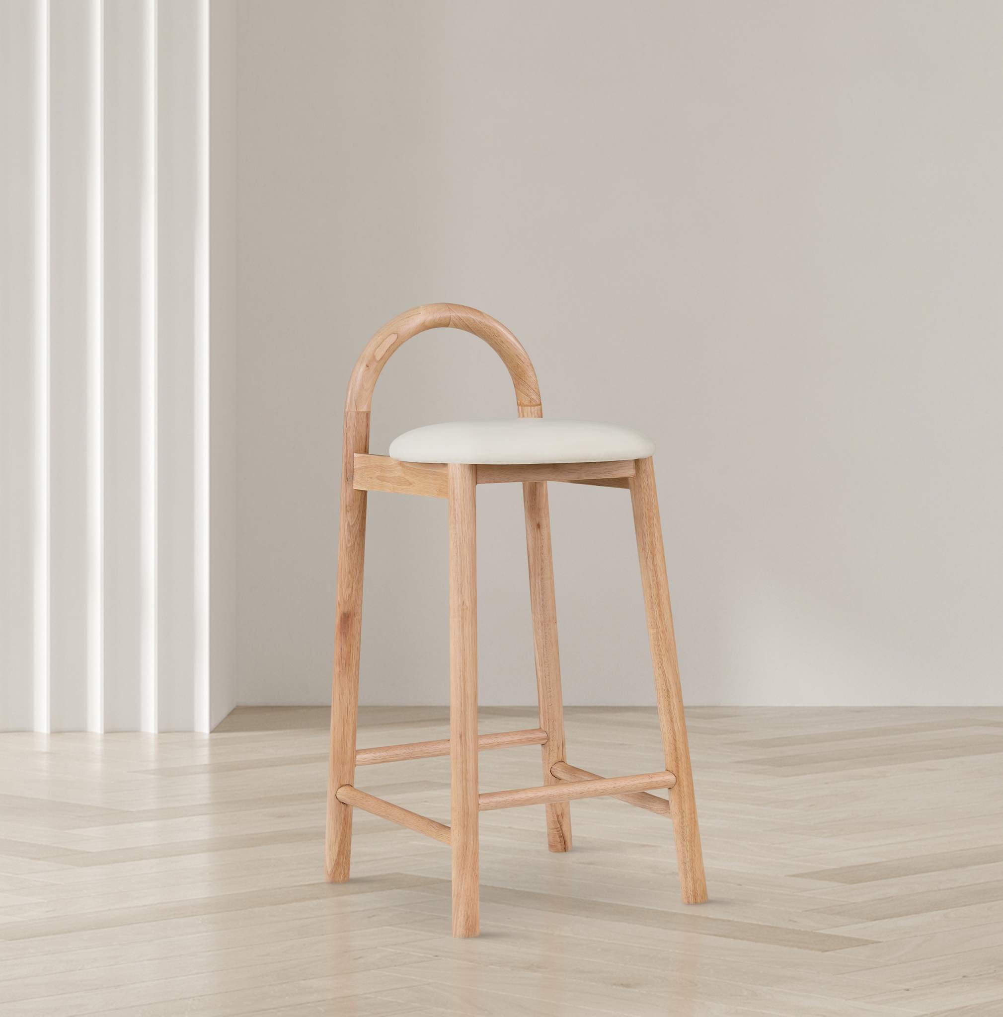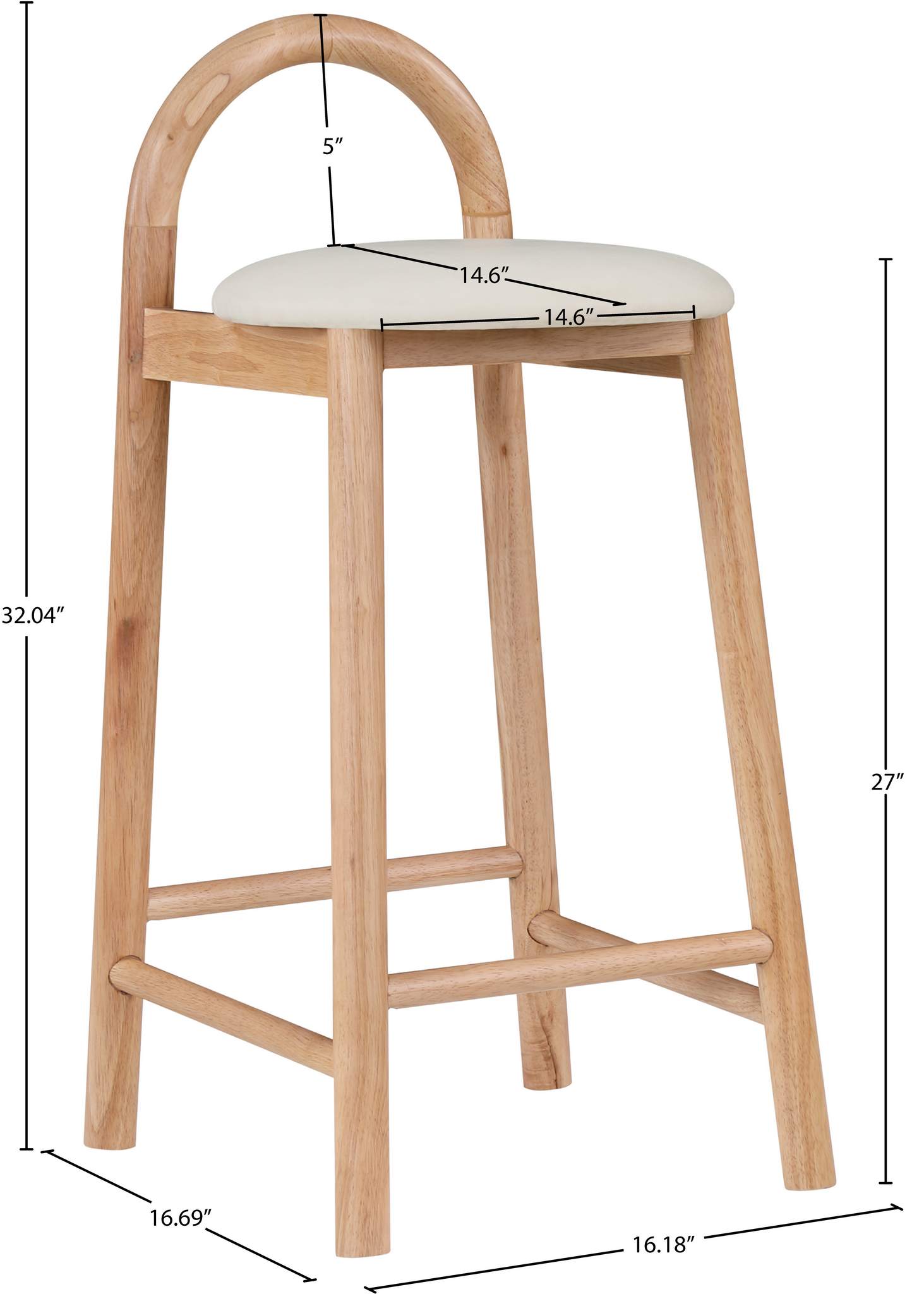 Make them want to stay 'till closing time when you add one or more of these Calvin vegan leather counter stools to your home bar or kitchen counter. These handsomely rugged stools have an uber modern look to them, making them well at home in a variety of decorative settings. The cream vegan leather seat is soft and comfy, so folks want to sit a spell and enjoy themselves. The natural finish solid wood frame is durable and sturdy, and there's room to rest your feet around the bottom perimeter for added usability and comfort.
