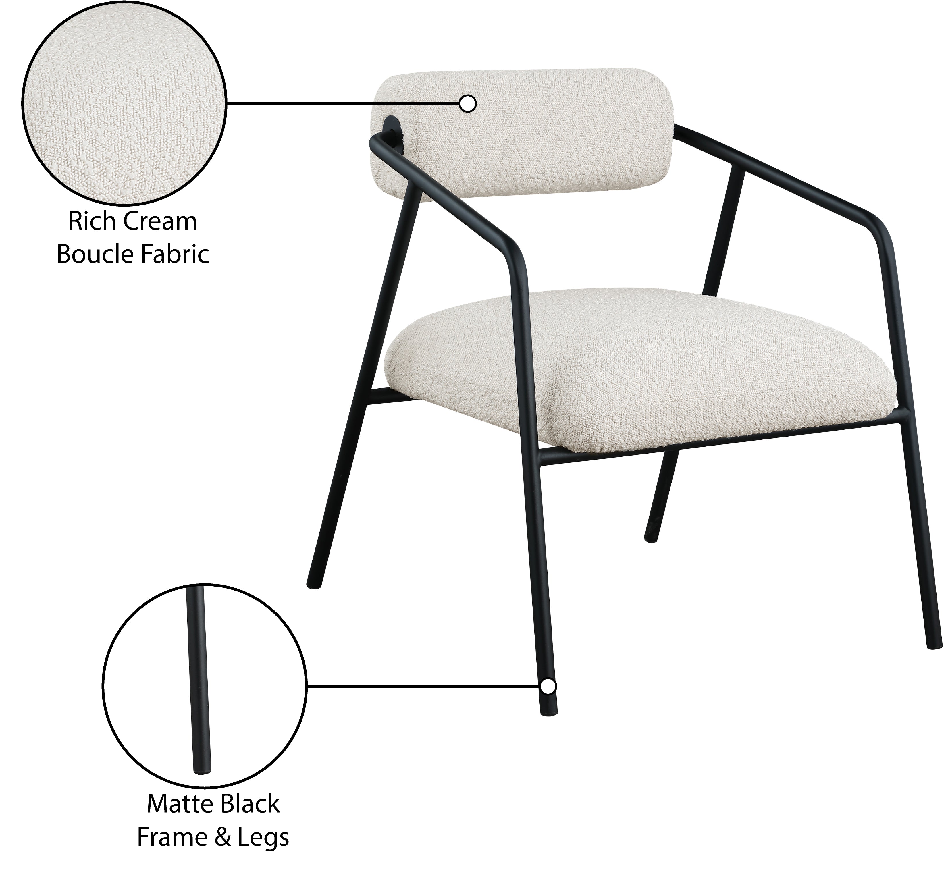 Carly Cream Boucle Fabric Upholstered Accent Chair | Meridian Furniture - 552Cream