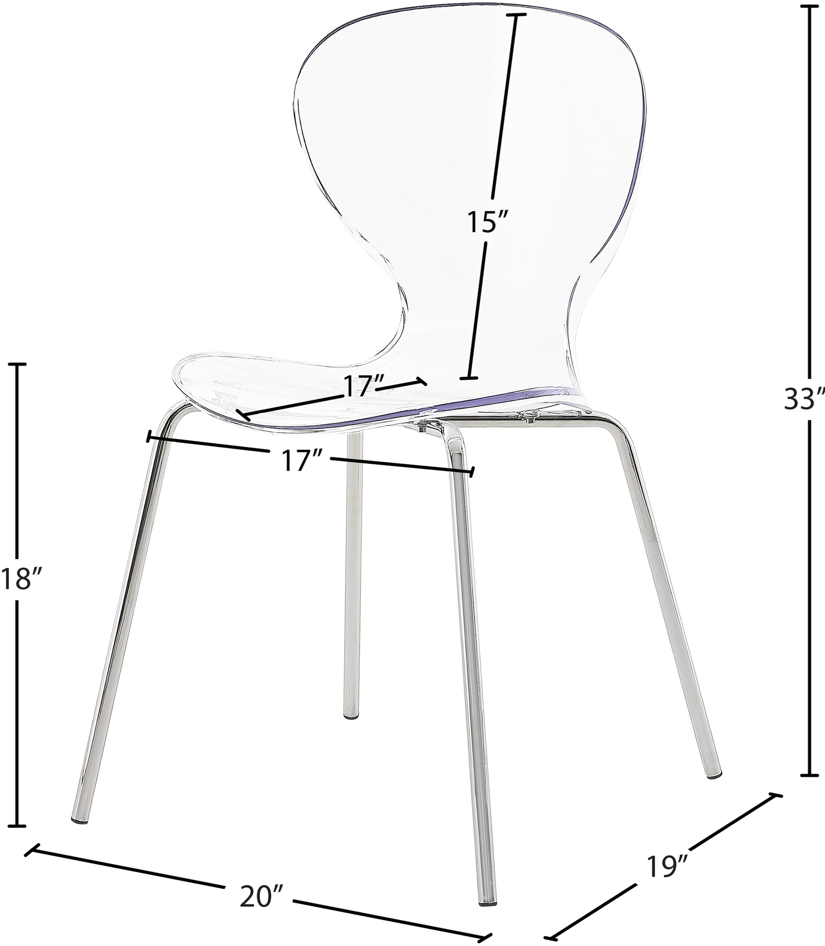 Clarion Chrome Lucite Seat And Metal Base Dining Chair (Set of 2) | Meridian Furniture - 771-C