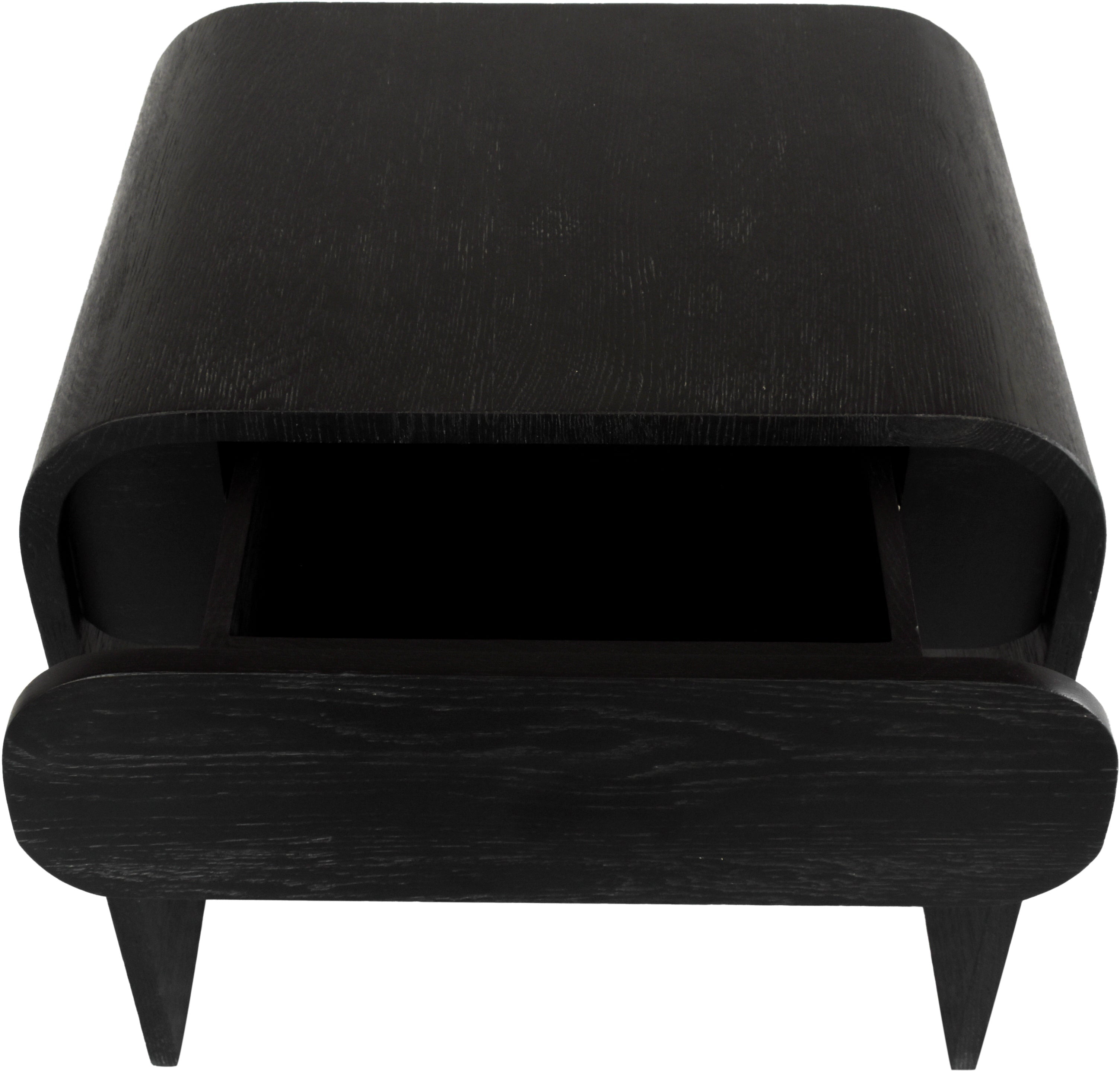 Bring midcentury design elements to life in your bedroom space with this Cresthill nightstand. This lovely piece grabs attention immediately with its stark black brushed oak finish and its minimalist lines with their curved slant. This nightstand is made from solid black oak wood for amazing durability and long-lasting service life. A single drawer keeps everything you need handy and within easy reach beside your bed.
