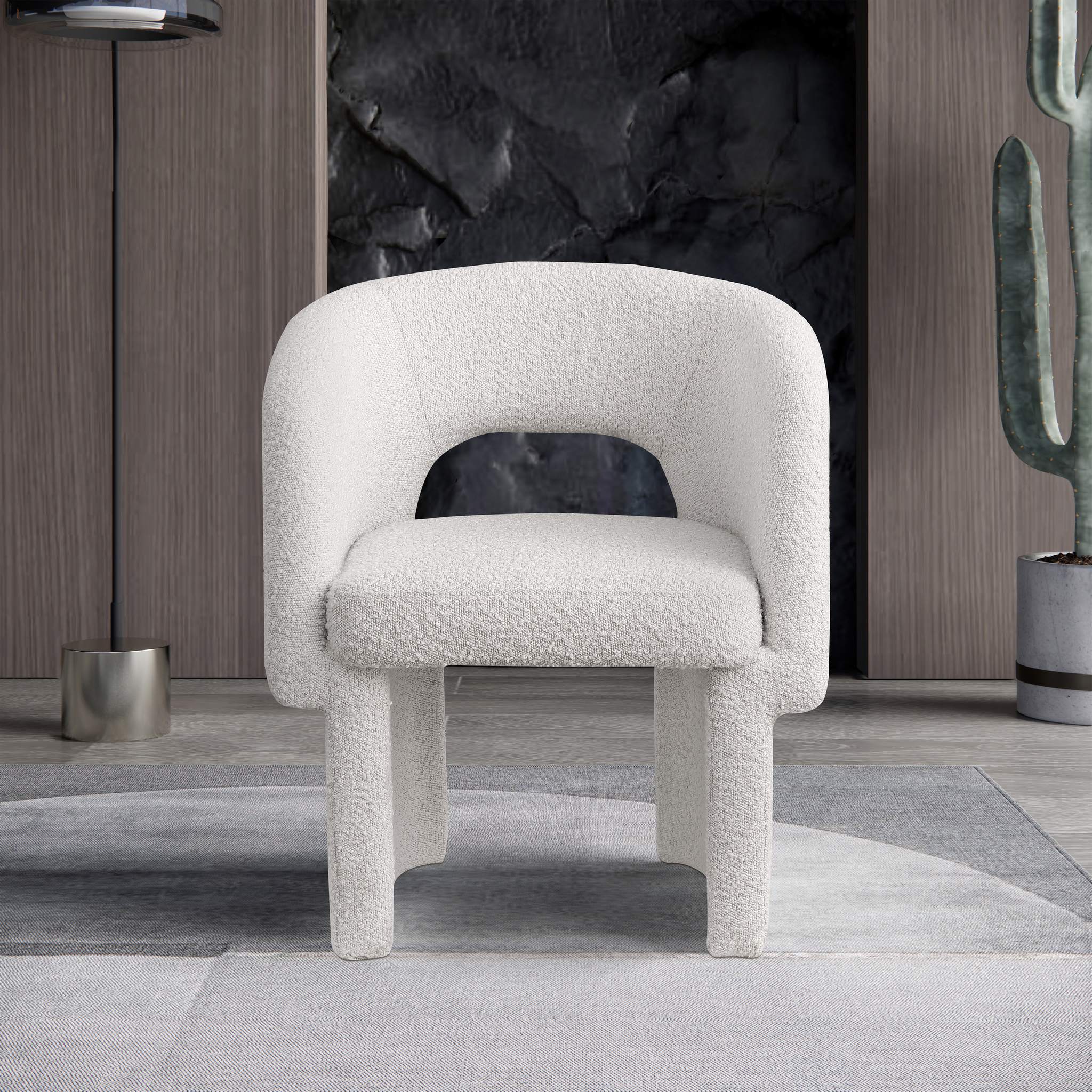 Emmet Cream Boucle Fabric Upholstered Dining / Accent Chair | Meridian Furniture - 438Cream-C