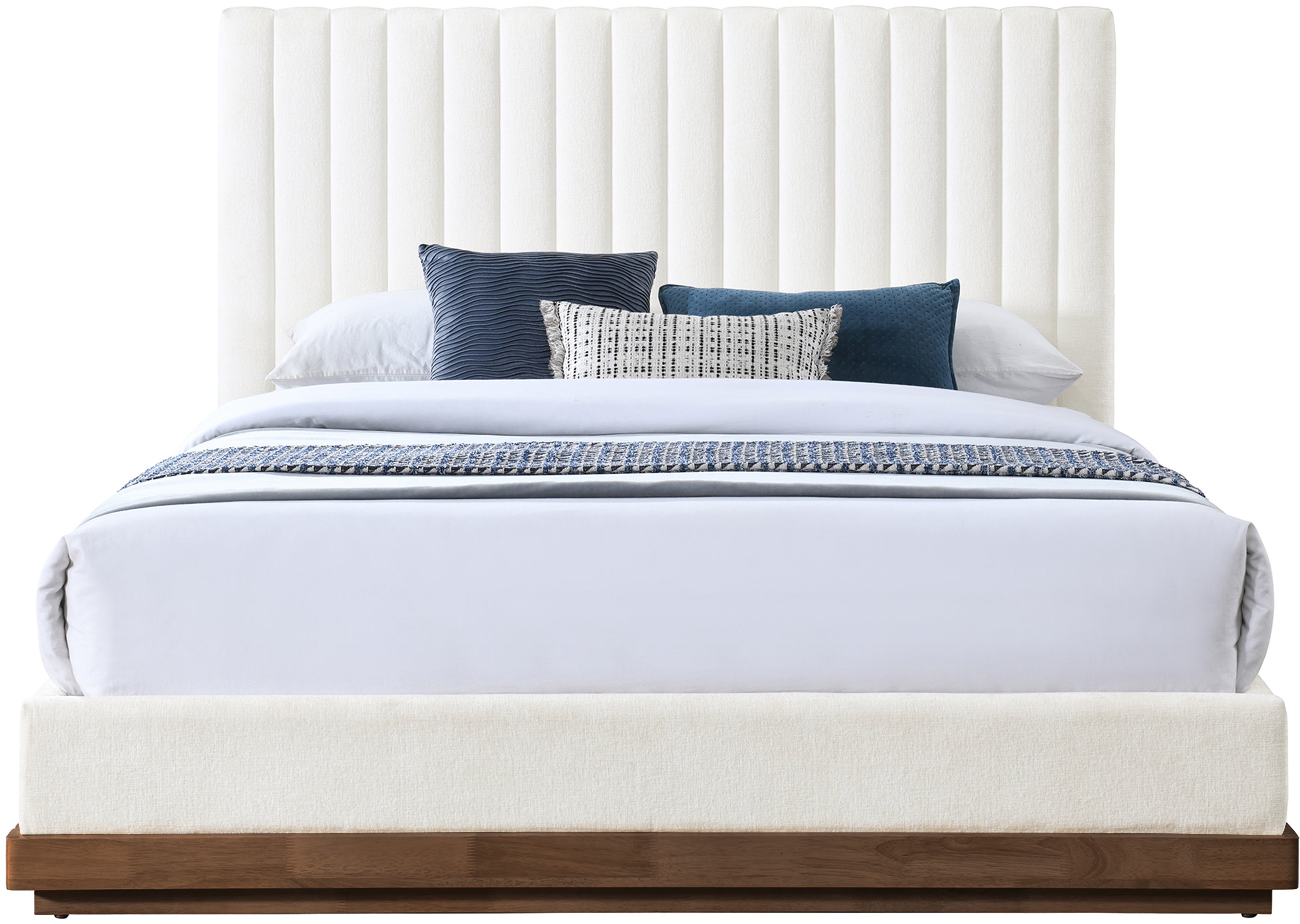 Emmet Cream Chenille Fabric Upholstered Full Bed (3 Boxes) | Meridian Furniture - B1245Cream-F