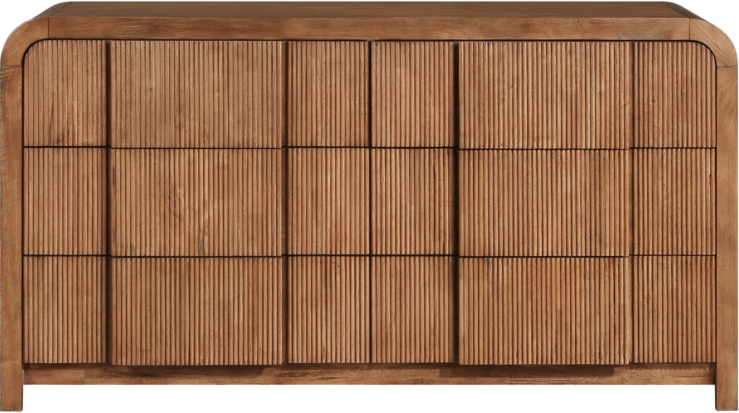 The Fluted Dresser is a great way to enhance the decor of your room and elevate its style. The fluted drawer fronts highlights intricate detailing, while the arched shape of the dresser provides an eye-catching design feature. The rich natural finish gives depth and character to the overall appeal. This piece not only serves a functional purpose for storage but also adds a touch of elegance to any living space.