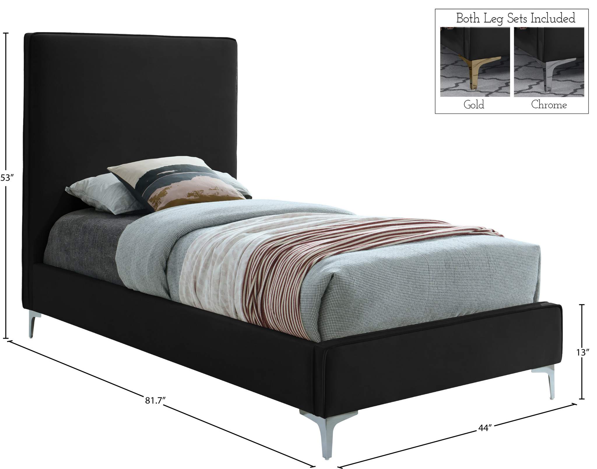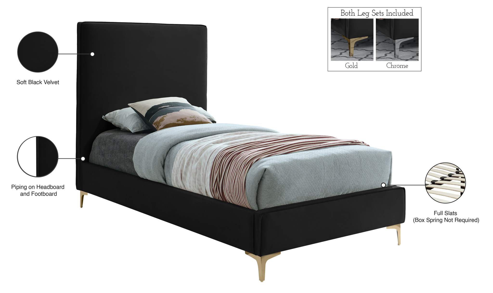 Geri Black Velvet Upholstered Twin Bed | Meridian Furniture - GeriBlack-T