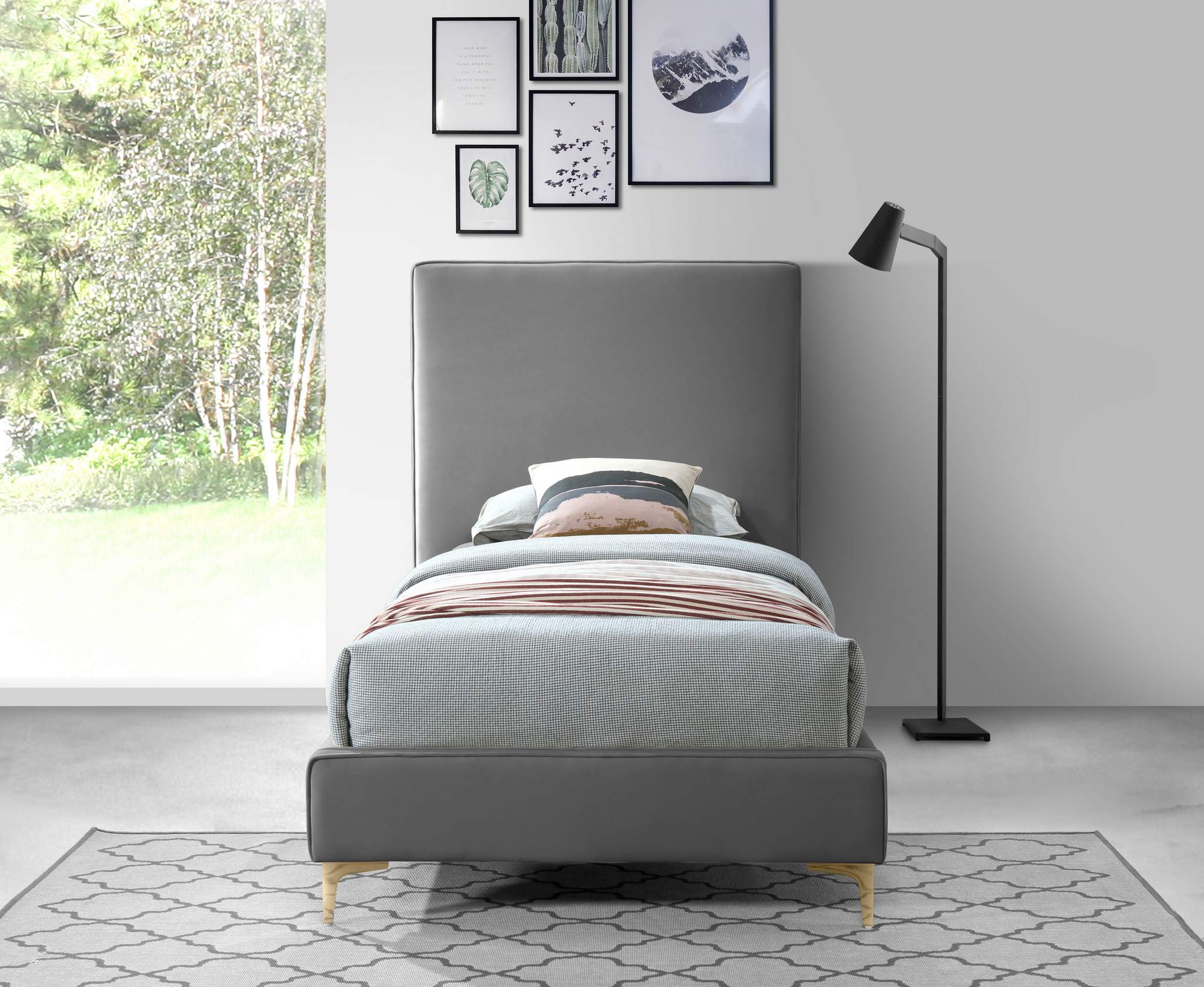Geri Grey Velvet Upholstered Twin Bed | Meridian Furniture - GeriGrey-T