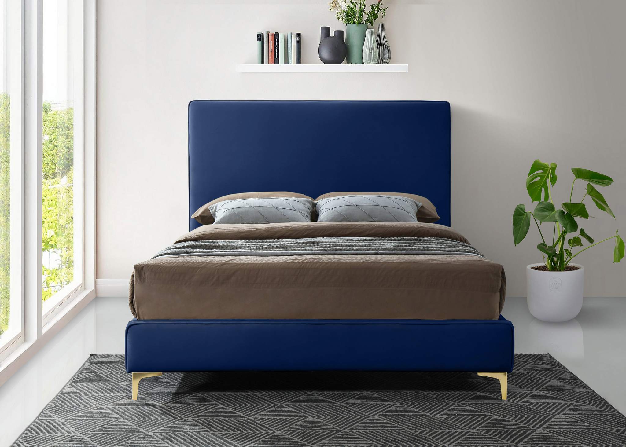 Geri Navy Velvet Upholstered Queen Bed | Meridian Furniture - GeriNavy-Q