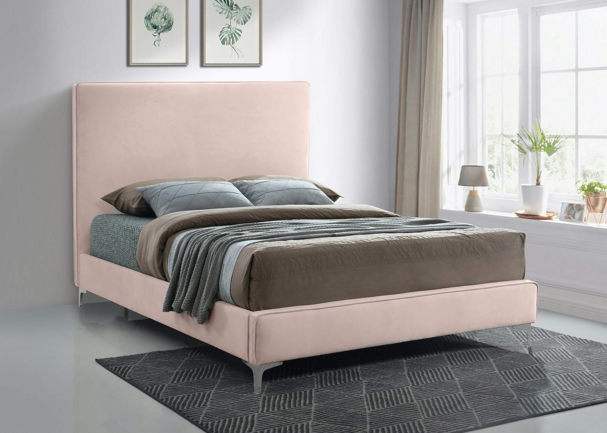 Geri Pink Velvet Upholstered Queen Bed | Meridian Furniture - GeriPink-Q