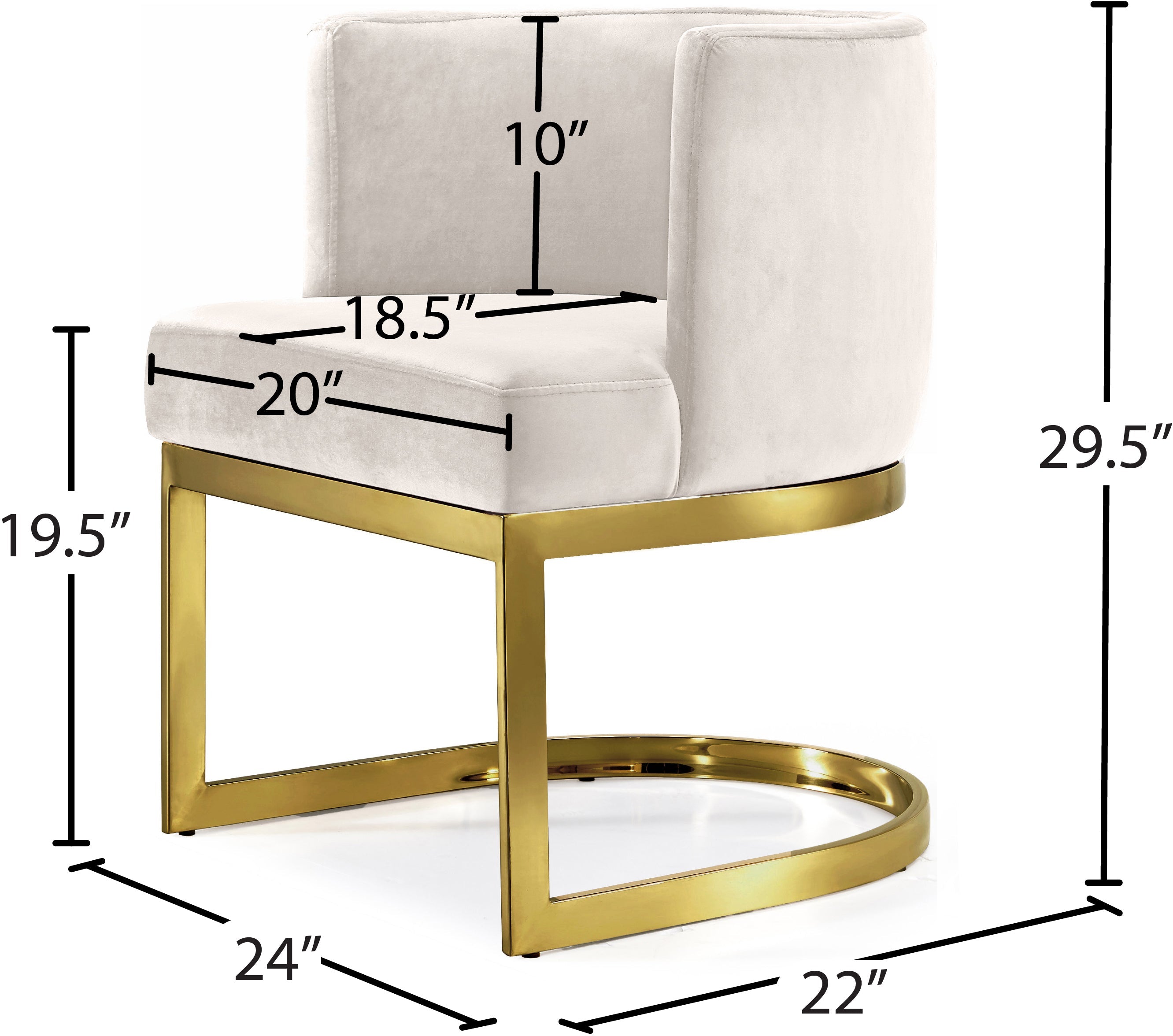Lend your dining area a touch of retro charm with the Gianna Cream Velvet Dining Chair from Meridian Furniture. The back of the chair has a barrel design that cradles you in comfort while you enjoy a meal with friends, and the chair is thickly padded and upholstered in plush cream velvet for a luxe feel. The base is made from stainless steel with a gold finish for a finish that's stunningly beautiful.