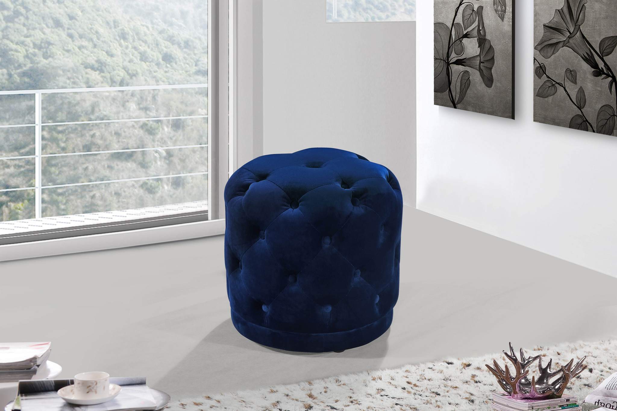 Bring brilliant color to life in your room with this Harper Navy Velvet Ottoman/Stool. Jewel-toned upholstery in an eye-grabbing color makes this ottoman a standout in your space, and the deep button tufting adds a glamorous, Hollywood-inspired look. Place this ottoman near a chair in the living room or den to give yourself a posh spot to prop up your feet while you rest and unwind.