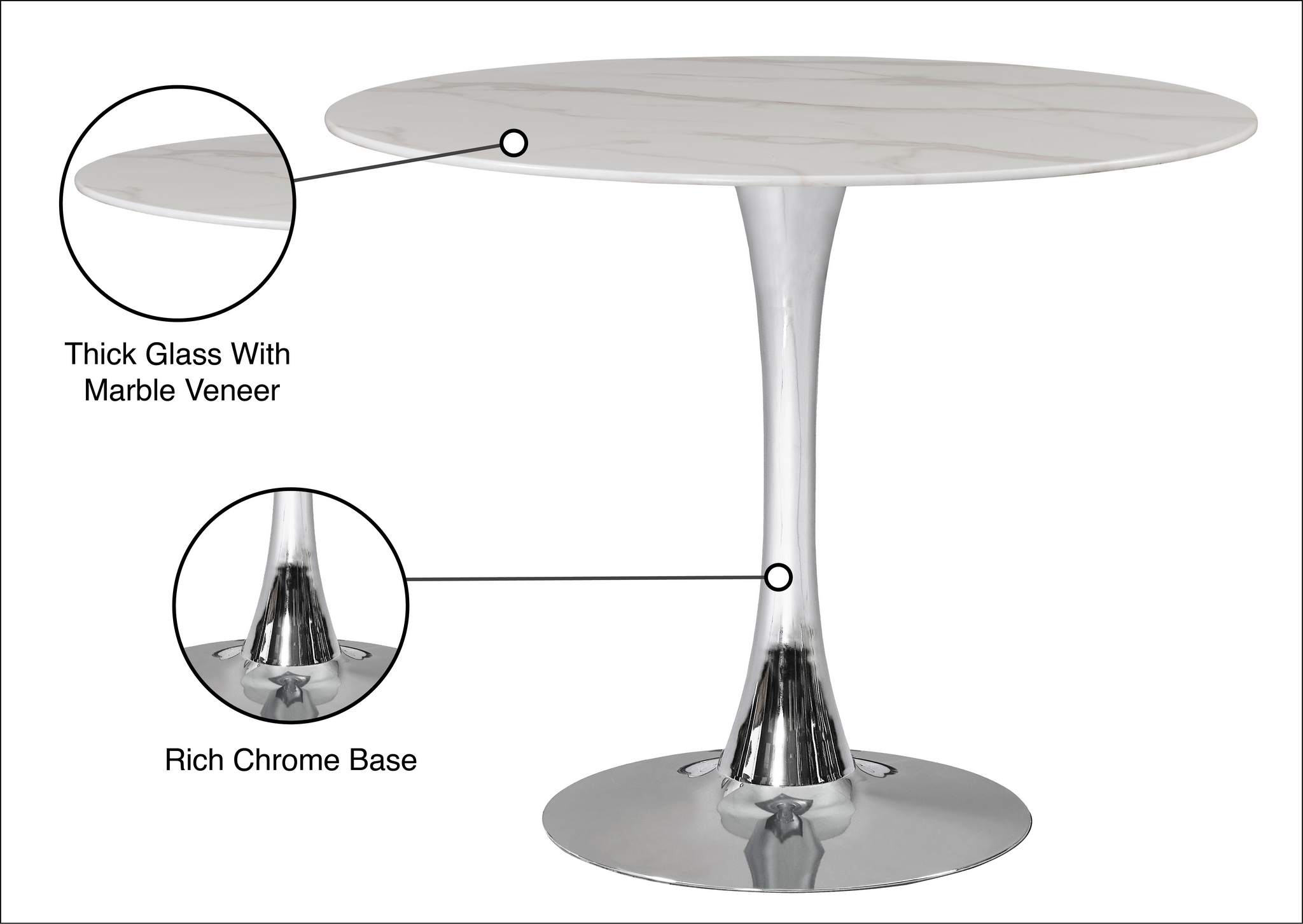 Holly 36" Chrome Marble Veneer Top And Metal Base Dining Table (3 Boxes) | Meridian Furniture - 972-T