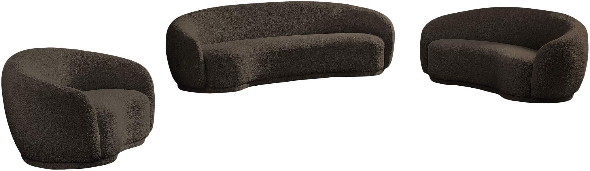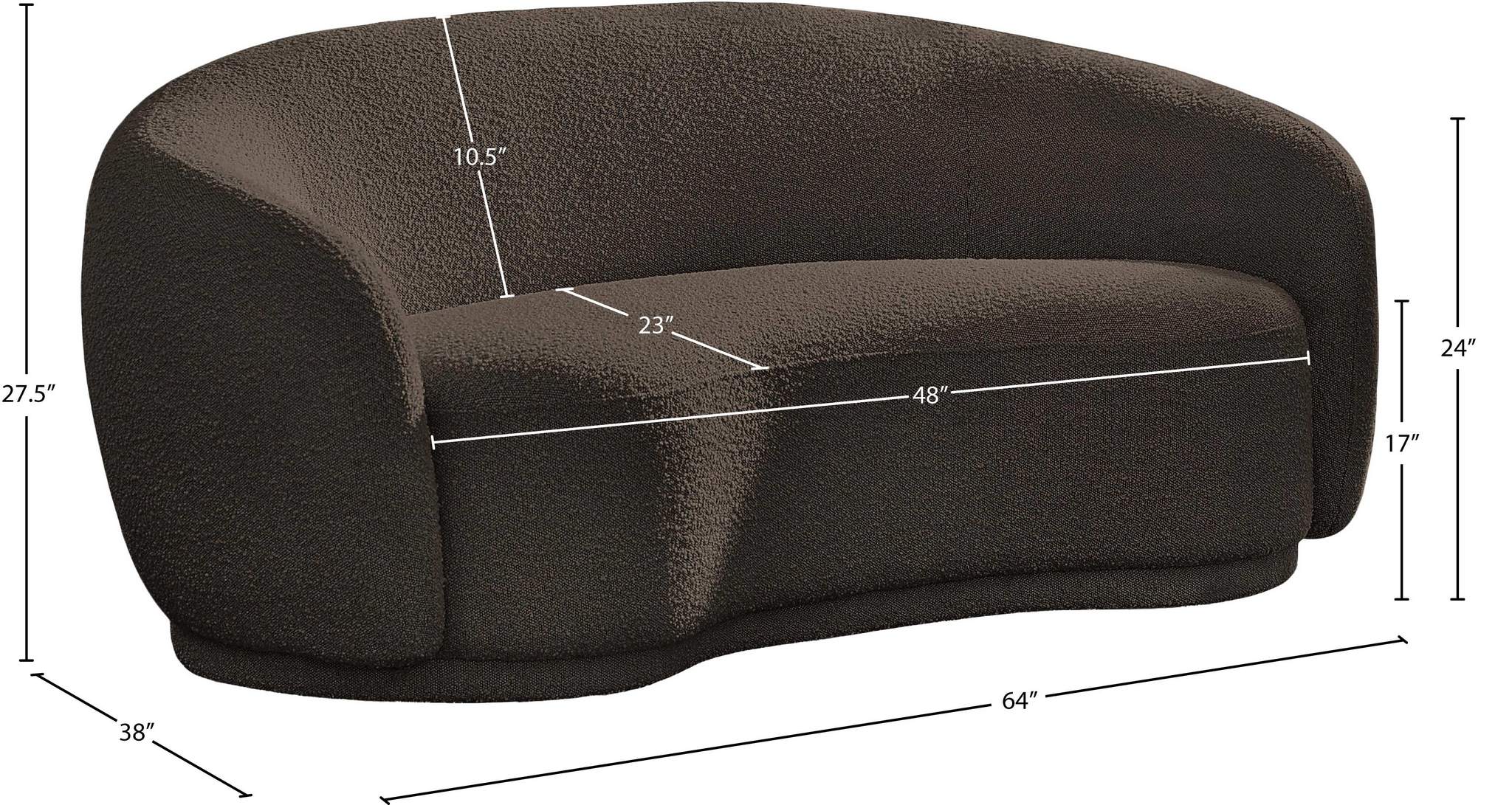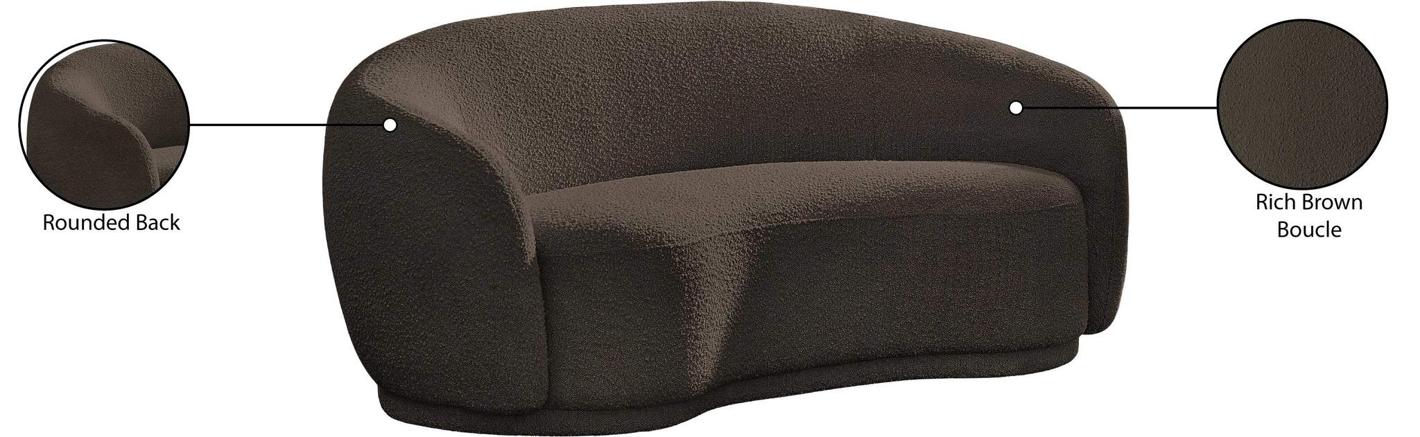 Curl up and relax on this Hyde brown boucle fabric . This wide, rounded loveseat is as comfortable as it is stylish, making it an excellent addition to your living space. Rich brown boucle fabric upholstery gives a soft touch against your skin and its deep plush cushion provides you with cozy support. Its rounded back is both chic and homey, with its contemporary design sure to add flair to your modern home.