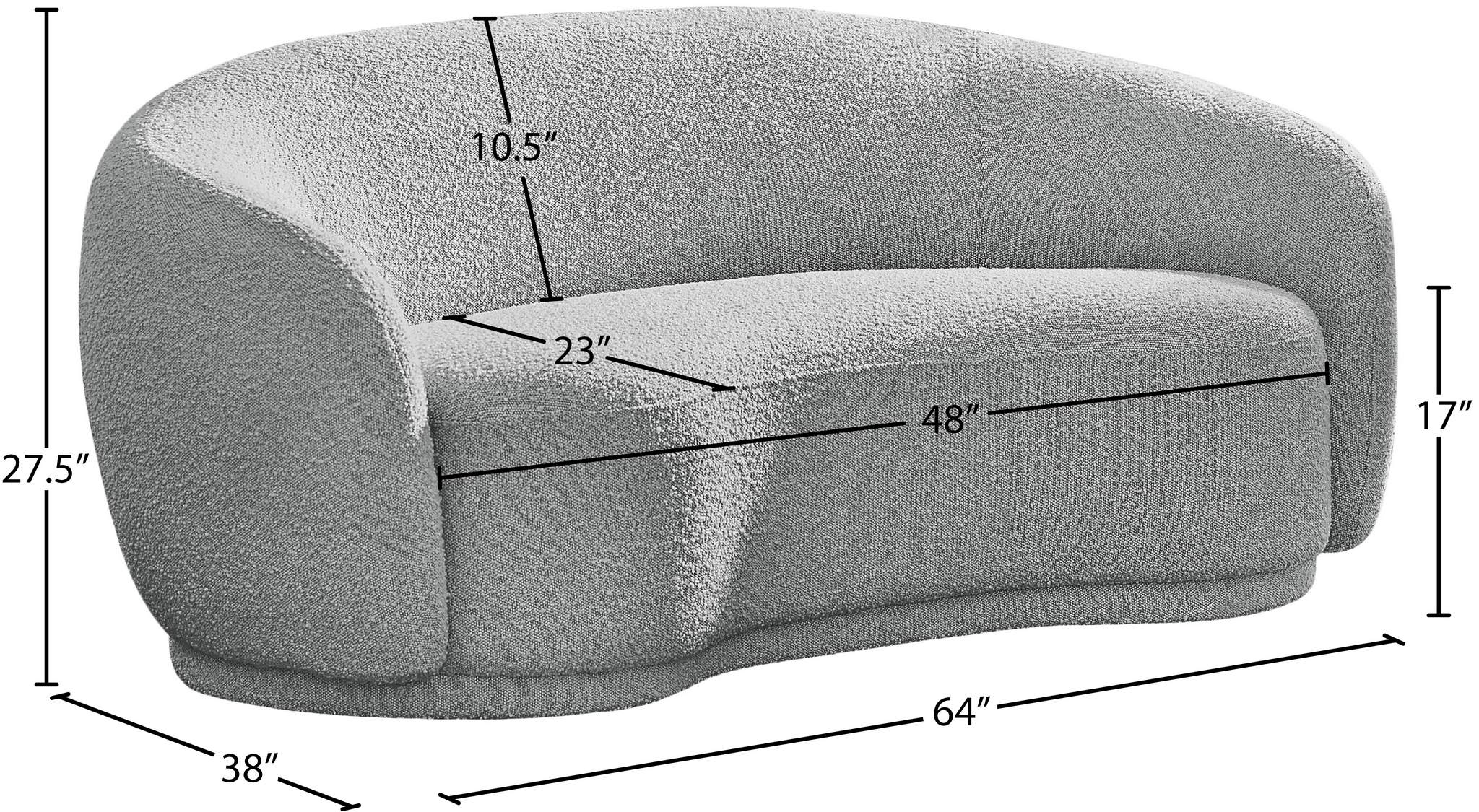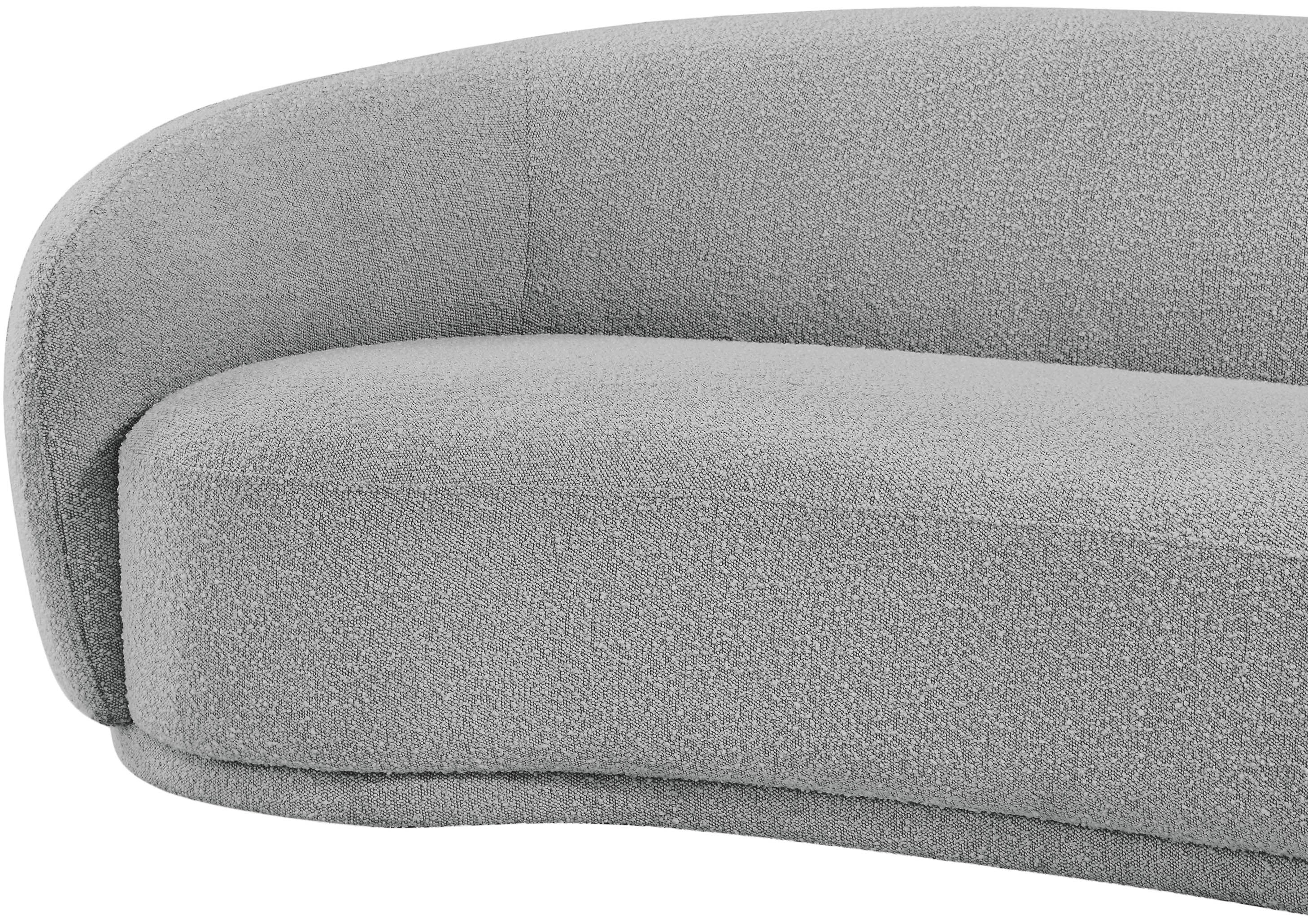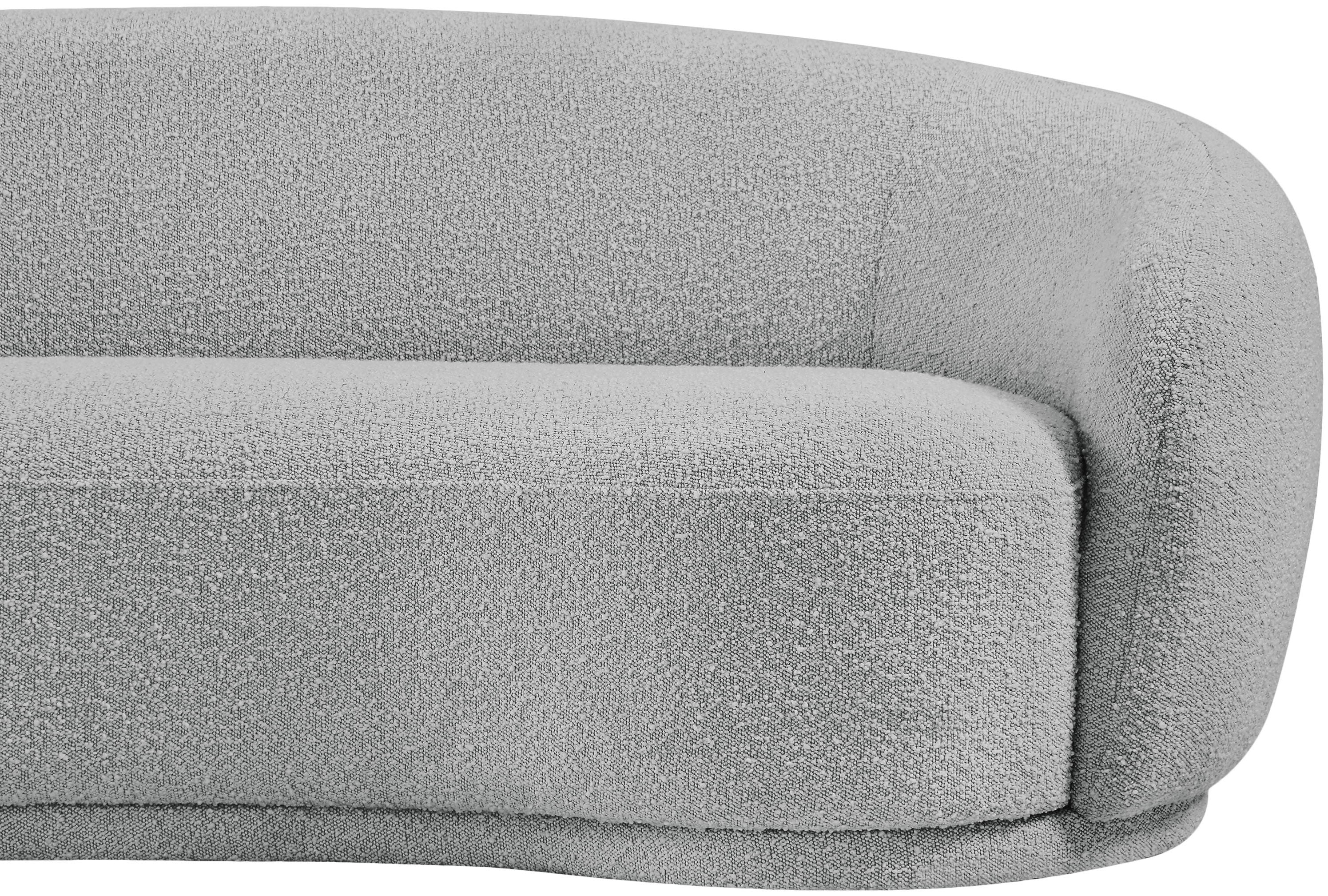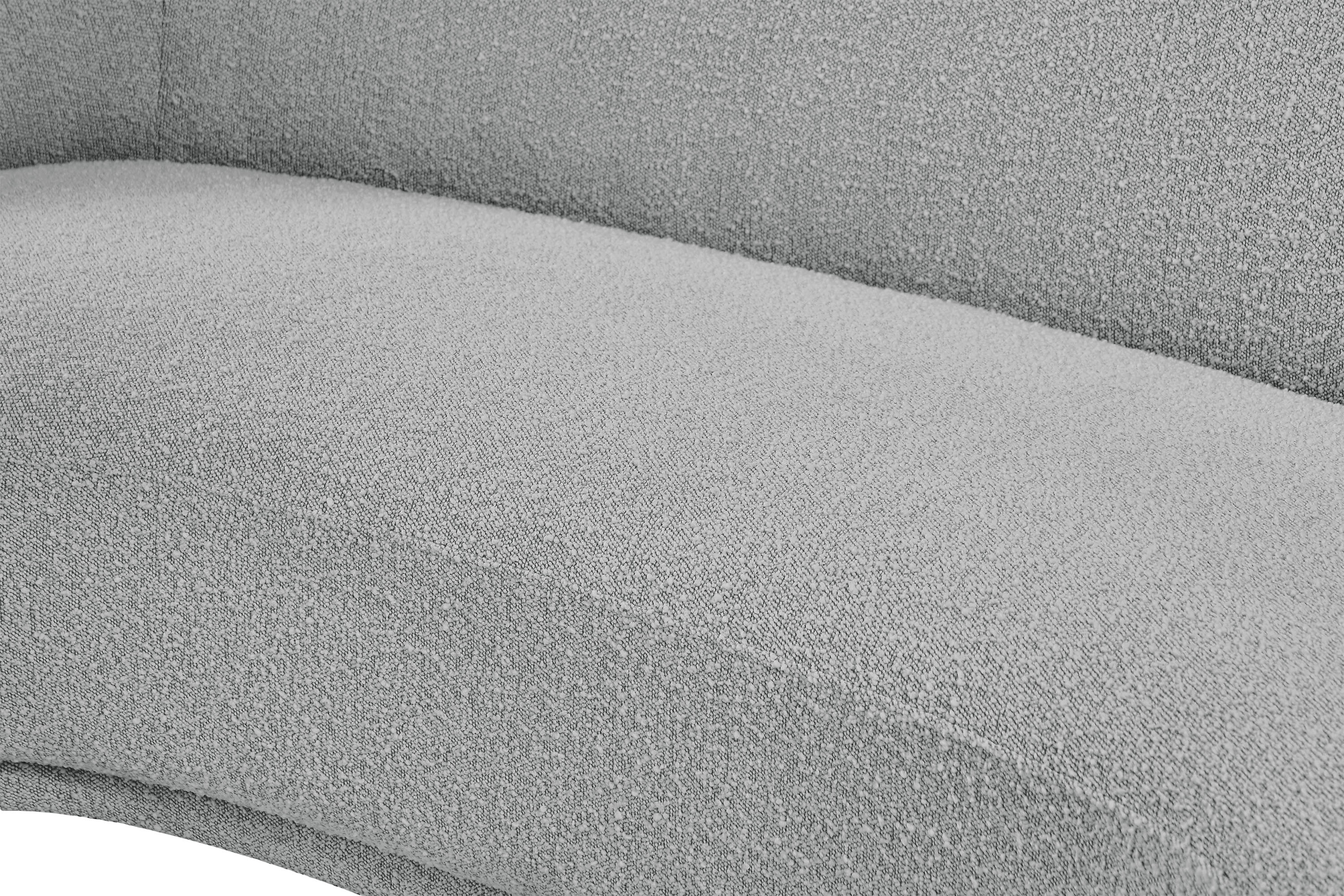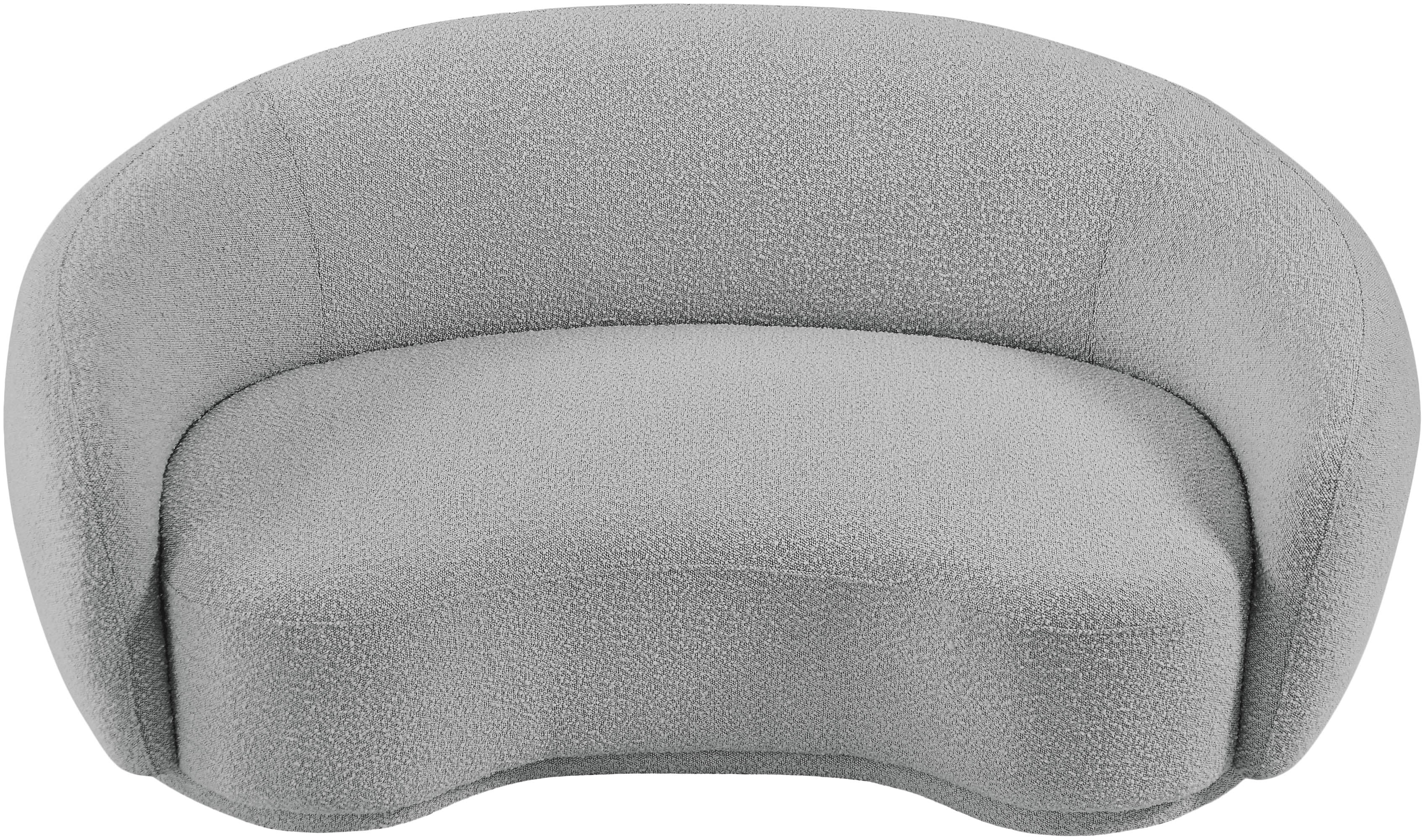 Curl up and relax on this Hyde grey boucle fabric . This wide, rounded is as comfortable as it is stylish, making it an excellent addition to your living space. Rich grey boucle fabric upholstery gives a soft touch against your skin and its deep plush cushion provides you with cozy support. Its rounded back is both chic and homey, with its contemporary design sure to add flair to your modern home.
