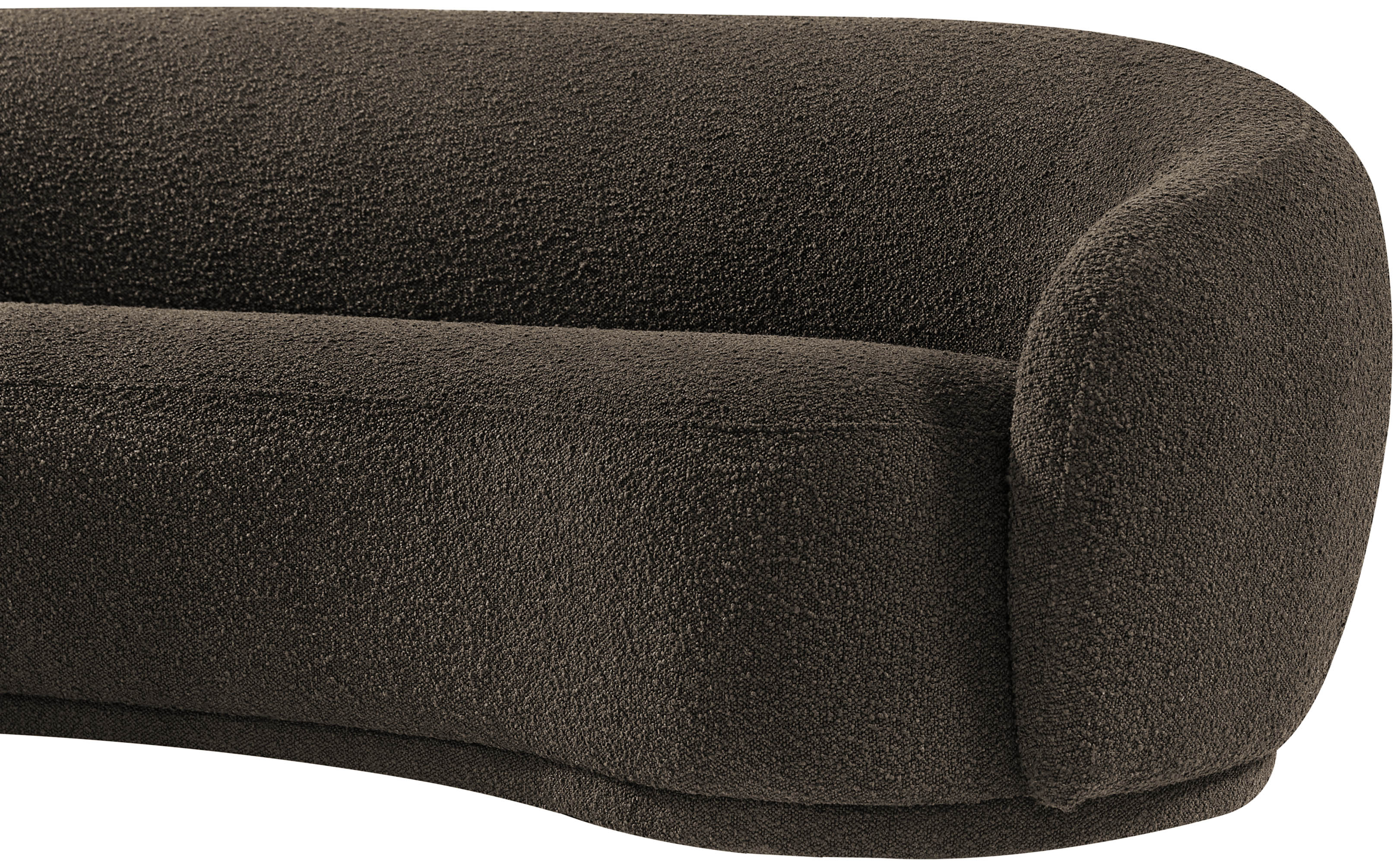 Curl up and relax on this Hyde brown boucle fabric . This wide, rounded sofa is as comfortable as it is stylish, making it an excellent addition to your living space. Rich brown boucle fabric upholstery gives a soft touch against your skin and its deep plush cushion provides you with cozy support. Its rounded back is both chic and homey, with its contemporary design sure to add flair to your modern home.