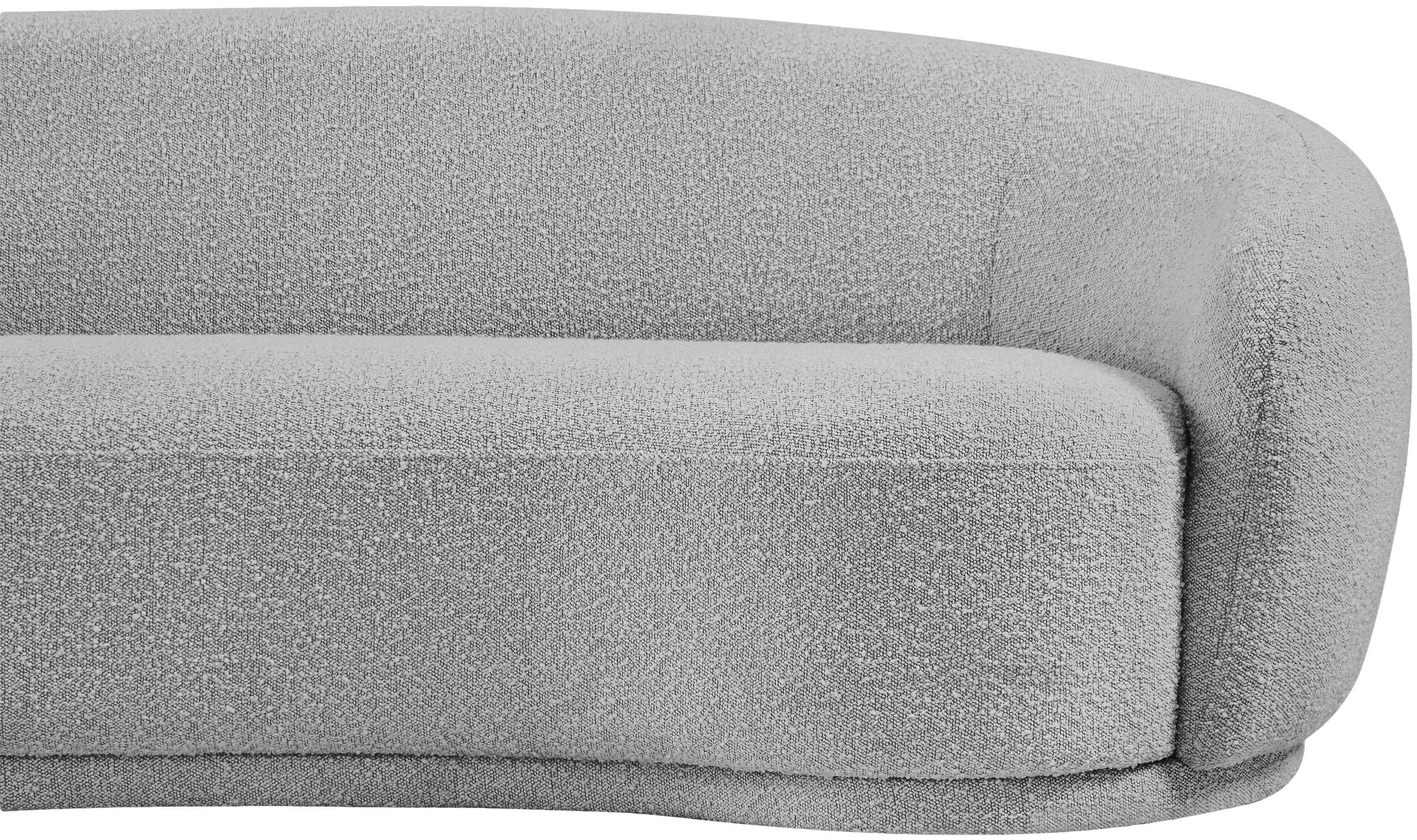 Curl up and relax on this Hyde grey boucle fabric . This wide, rounded is as comfortable as it is stylish, making it an excellent addition to your living space. Rich grey boucle fabric upholstery gives a soft touch against your skin and its deep plush cushion provides you with cozy support. Its rounded back is both chic and homey, with its contemporary design sure to add flair to your modern home.