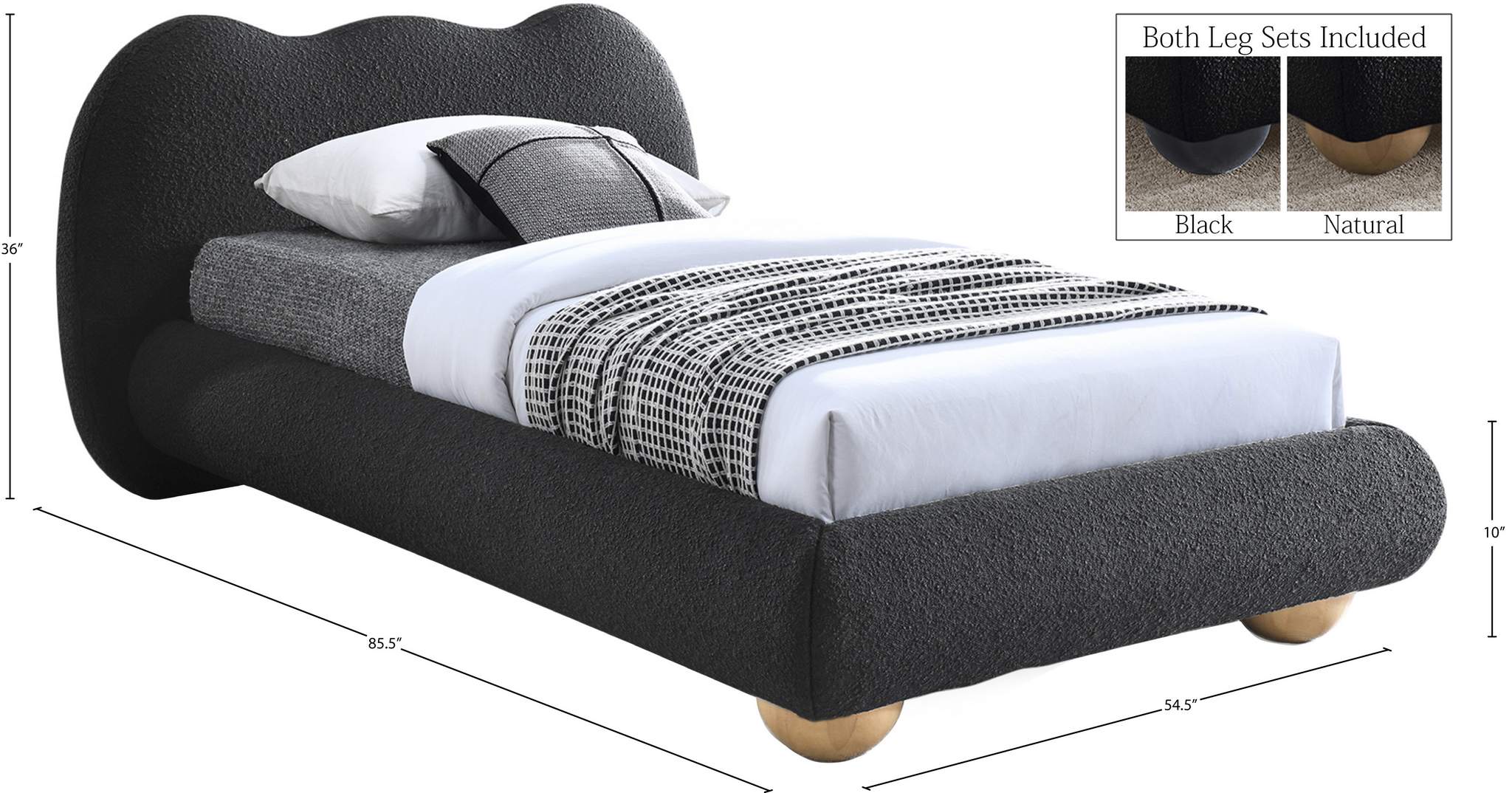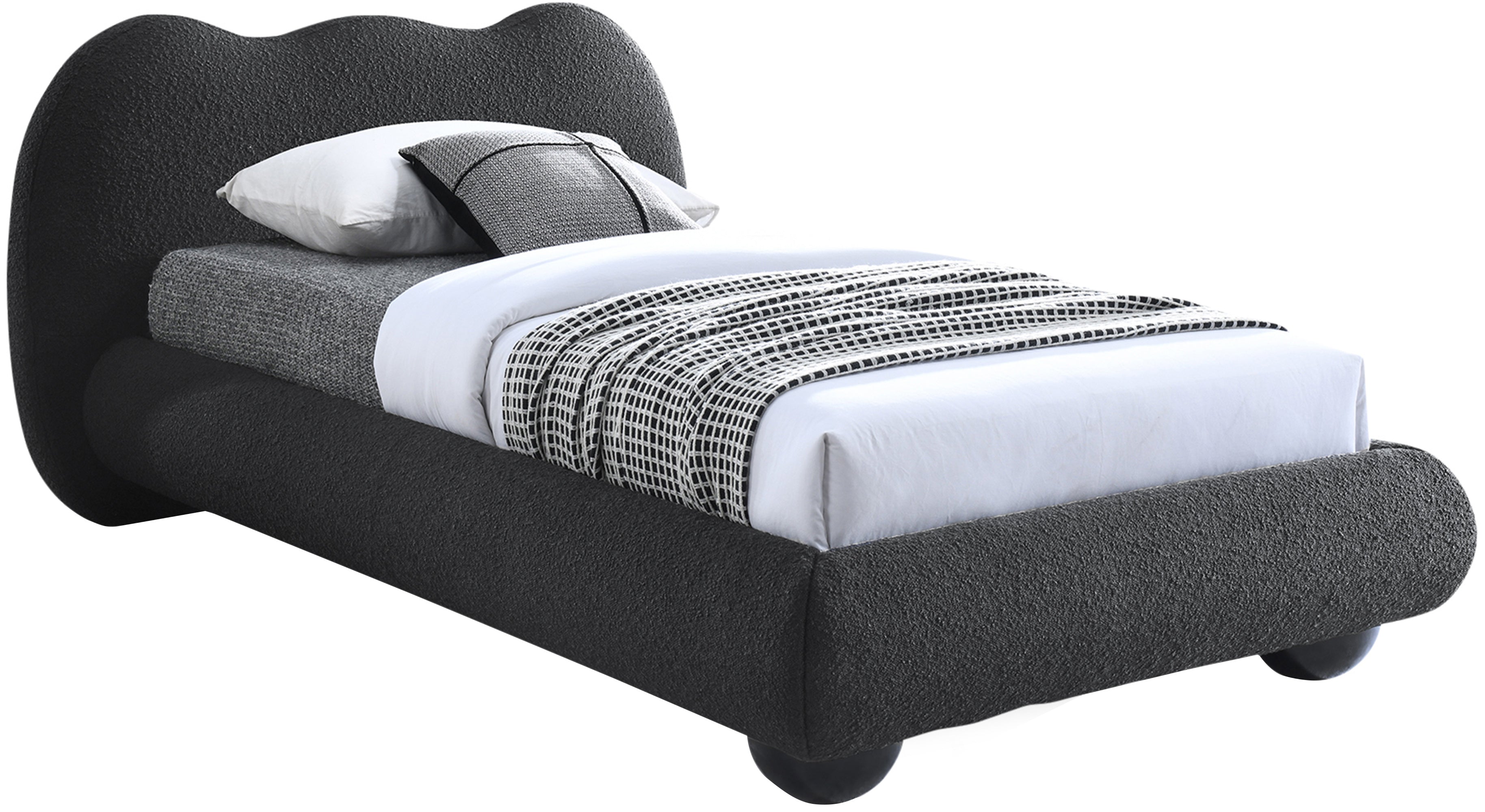 Hyde Black Boucle Fabric Upholstered Twin Bed (3 Boxes) | Meridian Furniture - HydeBlack-T