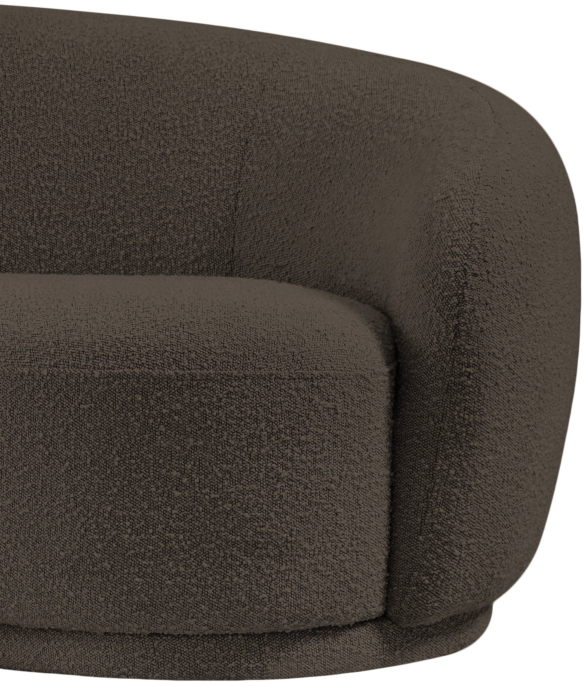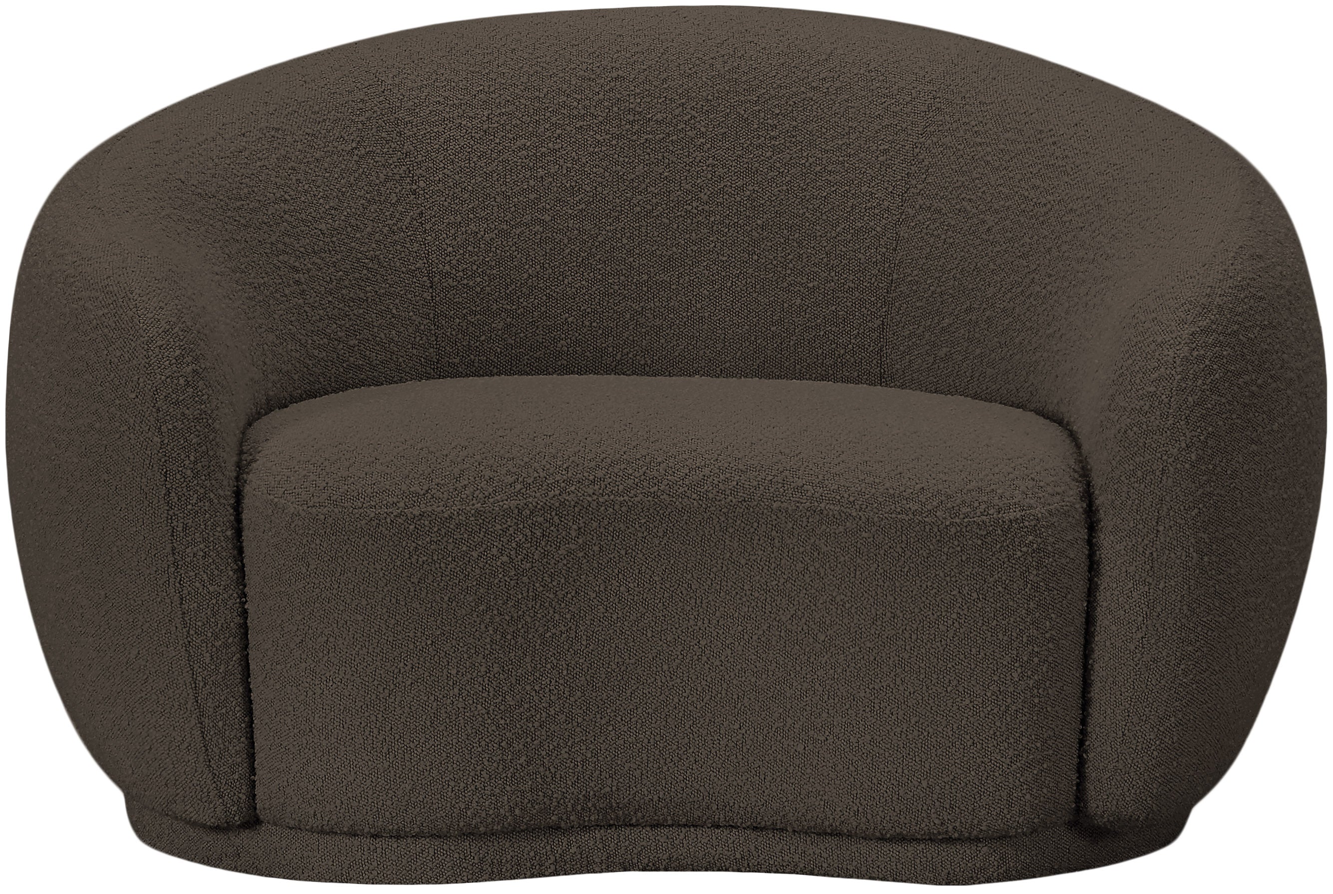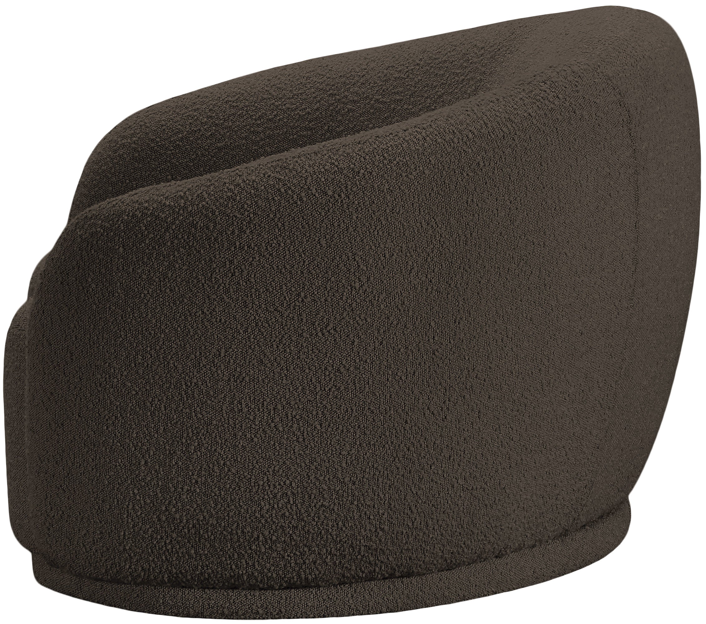 Curl up and relax on this Hyde brown boucle fabric . This wide, rounded chair is as comfortable as it is stylish, making it an excellent addition to your living space. Rich brown boucle fabric upholstery gives a soft touch against your skin and its deep plush cushion provides you with cozy support. Its rounded back is both chic and homey, with its contemporary design sure to add flair to your modern home.