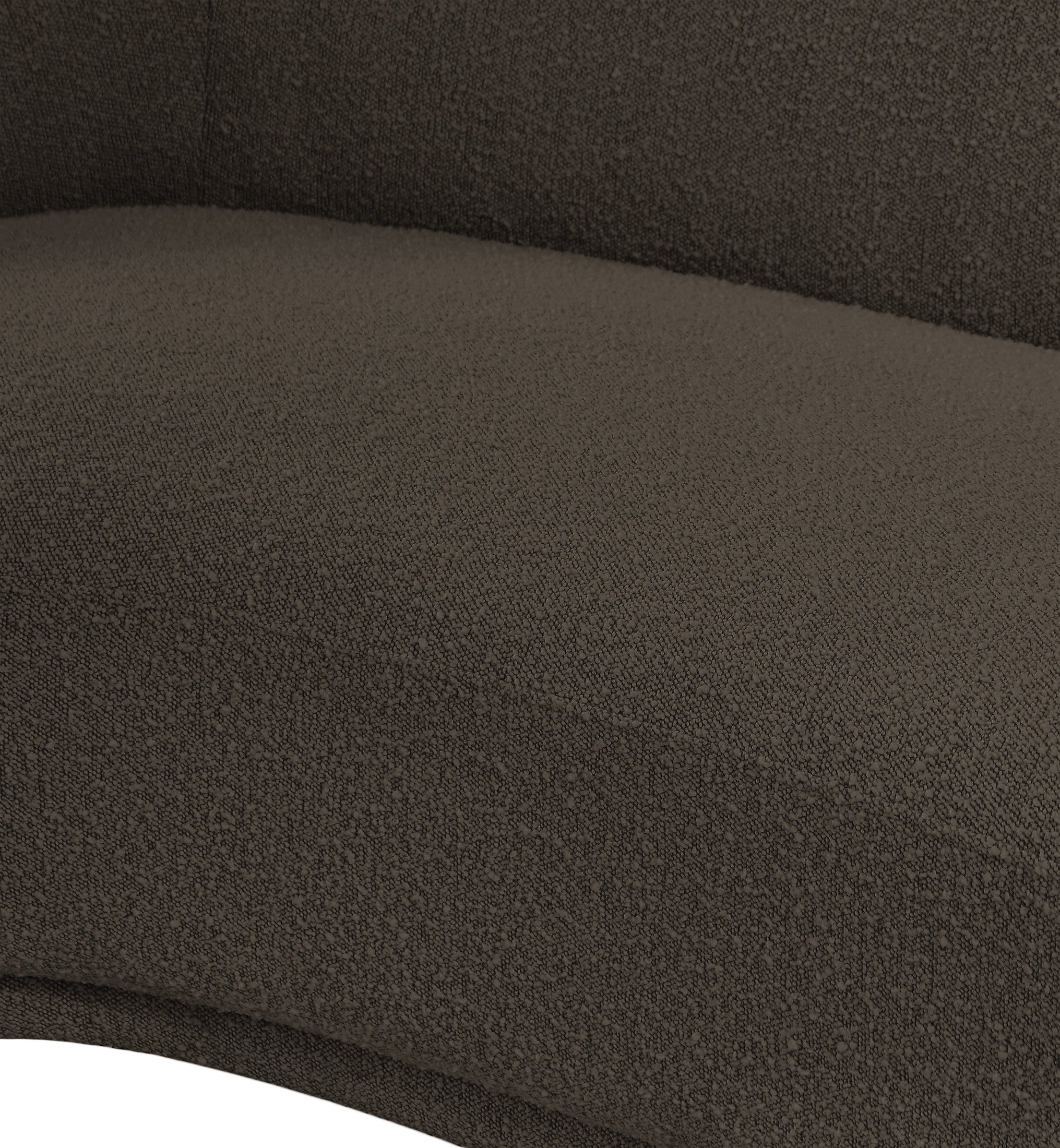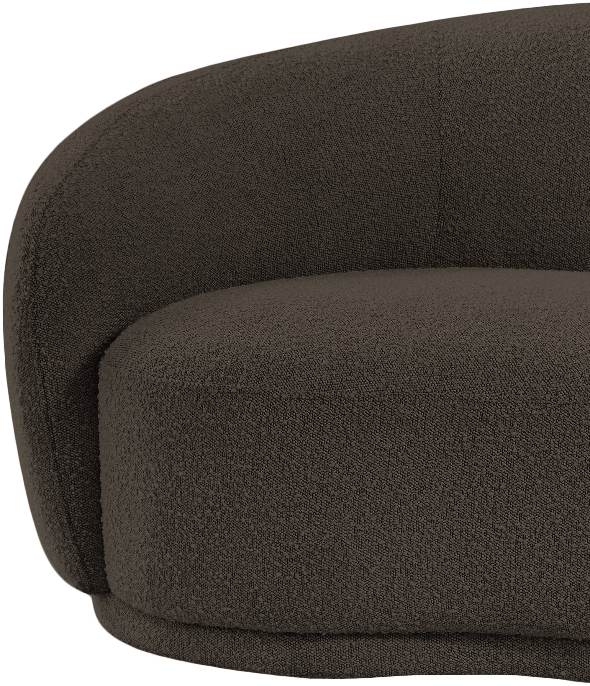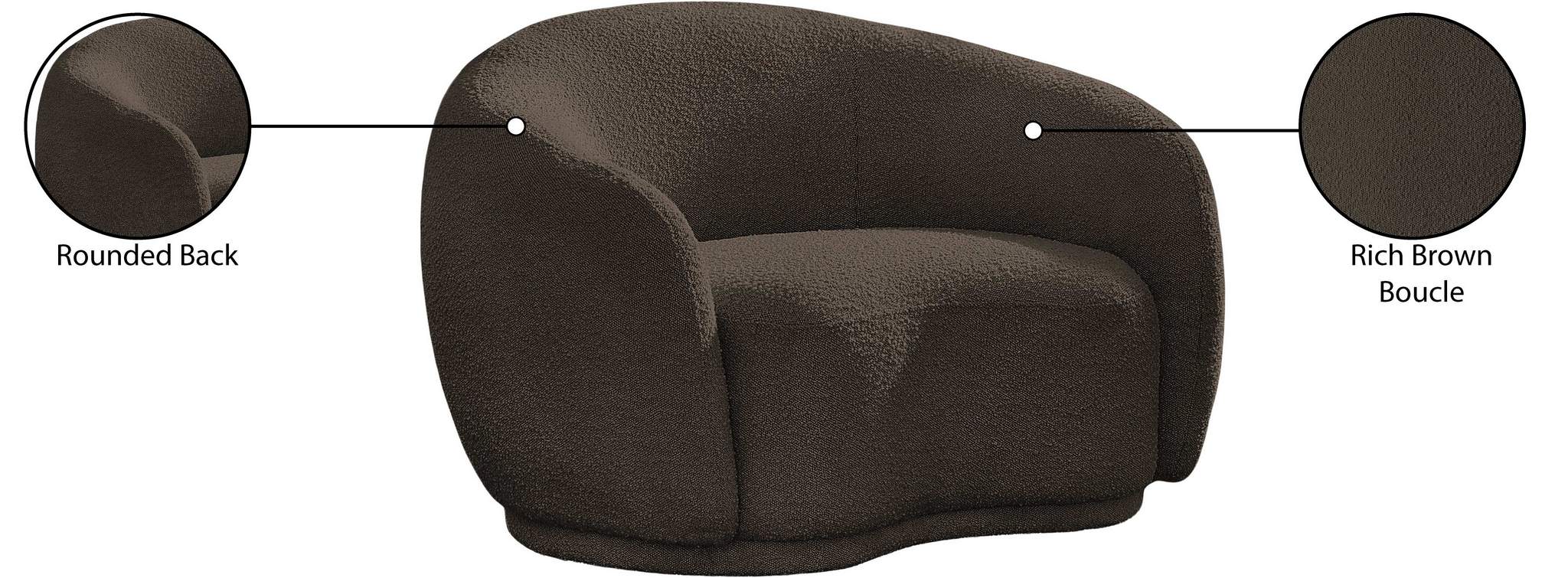 Curl up and relax on this Hyde brown boucle fabric . This wide, rounded chair is as comfortable as it is stylish, making it an excellent addition to your living space. Rich brown boucle fabric upholstery gives a soft touch against your skin and its deep plush cushion provides you with cozy support. Its rounded back is both chic and homey, with its contemporary design sure to add flair to your modern home.