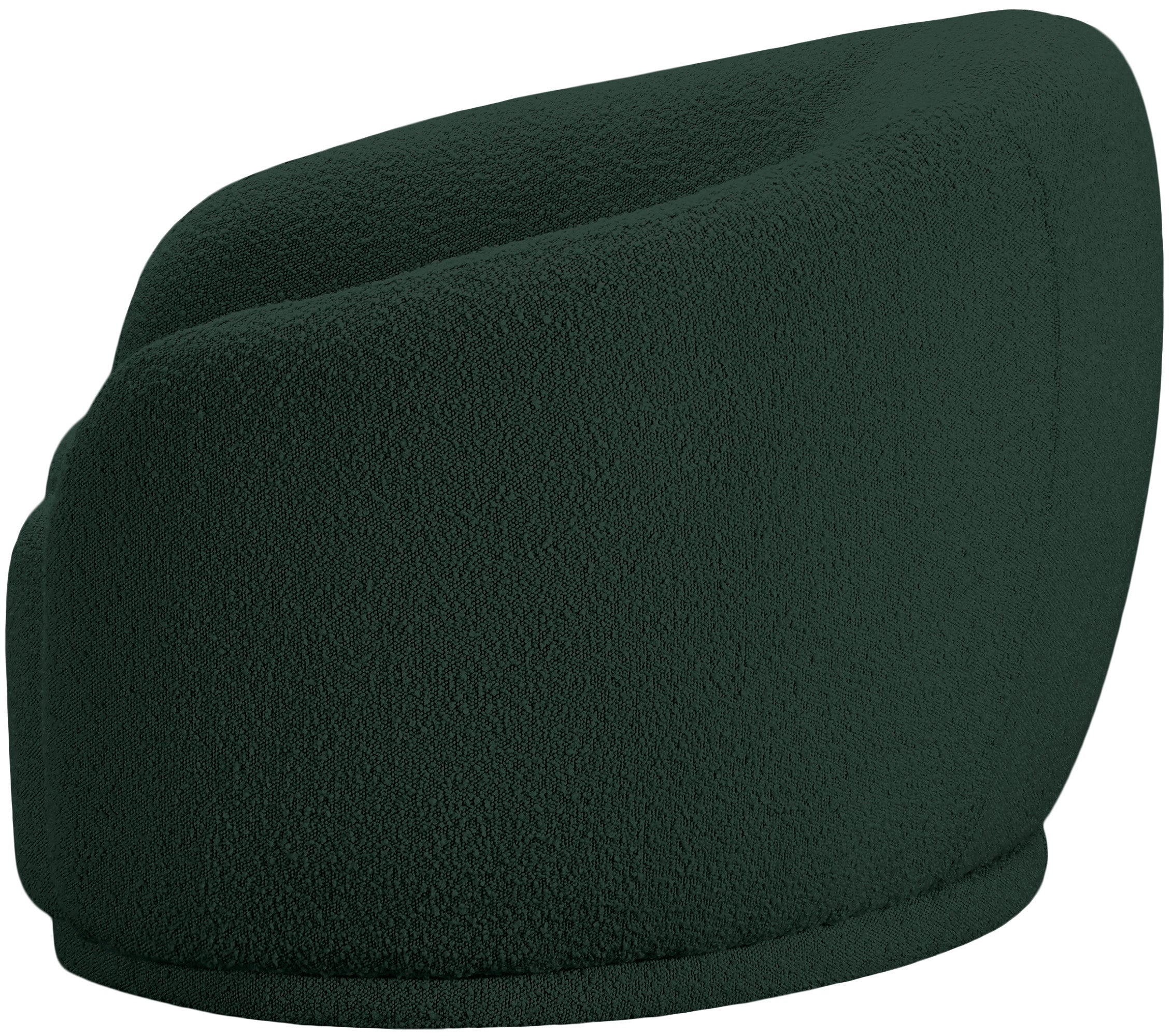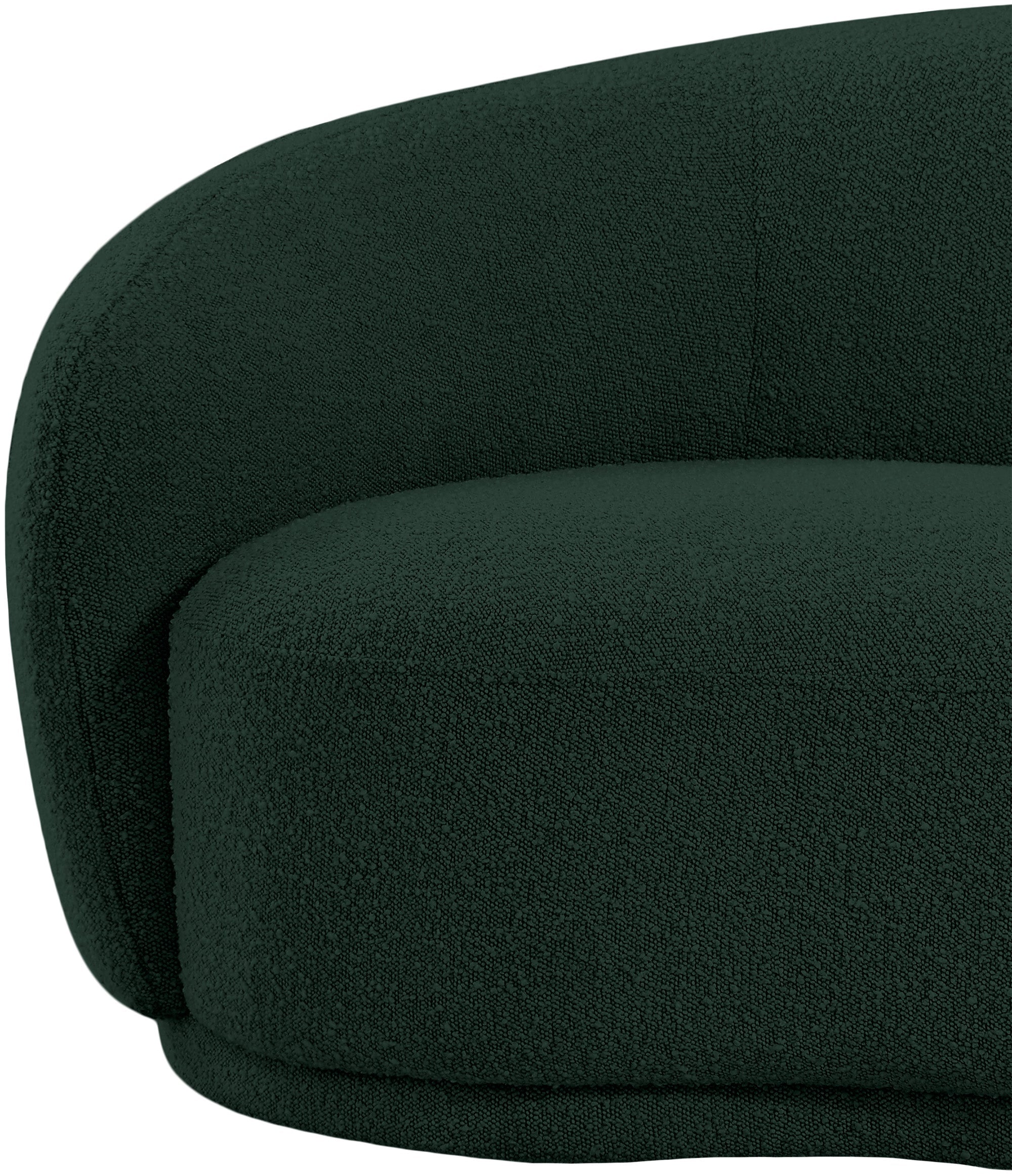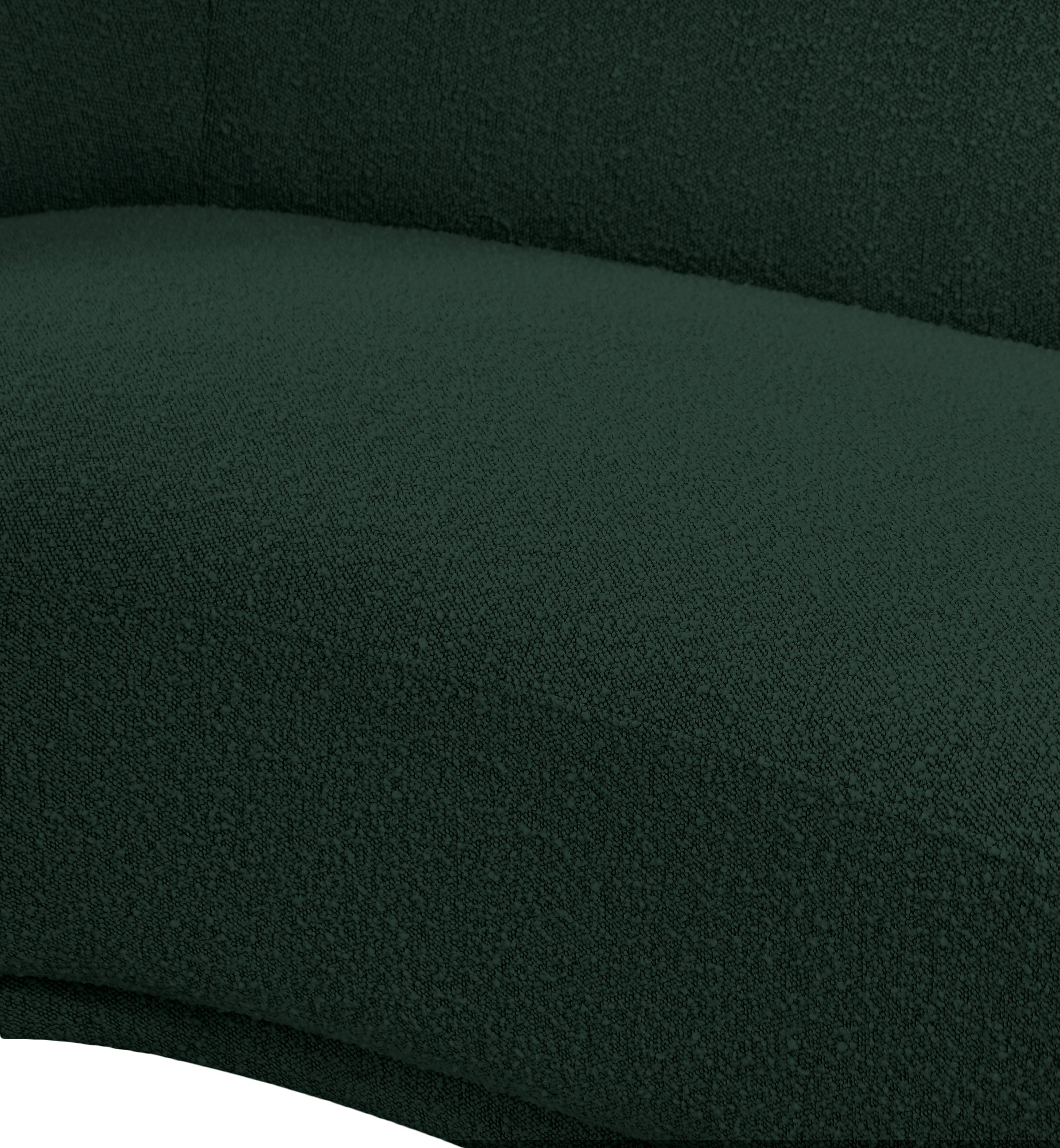 Curl up and relax on this Hyde green boucle fabric . This wide, rounded is as comfortable as it is stylish, making it an excellent addition to your living space. Rich green boucle fabric upholstery gives a soft touch against your skin and its deep plush cushion provides you with cozy support. Its rounded back is both chic and homey, with its contemporary design sure to add flair to your modern home.