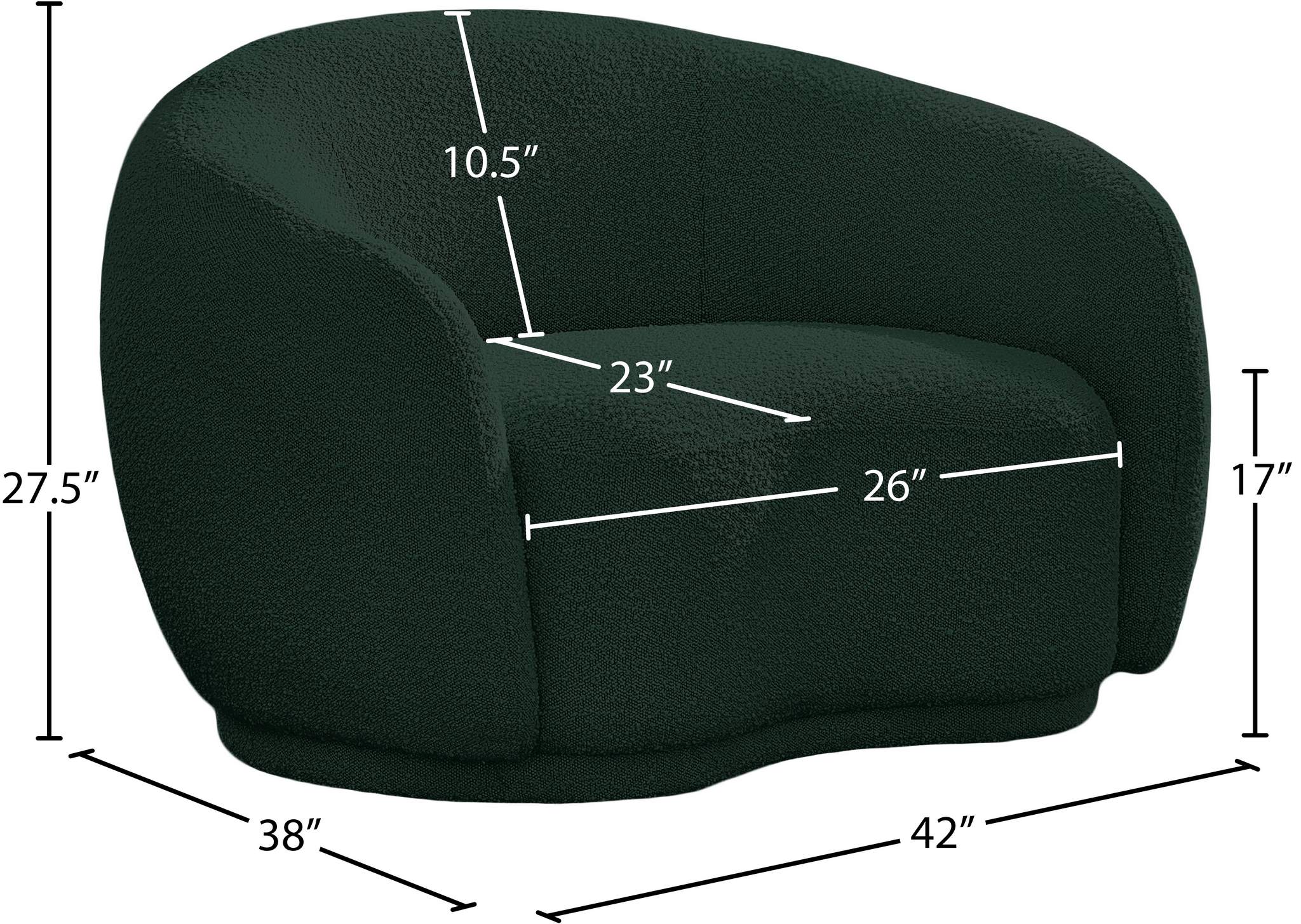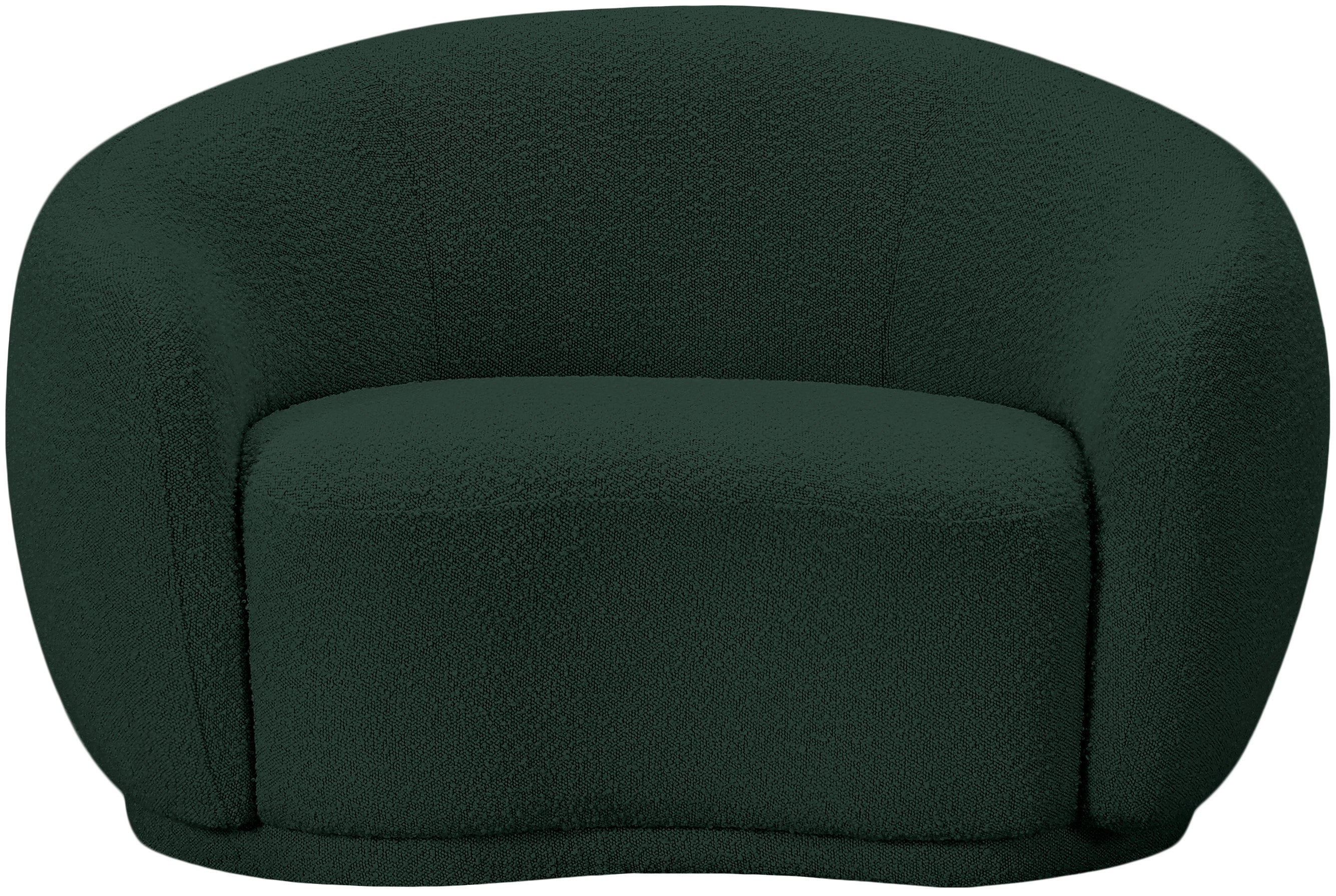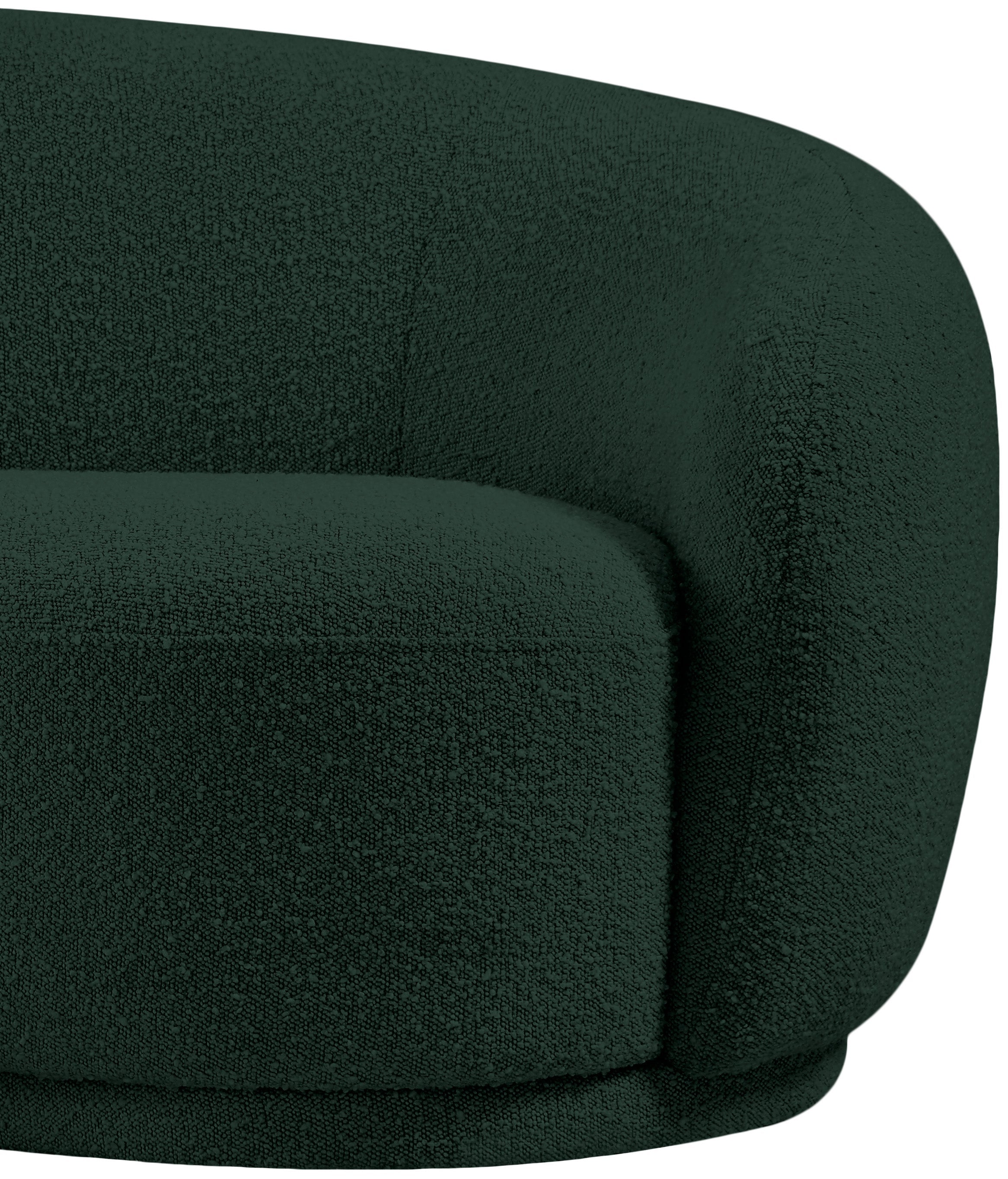Curl up and relax on this Hyde green boucle fabric . This wide, rounded is as comfortable as it is stylish, making it an excellent addition to your living space. Rich green boucle fabric upholstery gives a soft touch against your skin and its deep plush cushion provides you with cozy support. Its rounded back is both chic and homey, with its contemporary design sure to add flair to your modern home.