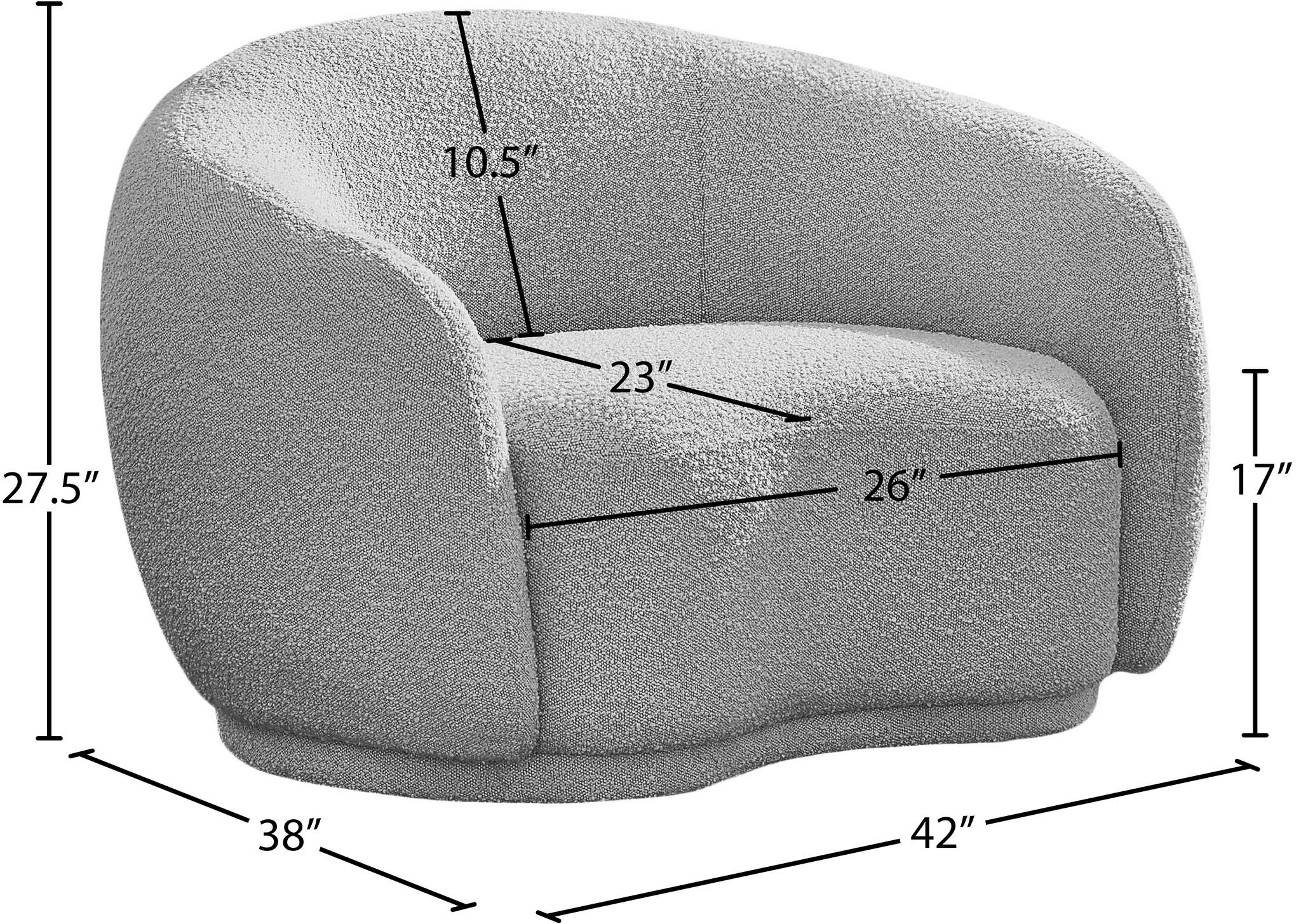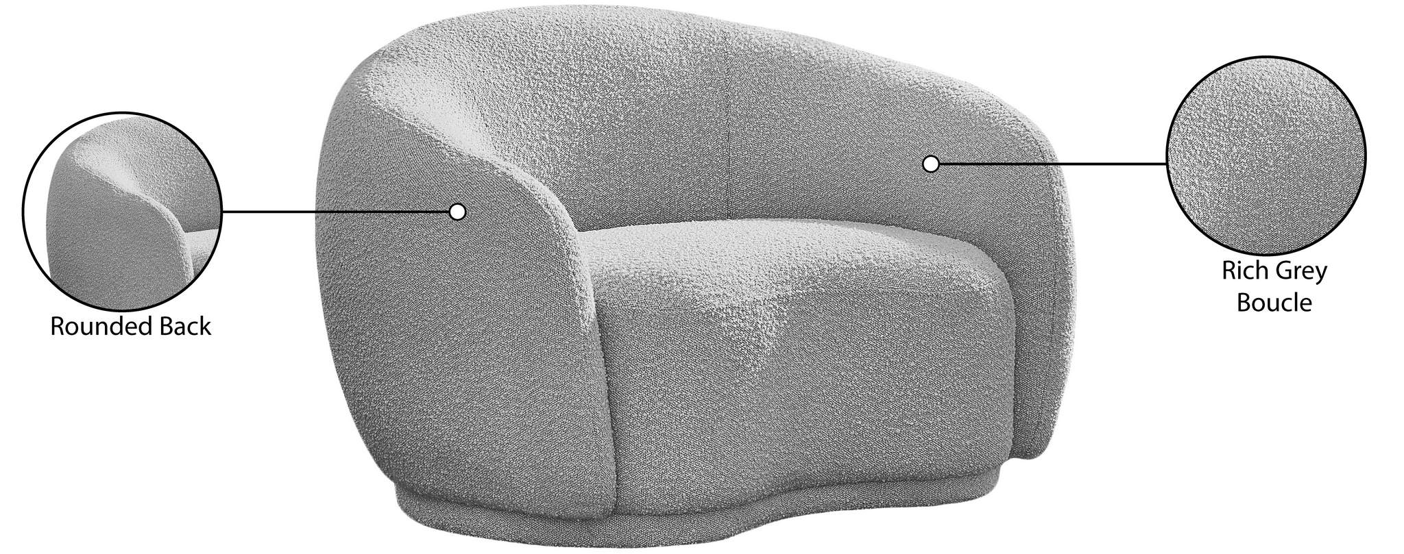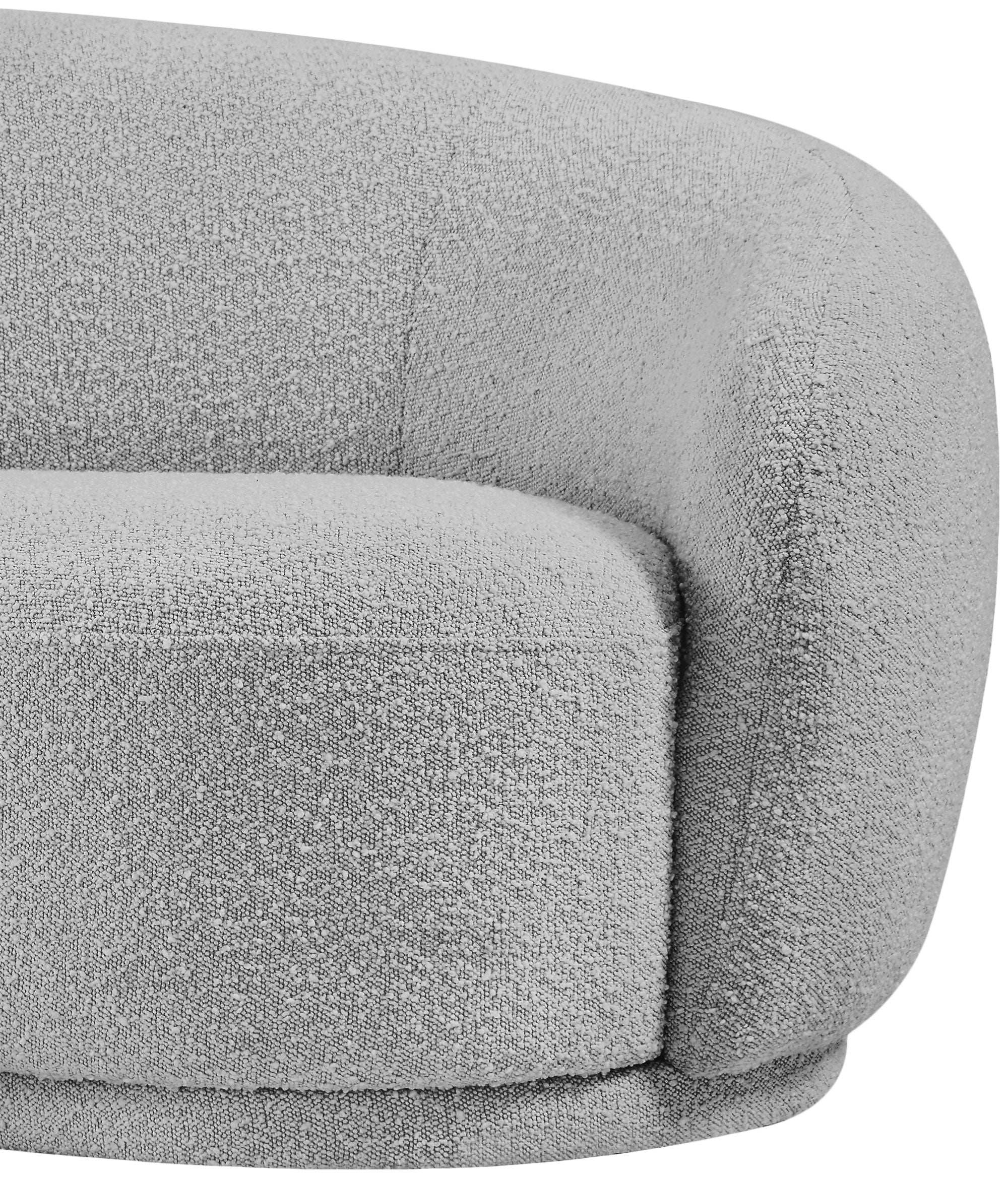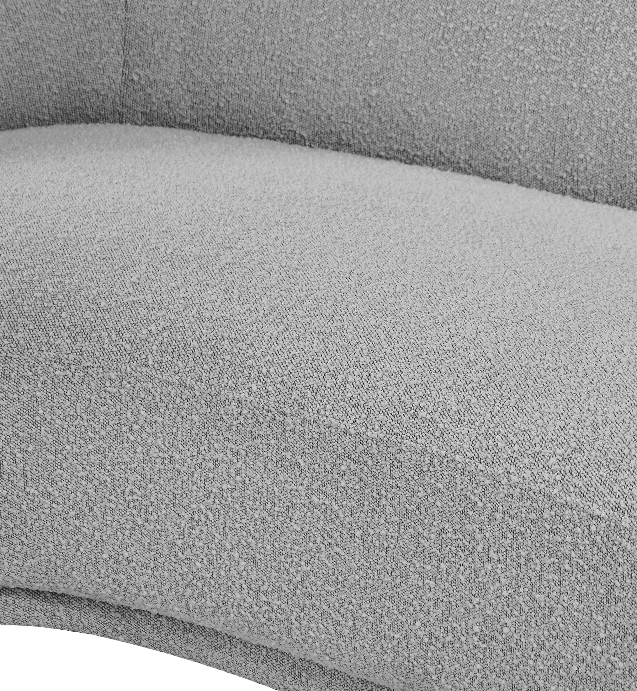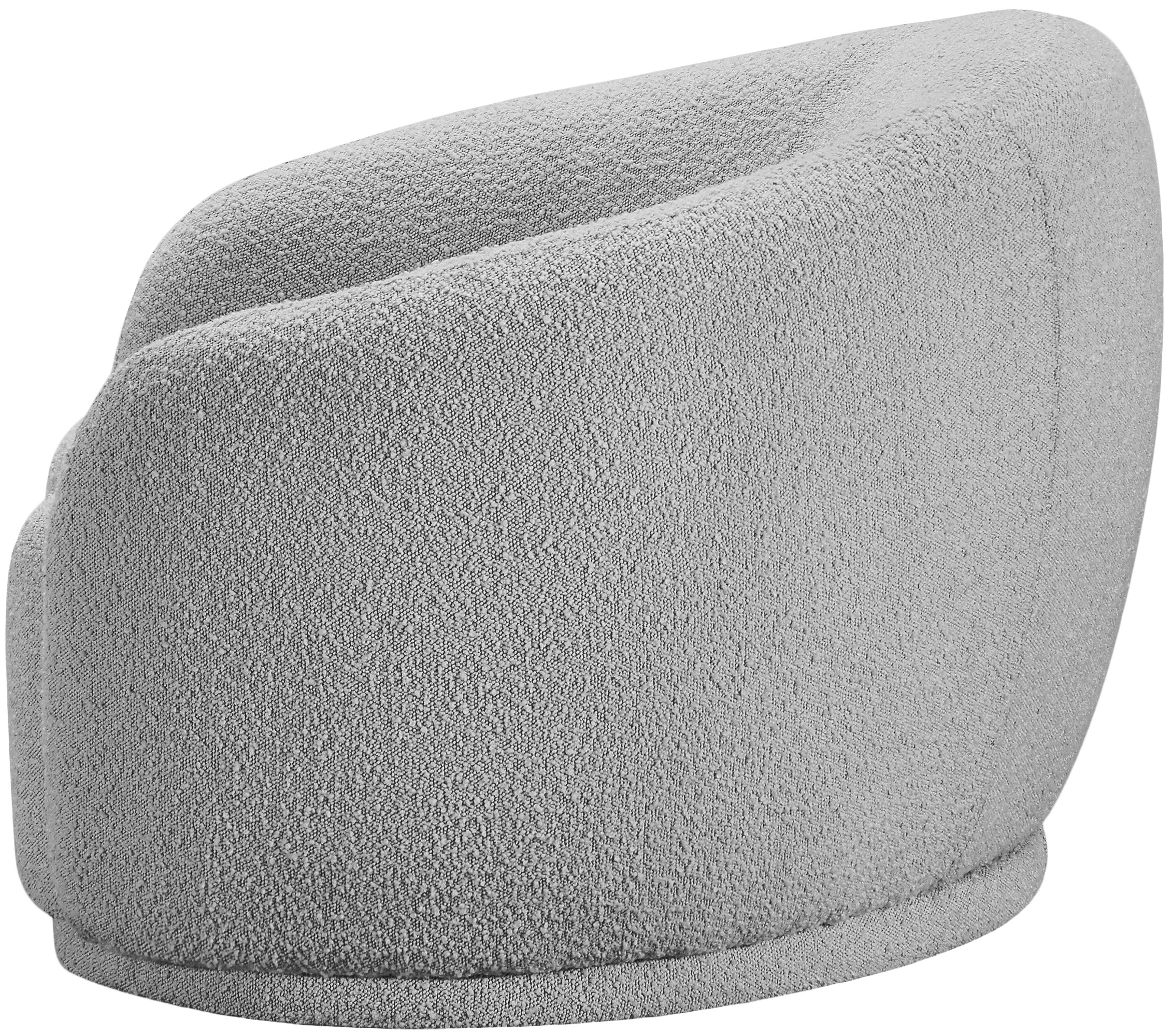Curl up and relax on this Hyde grey boucle fabric . This wide, rounded is as comfortable as it is stylish, making it an excellent addition to your living space. Rich grey boucle fabric upholstery gives a soft touch against your skin and its deep plush cushion provides you with cozy support. Its rounded back is both chic and homey, with its contemporary design sure to add flair to your modern home.