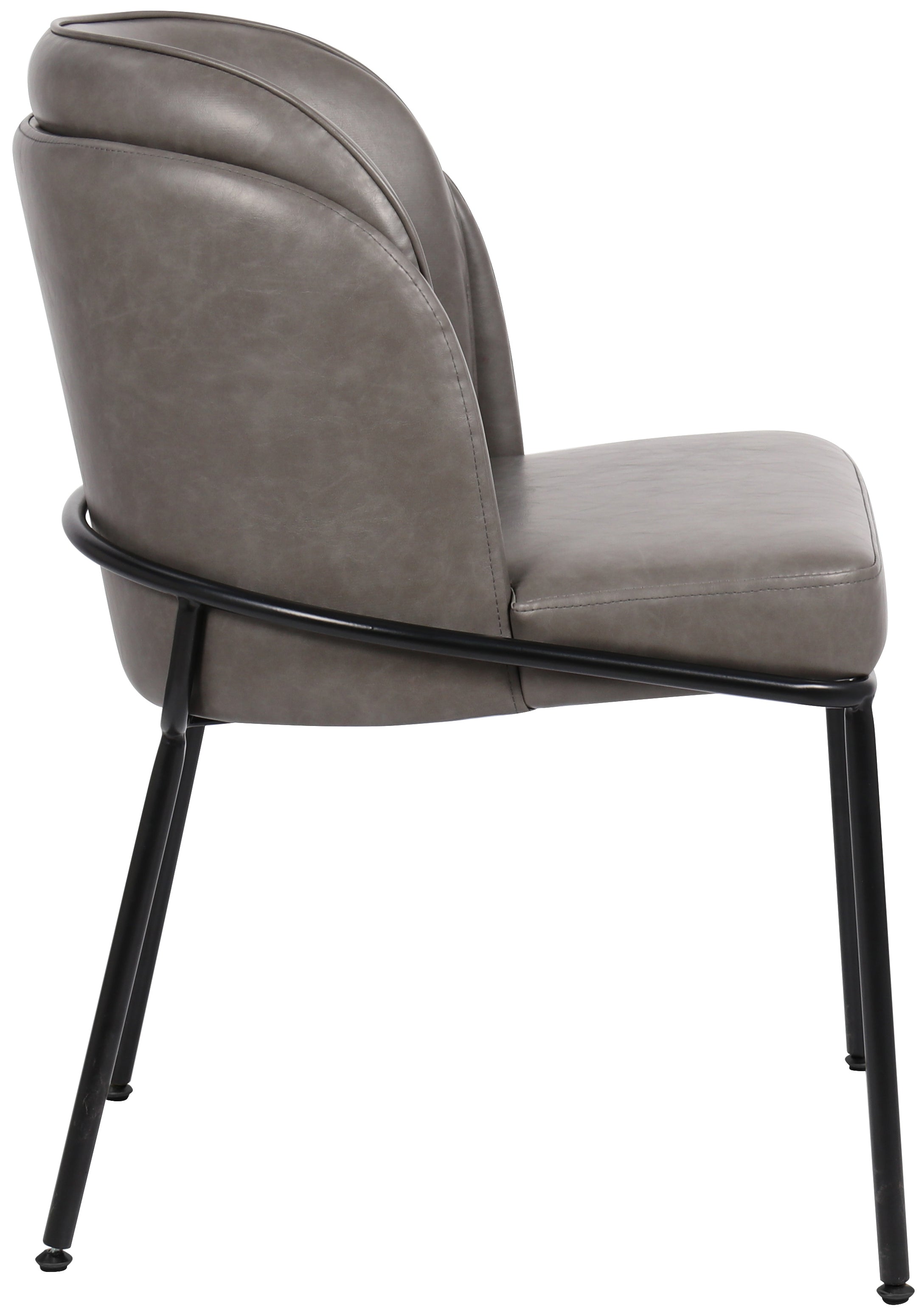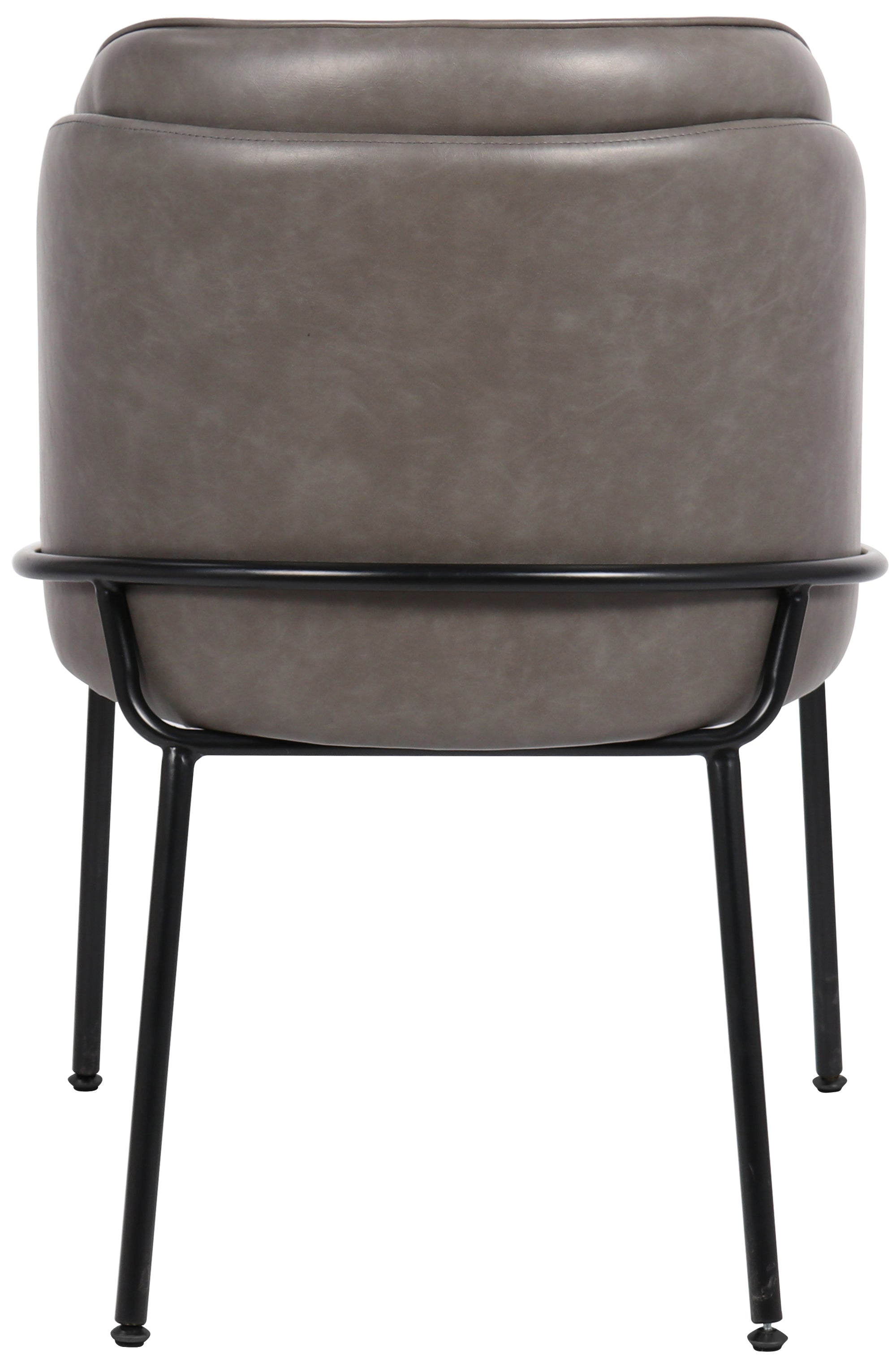 Enjoy the look of fine leather without the cruelty or expense when you bring home this Jagger vegan leather dining chair. Upholstered in soft grey vegan leather, this chair features matte black iron legs for sturdy support. Count on the double cushion back to keep you or guests comfortable from appetizers through dessert. Pair this pretty dining chair with the table of your choice for a complete look.