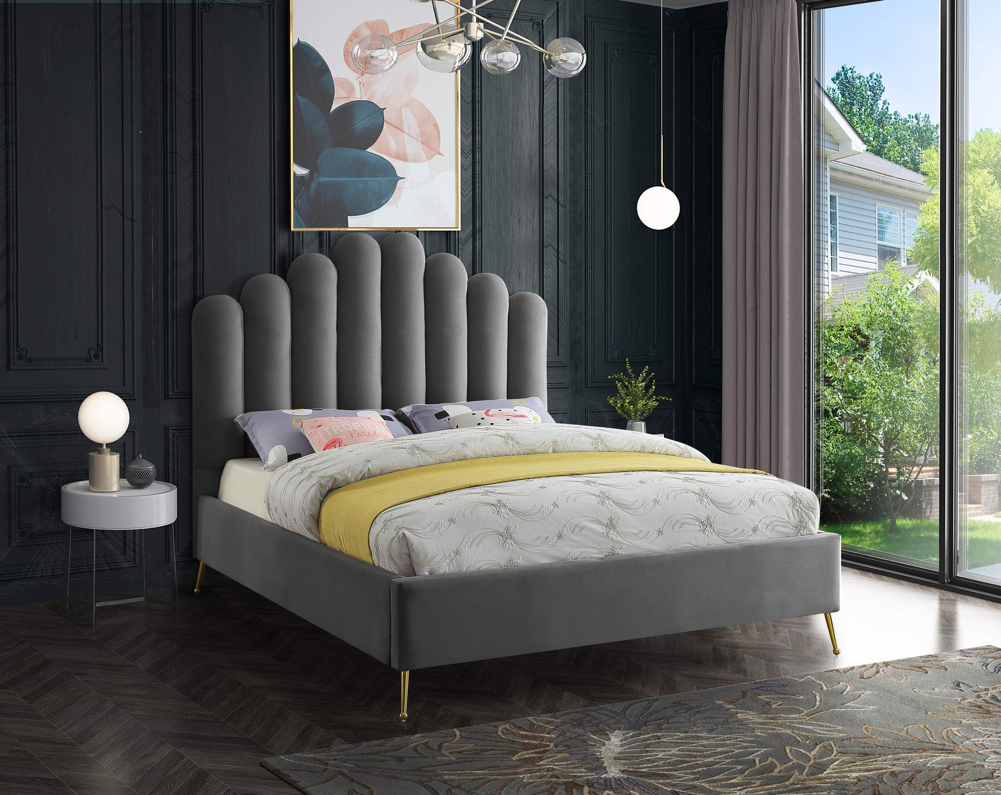 Lily Grey Velvet Upholstered Queen Bed | Meridian Furniture - LilyGrey-Q