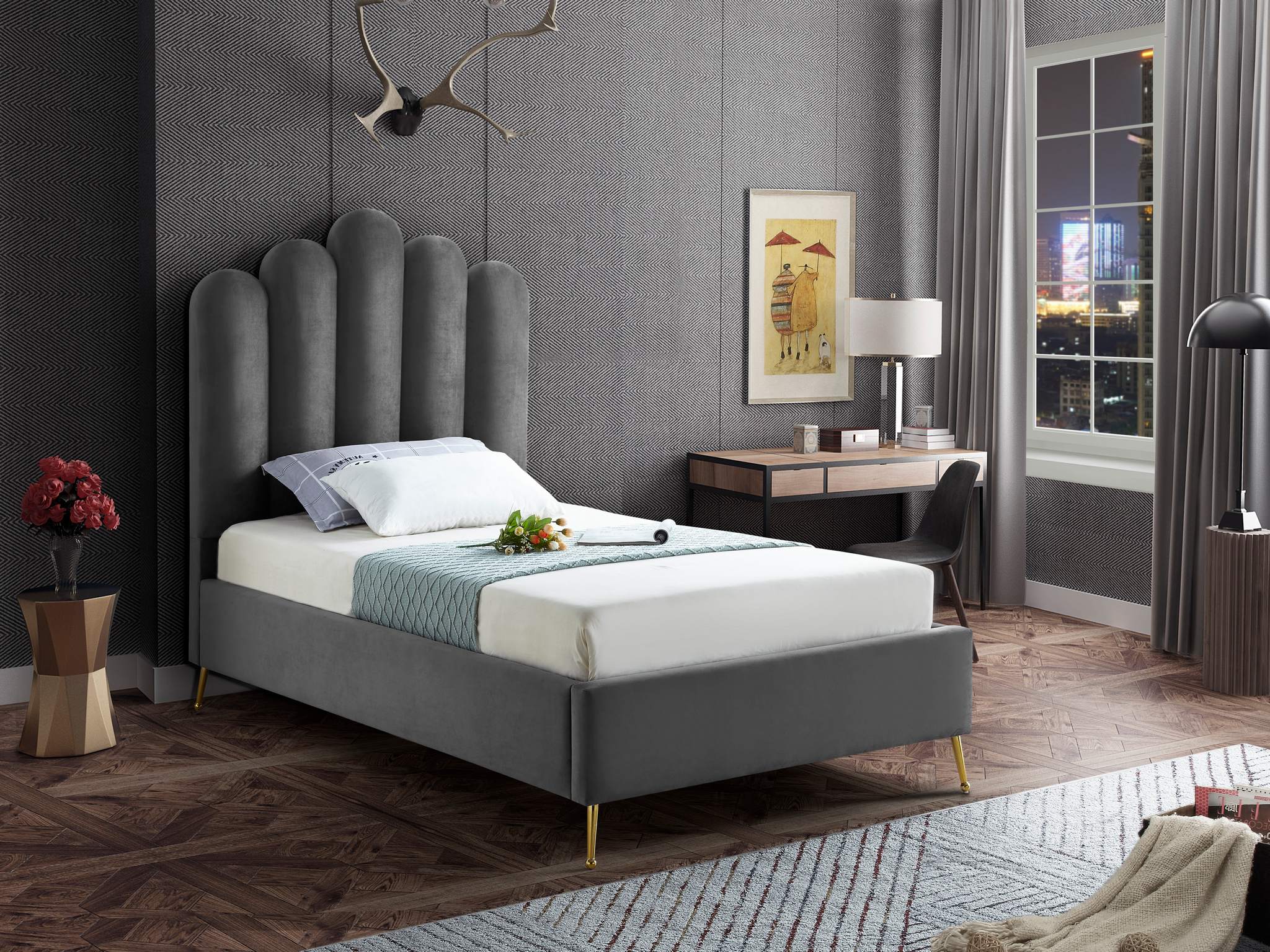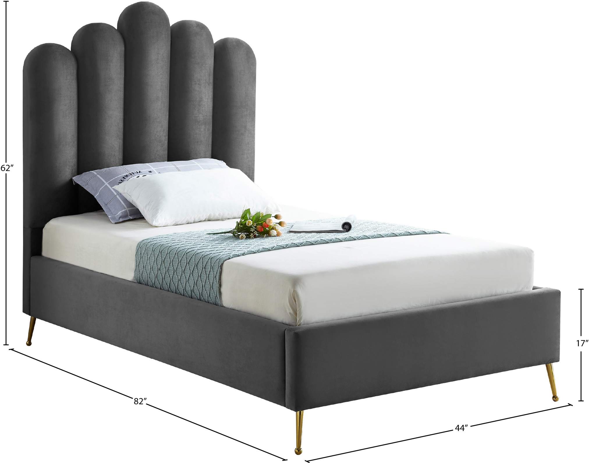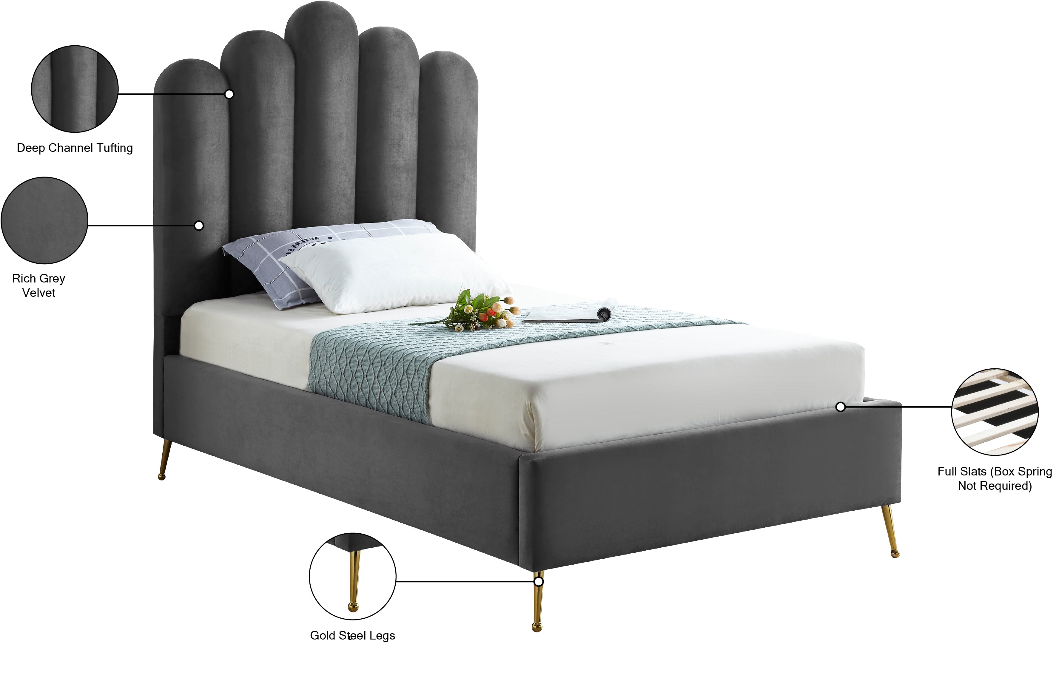 Lily Grey Velvet Upholstered Twin Bed | Meridian Furniture - LilyGrey-T