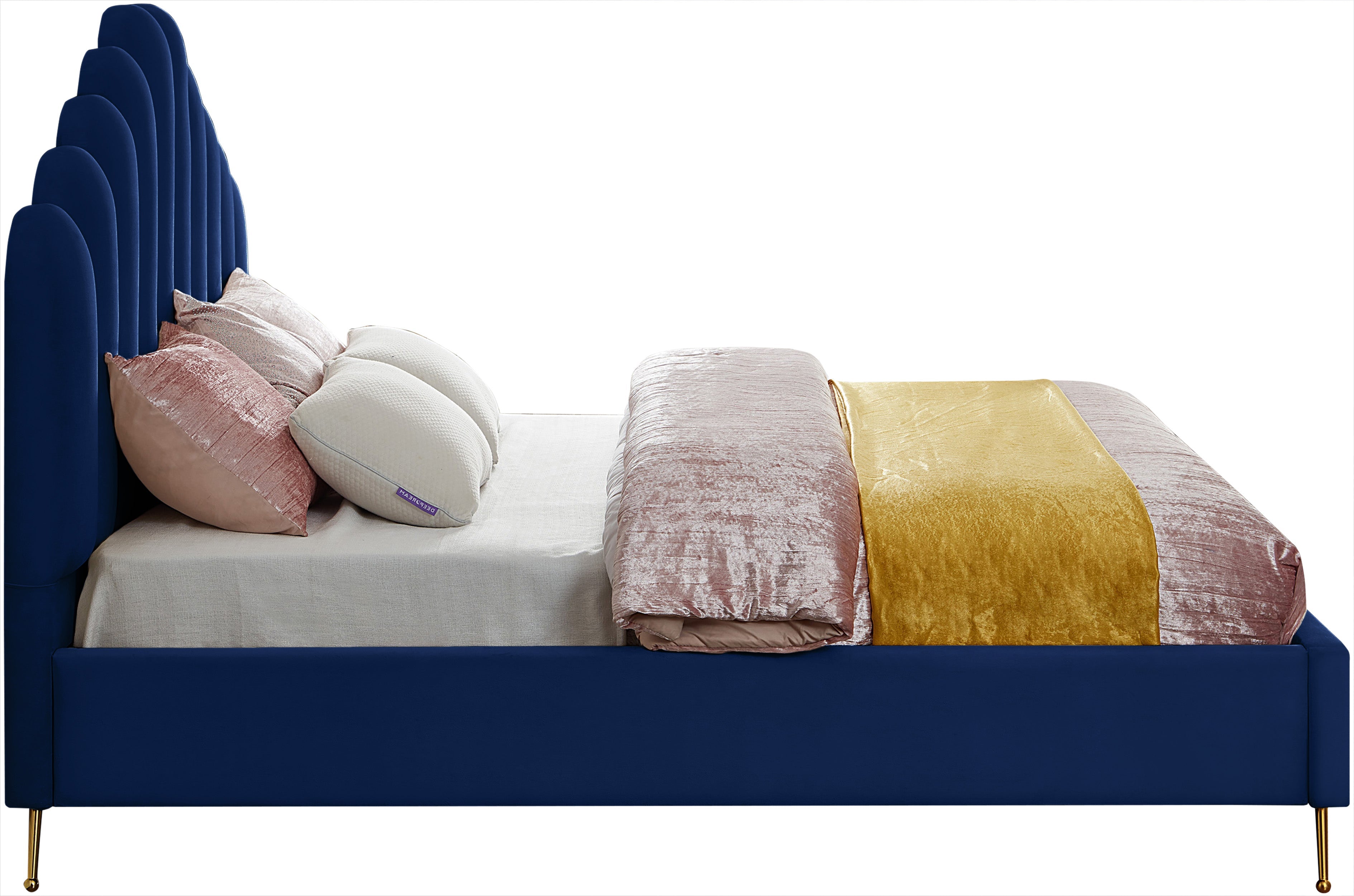 Lily Navy Velvet Upholstered King Bed | Meridian Furniture - LilyNavy-K