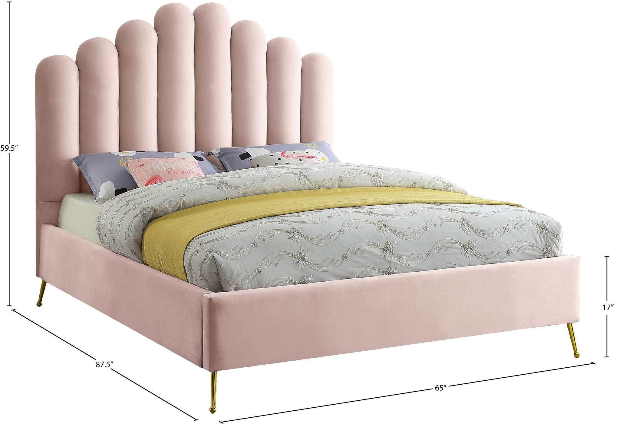 Lily Pink Velvet Upholstered Queen Bed | Meridian Furniture - LilyPink-Q