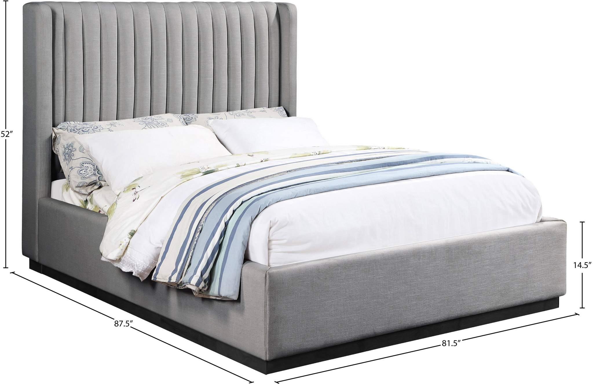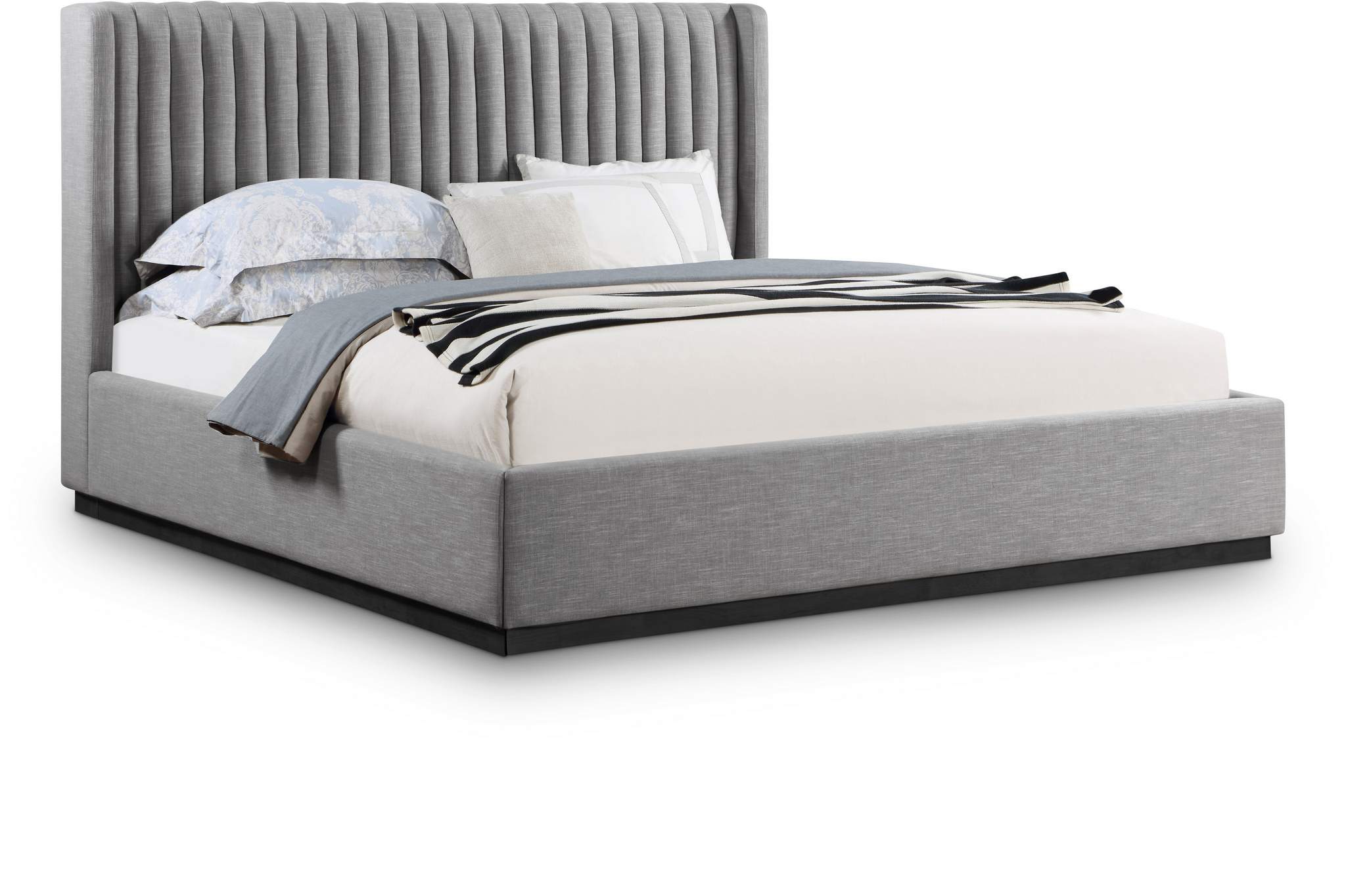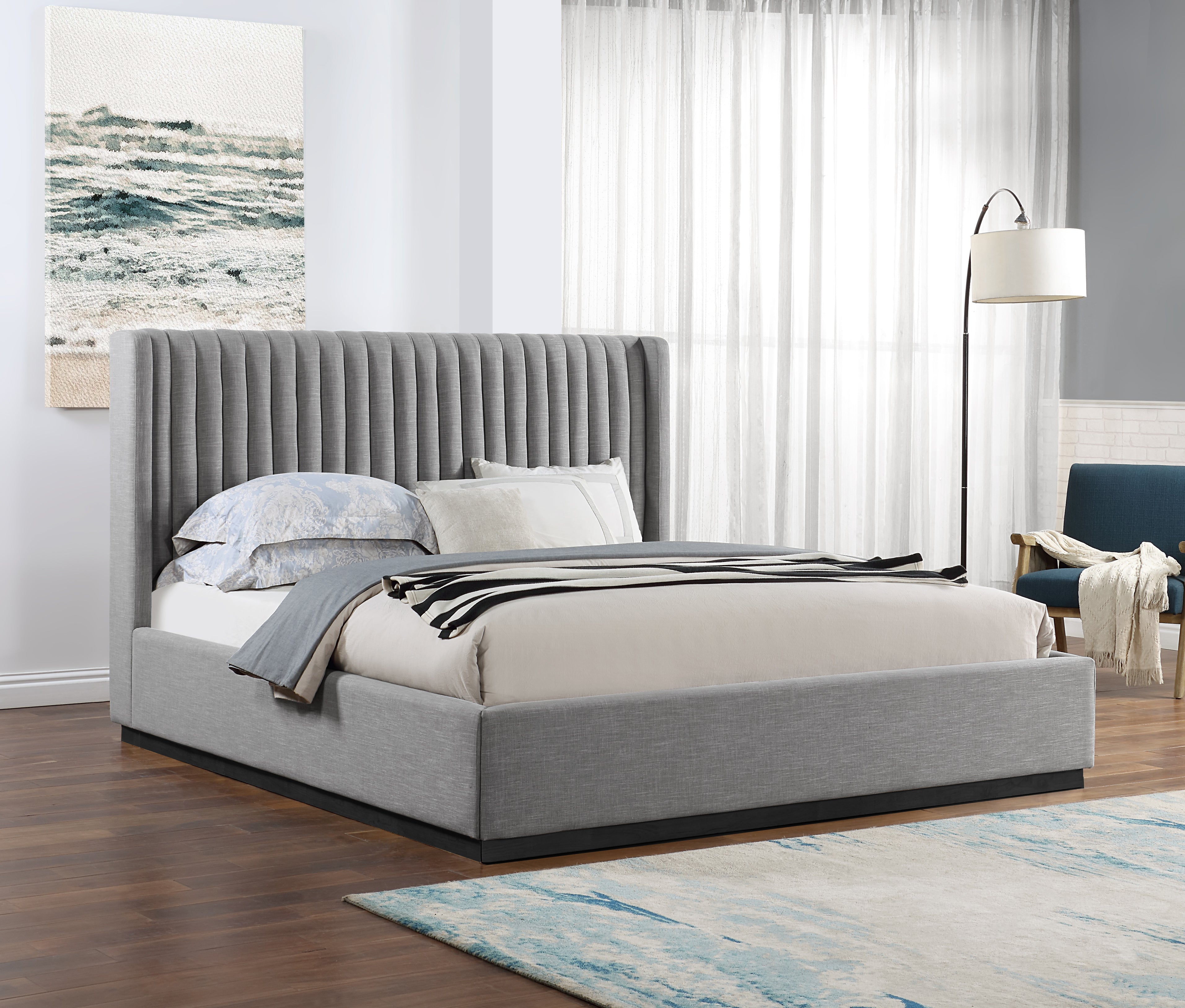 Logan Grey Linen Textured Fabric Upholstered King Bed | Meridian Furniture - LoganGrey-K