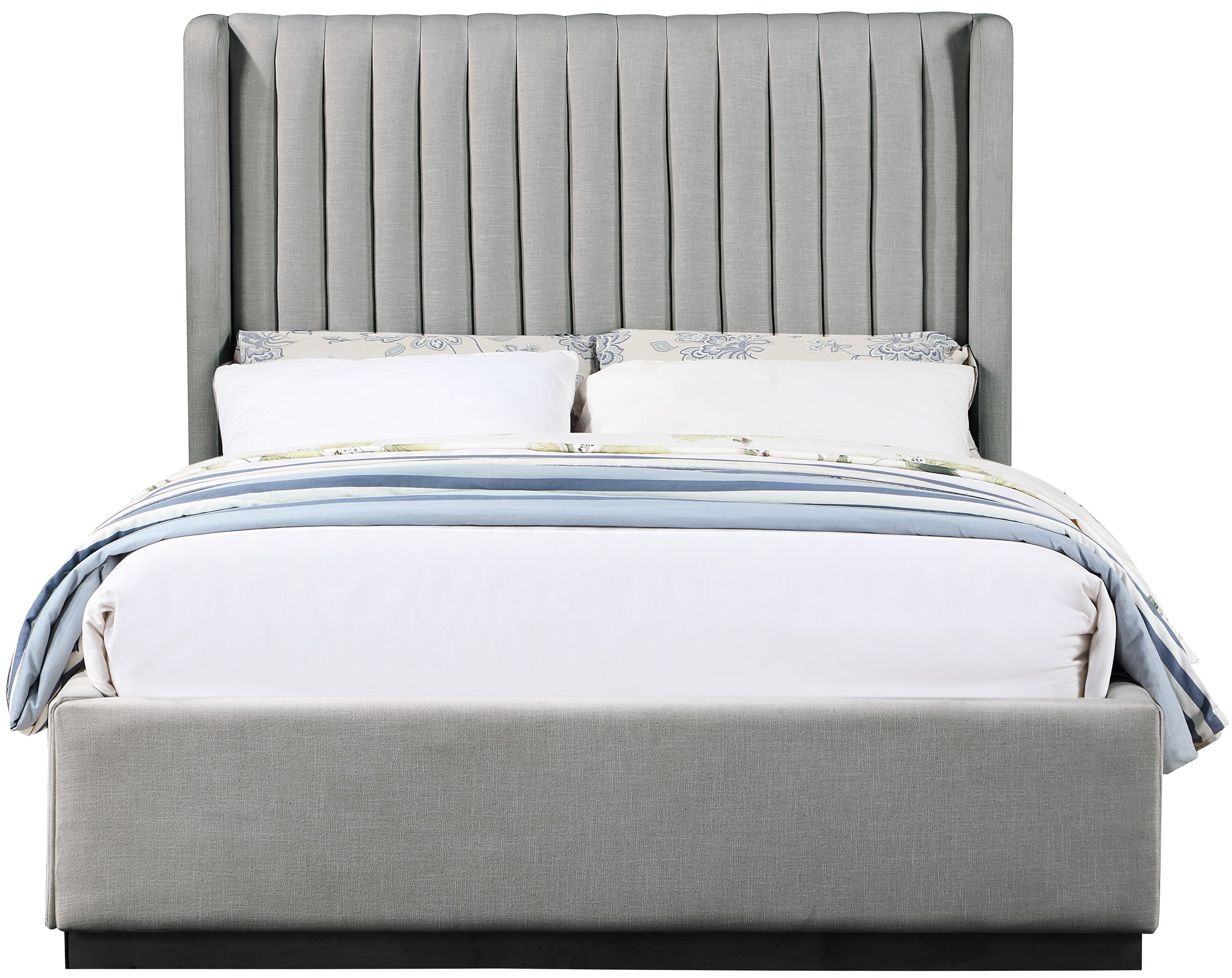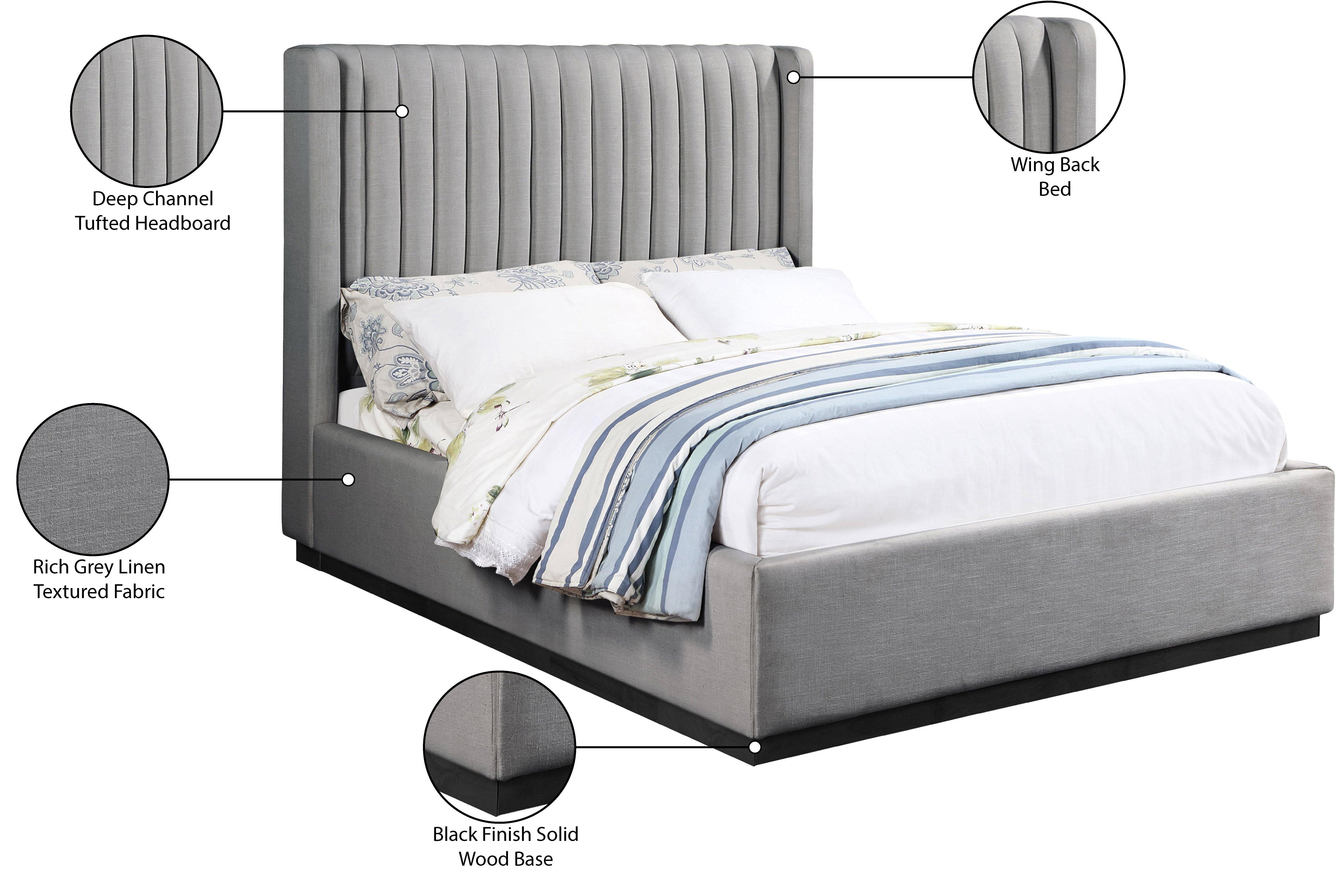 Logan Grey Linen Textured Fabric Upholstered Queen Bed | Meridian Furniture - LoganGrey-Q