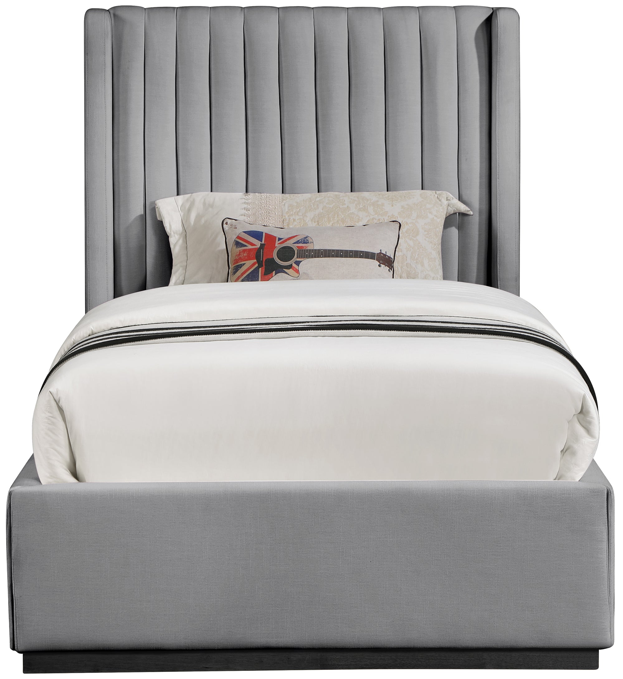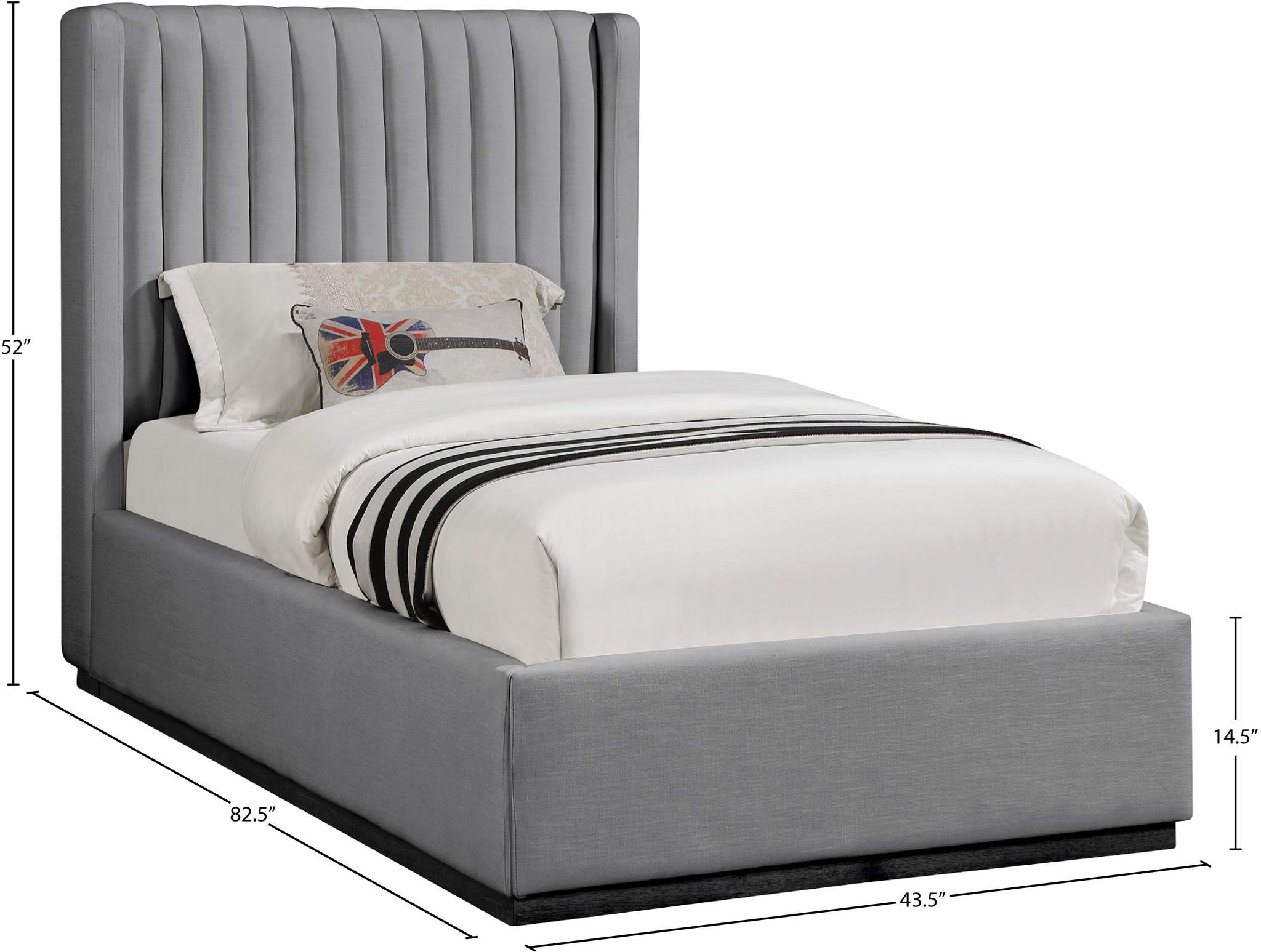 Logan Grey Linen Textured Fabric Upholstered Twin Bed | Meridian Furniture - LoganGrey-T