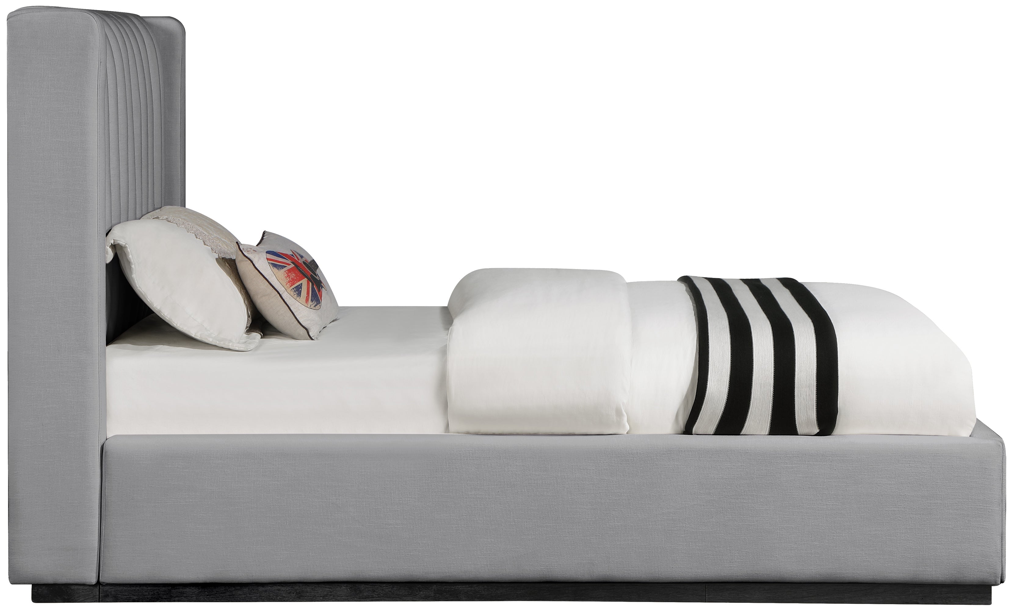 Nestle you (or the two of you) into the welcoming confines of this Logan linen textured fabric bed. This handsome bed features a super tall headboard that's channel tufted for extra softness and support against your back while you catch up on your reading or watch TV in bed. Soft rich grey linen fabric covers the back and sides of this wingback bed, giving it an ultra modern feel. A solid finished wood base provides ample support for lasting performance and durability.