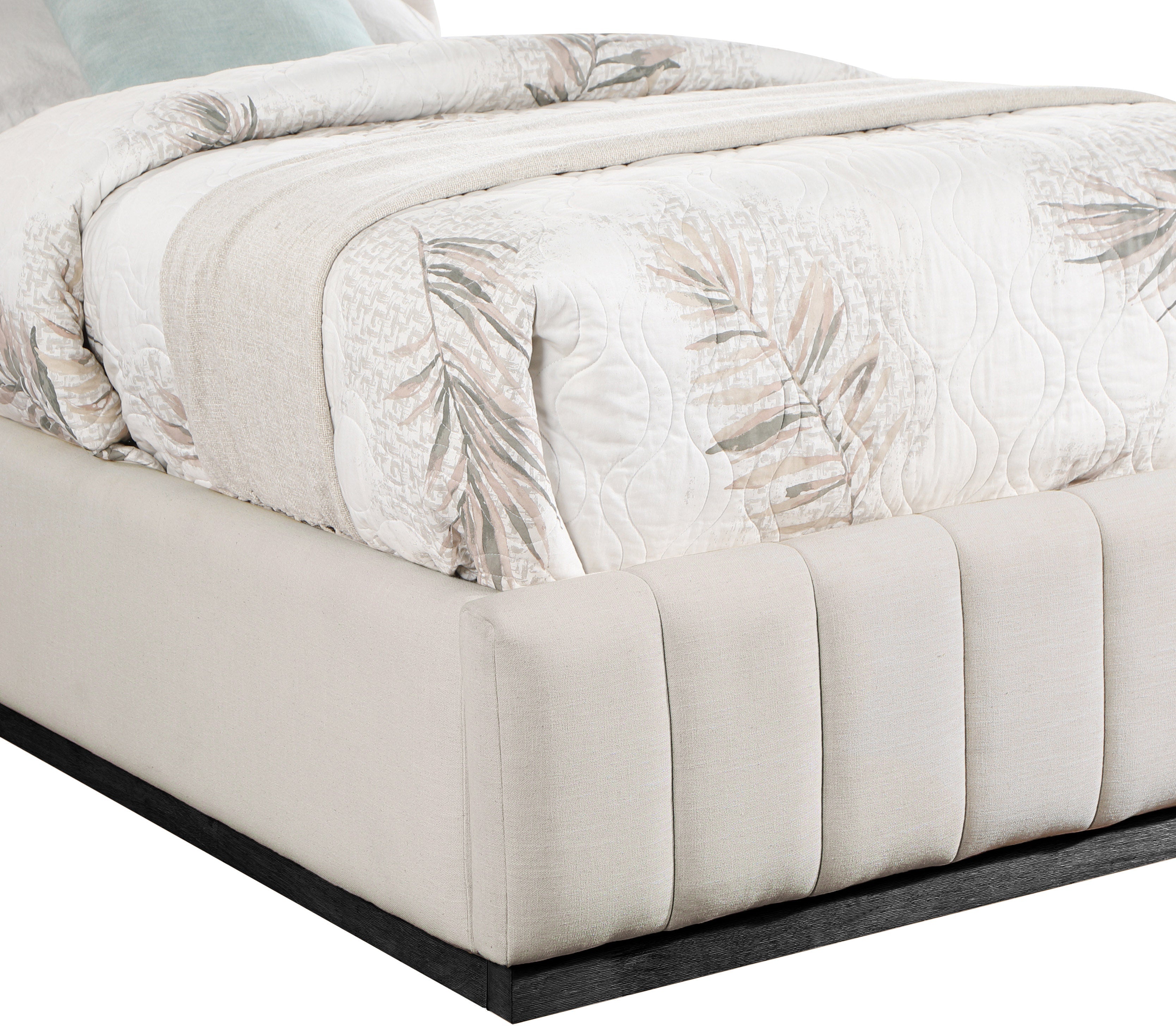 Remake your bedroom in an instant with this Lucia linen textured fabric bed. Upholstered in soft-to-the-touch beige linen textured fabric on its headboard, footboard, and side rails, this handsome full bed has a high headboard for an attention-demanding look in your room. Channel tufting on the headboard and footboard add to its aesthetic beauty while providing texture and dimension. The bed rests on a black-finished base that's crafted from solid wood for lasting beauty and durability.