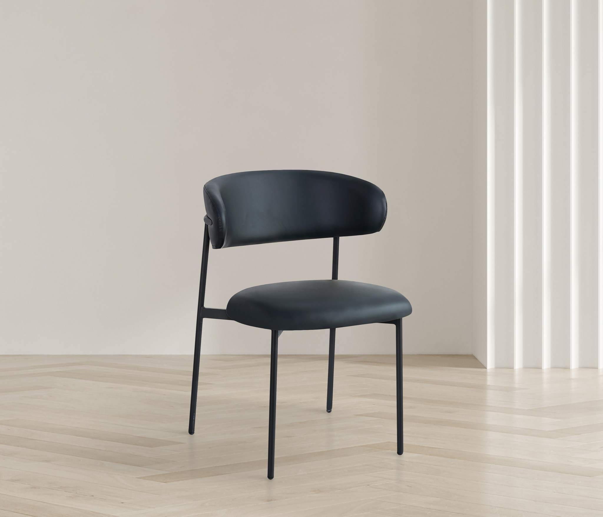 Take dining to a sophisticated new level with these Lupita vegan leather dining chairs. Boasting a matte black finish on the frame and legs for an elegant, refined feel, this pack of two vegan leather dining chairs features curved backs for total comfort all the way through the desert course. Padded cushions on the back and seat add to dining comfort. Pair these chairs with your favorite table for an upscale look in an instant.