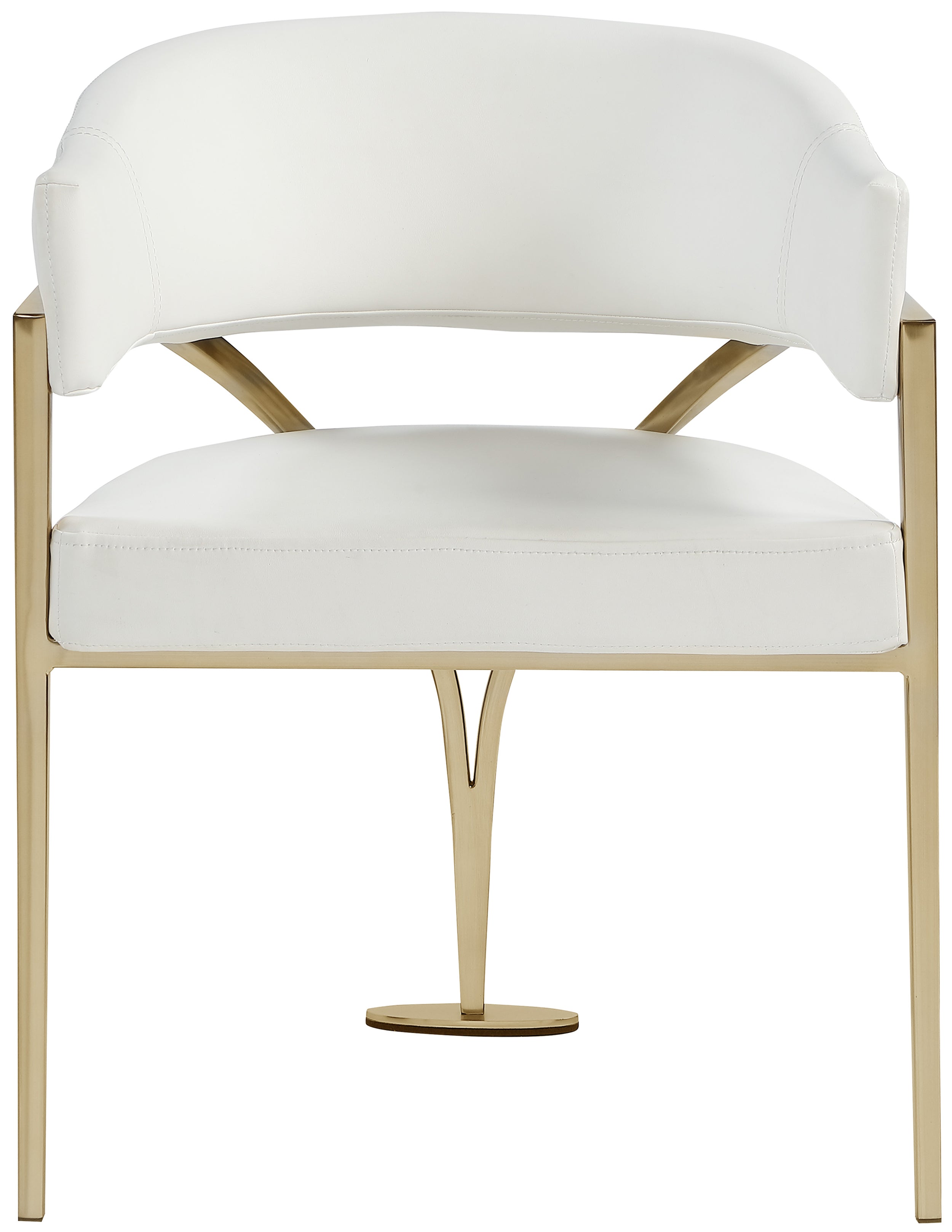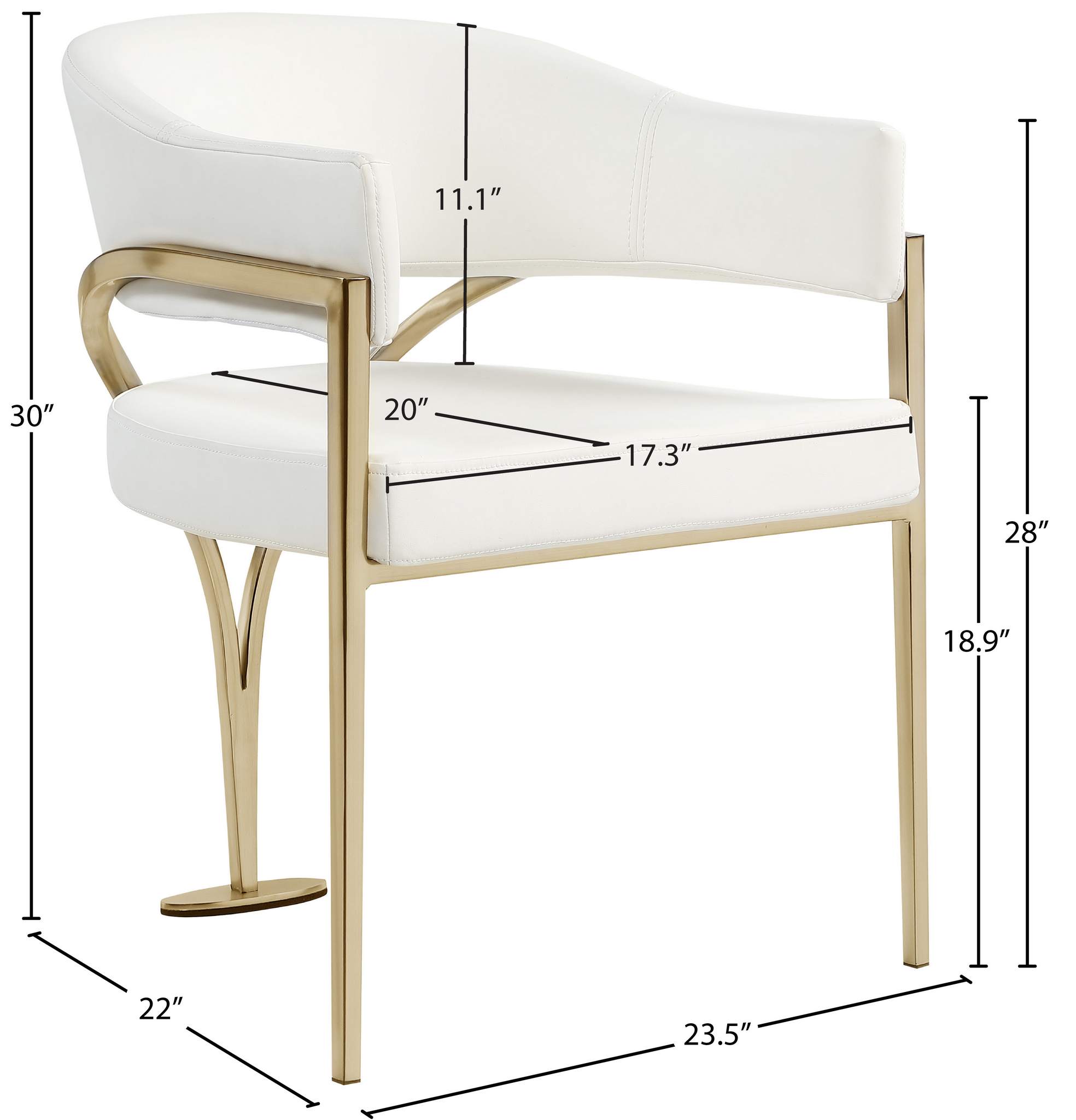 Give your dining area a show-stopping new look when you bring home one or more of these Madelyn velvet dining chairs. The Madelyn chair is all about comfort and style with its barrel-back design and its sophisticated lines. Upholstered in luxurious cream velvet that's inviting to the skin and super soft to the touch, this chair features an iron metal frame for durability and lasting use in your busy home. The brushed brass finish adds a final modish touch to this lovely dining chair.