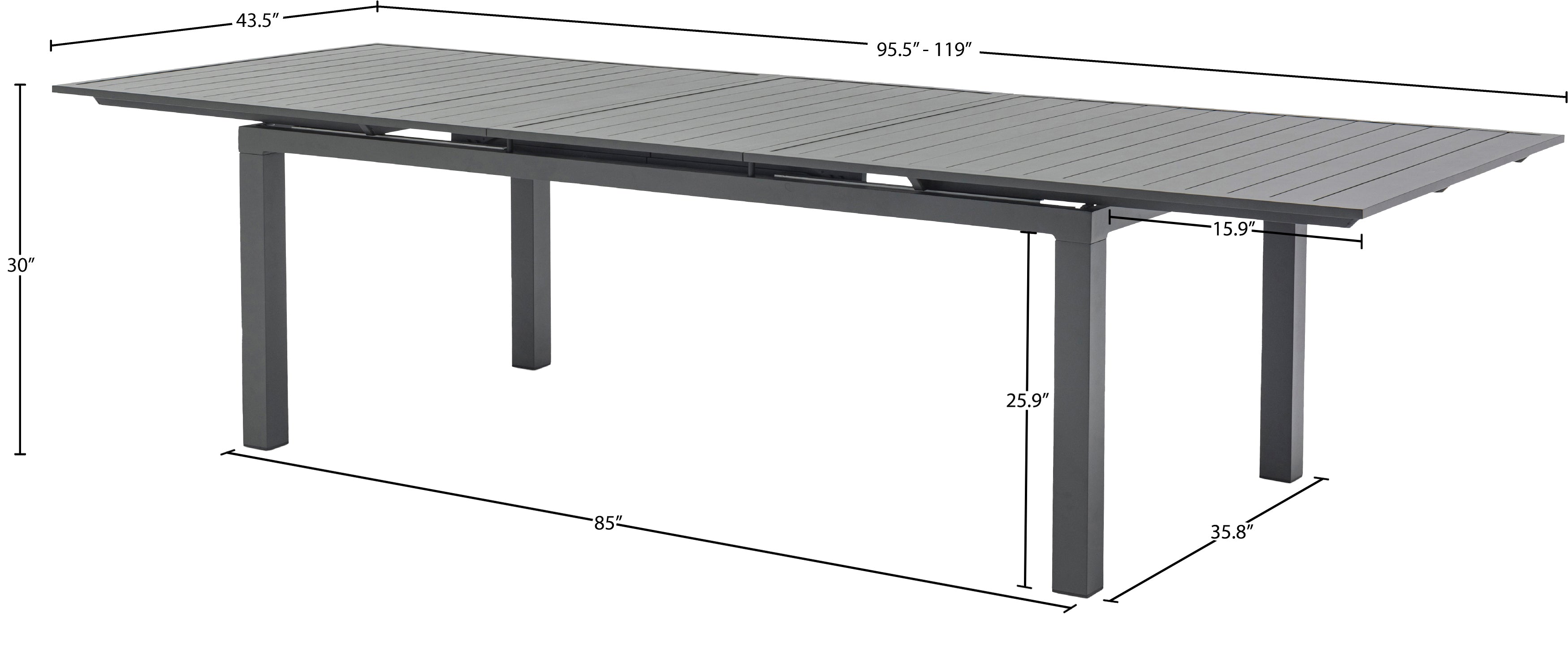 Maldives 95.5" / 119" Grey Aluminum Outdoor Patio Dining Table | Meridian Furniture - 343Grey-T