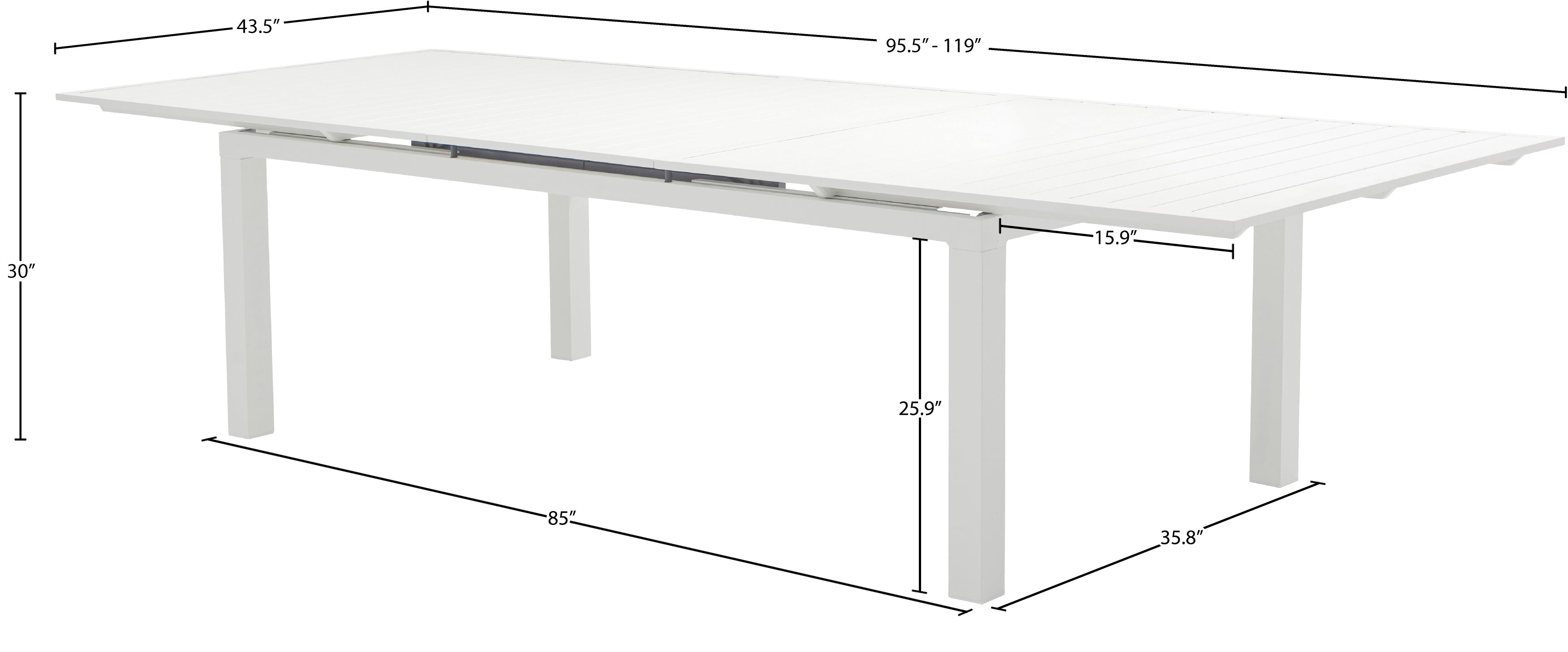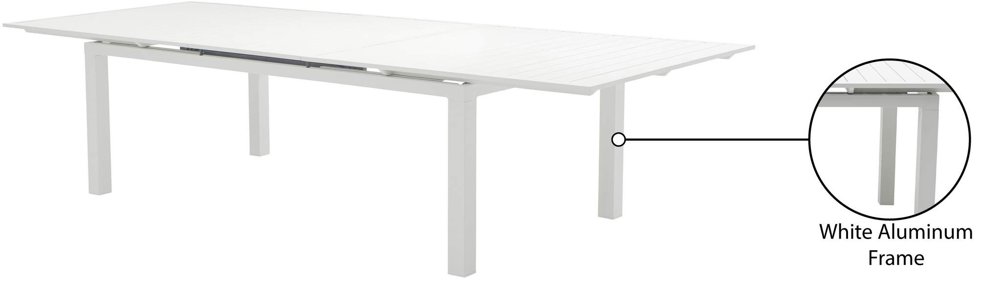 Maldives 95.5" / 119" White Aluminum Outdoor Patio Dining Table | Meridian Furniture - 343White-T