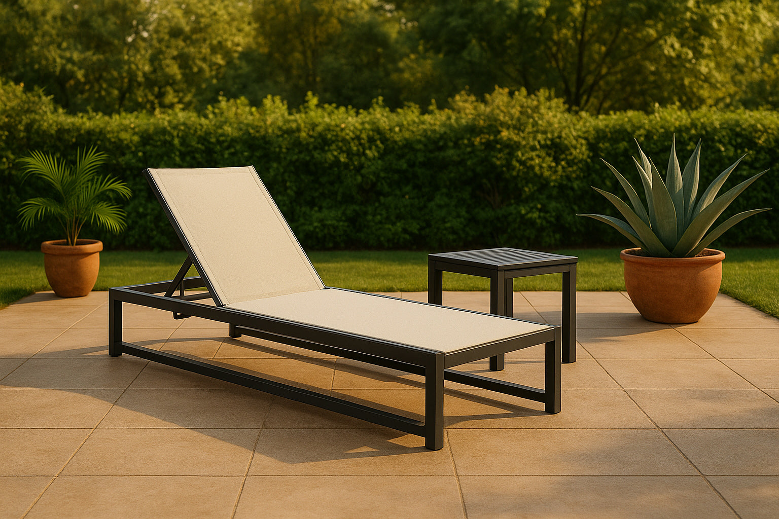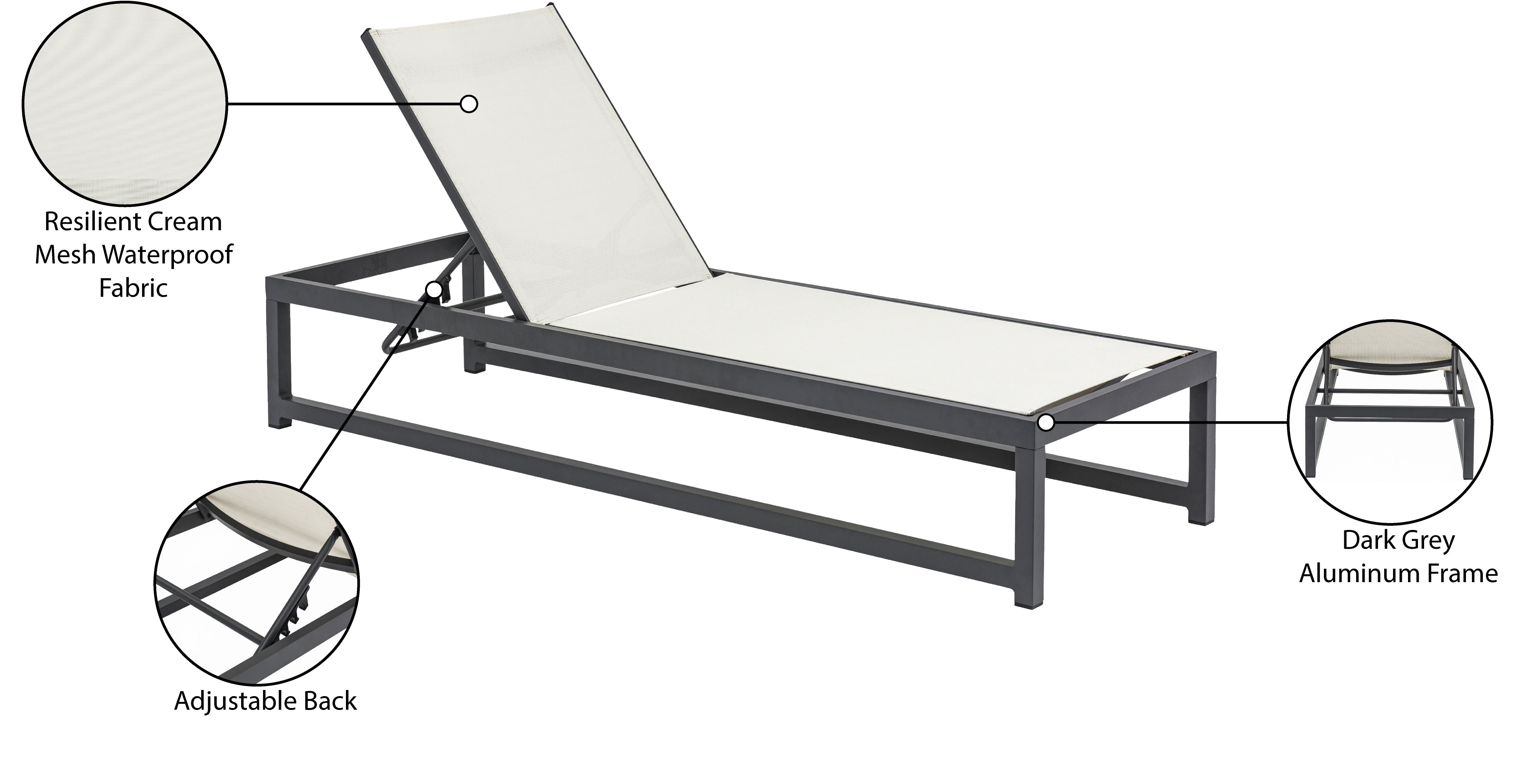 Maldives Cream Adjustable Mesh Water Resistant Fabric Outdoor Patio Adjustable Sun Chaise Lounge | Meridian Furniture - 348Cream