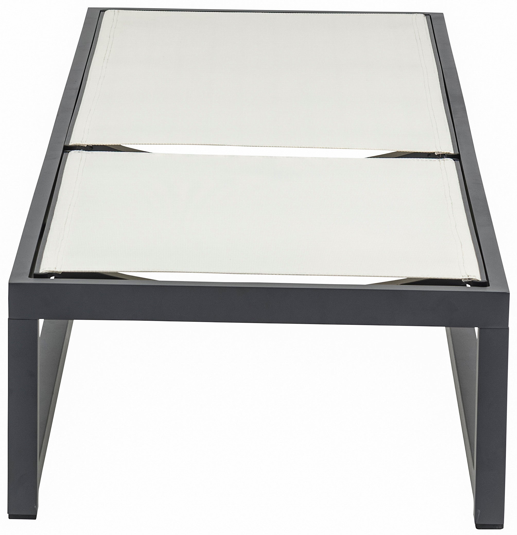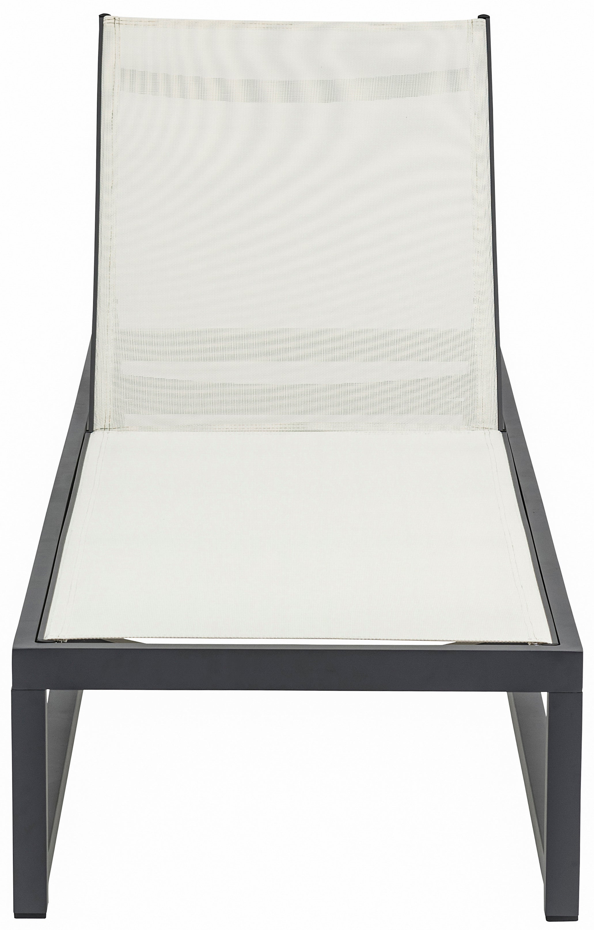 Bring the comfort of the indoors to your outdoor space with this Maldives outdoor patio chaise lounge chair. This beautiful chair features a grey aluminum frame with quality construction, so you can count on it weathering the outdoors without skipping a beat. A cream mesh water resistant fabric supports you comfortably while you rest and relax under the sun, while adding a definitive resort appeal.