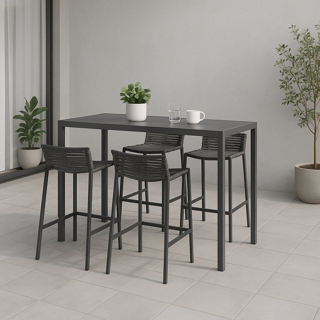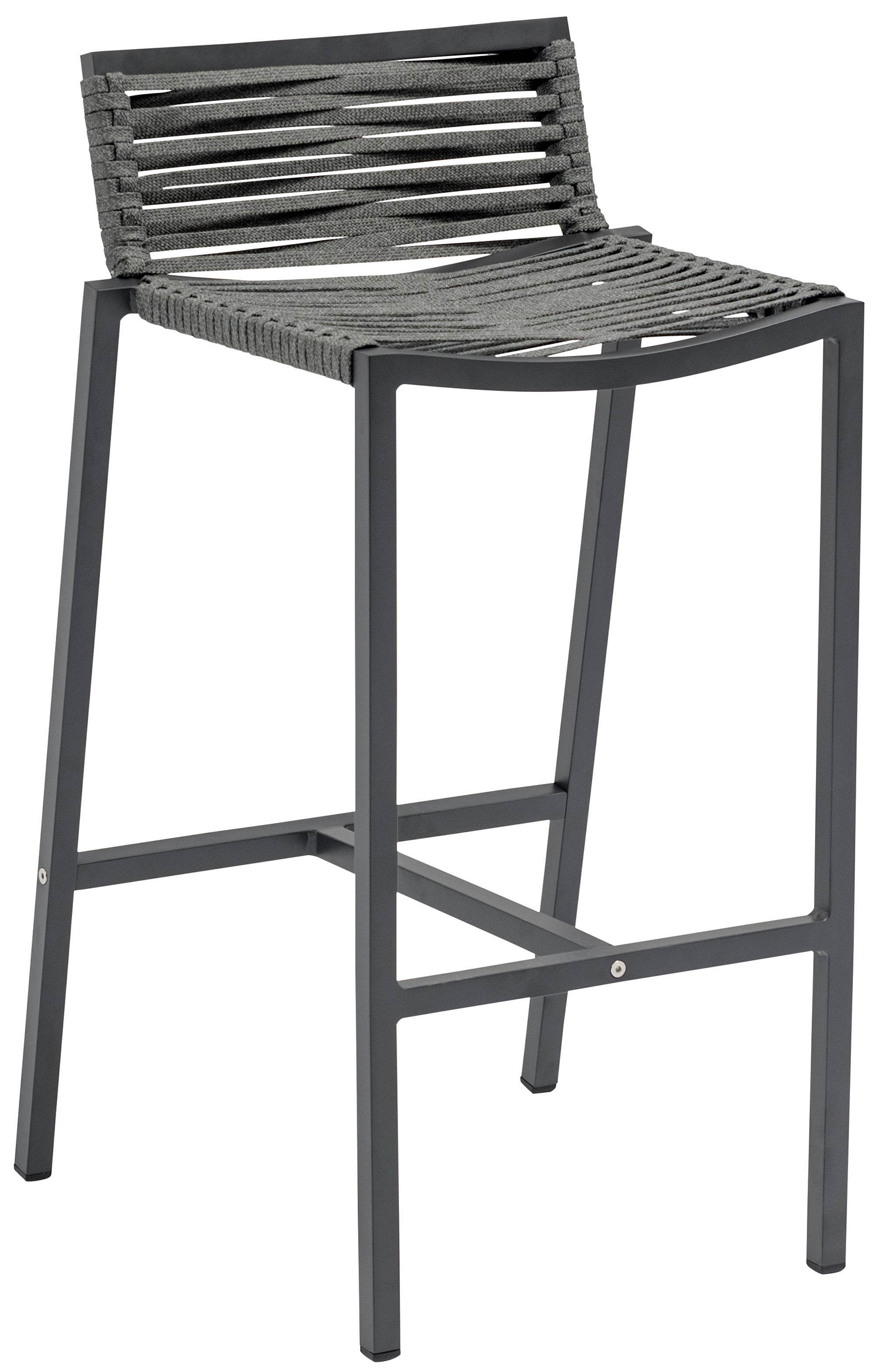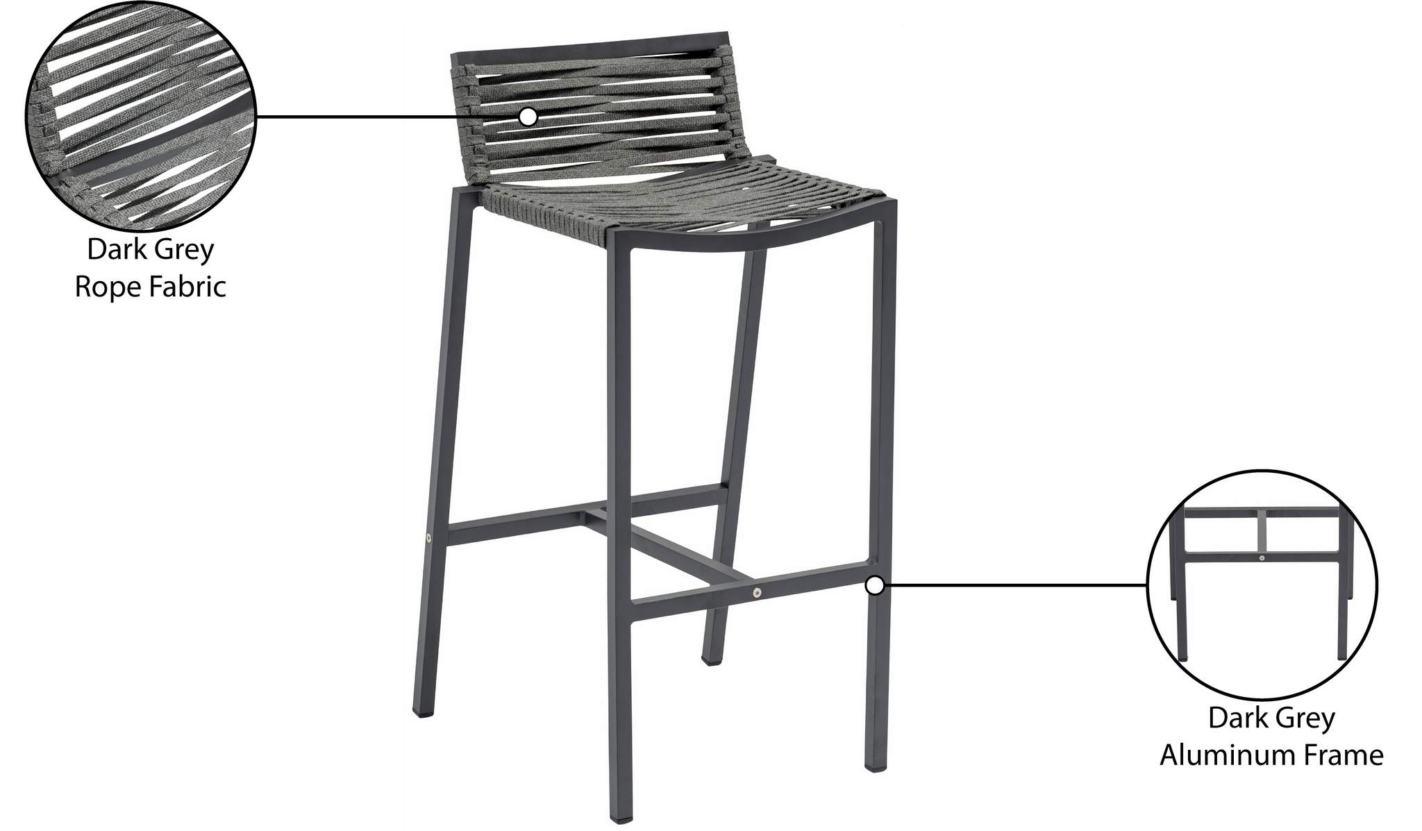 Bring the comfort of the indoors to your outdoor space with this Maldives outdoor patio barstool. This beautiful stool features a grey aluminum frame with quality construction, so you can count on it weathering the outdoors without skipping a beat. A grey rope fabric seat and back supports you comfortably as you rest and relax under the sun, while the design gives definitive resort appeal.