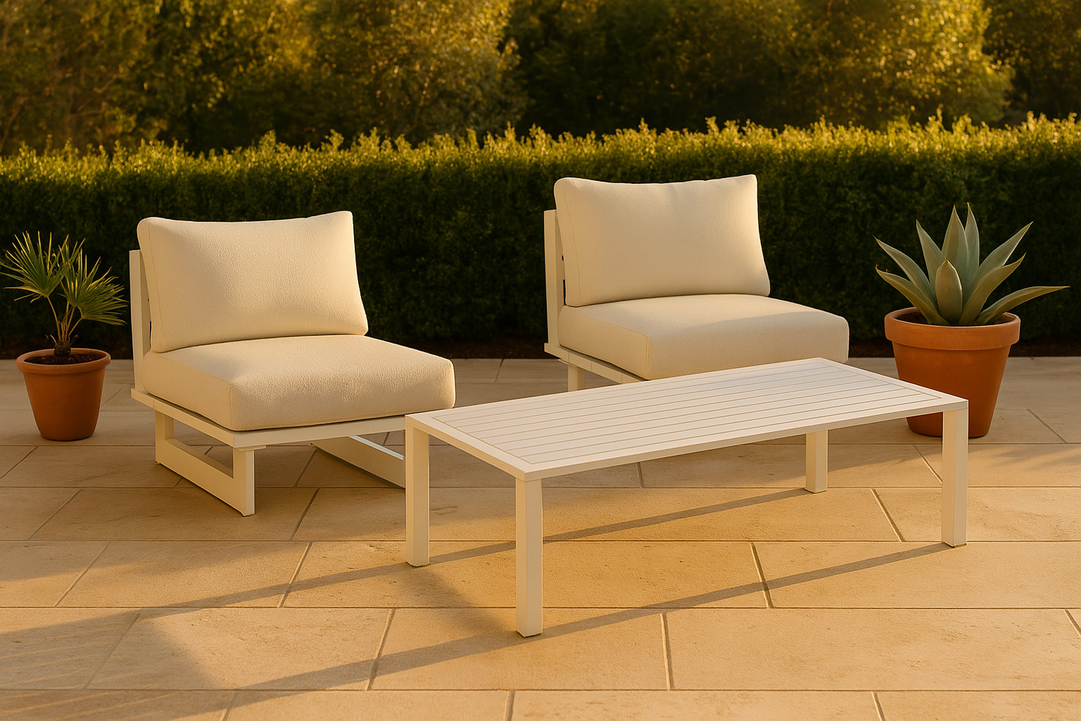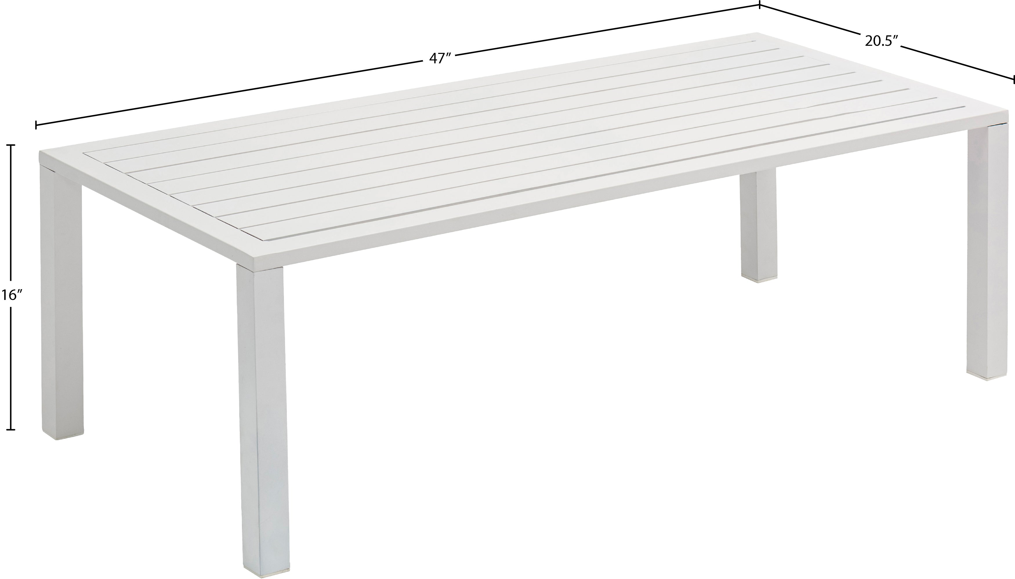Maldives White Aluminum Outdoor Patio Coffee Table | Meridian Furniture - 346White-CT