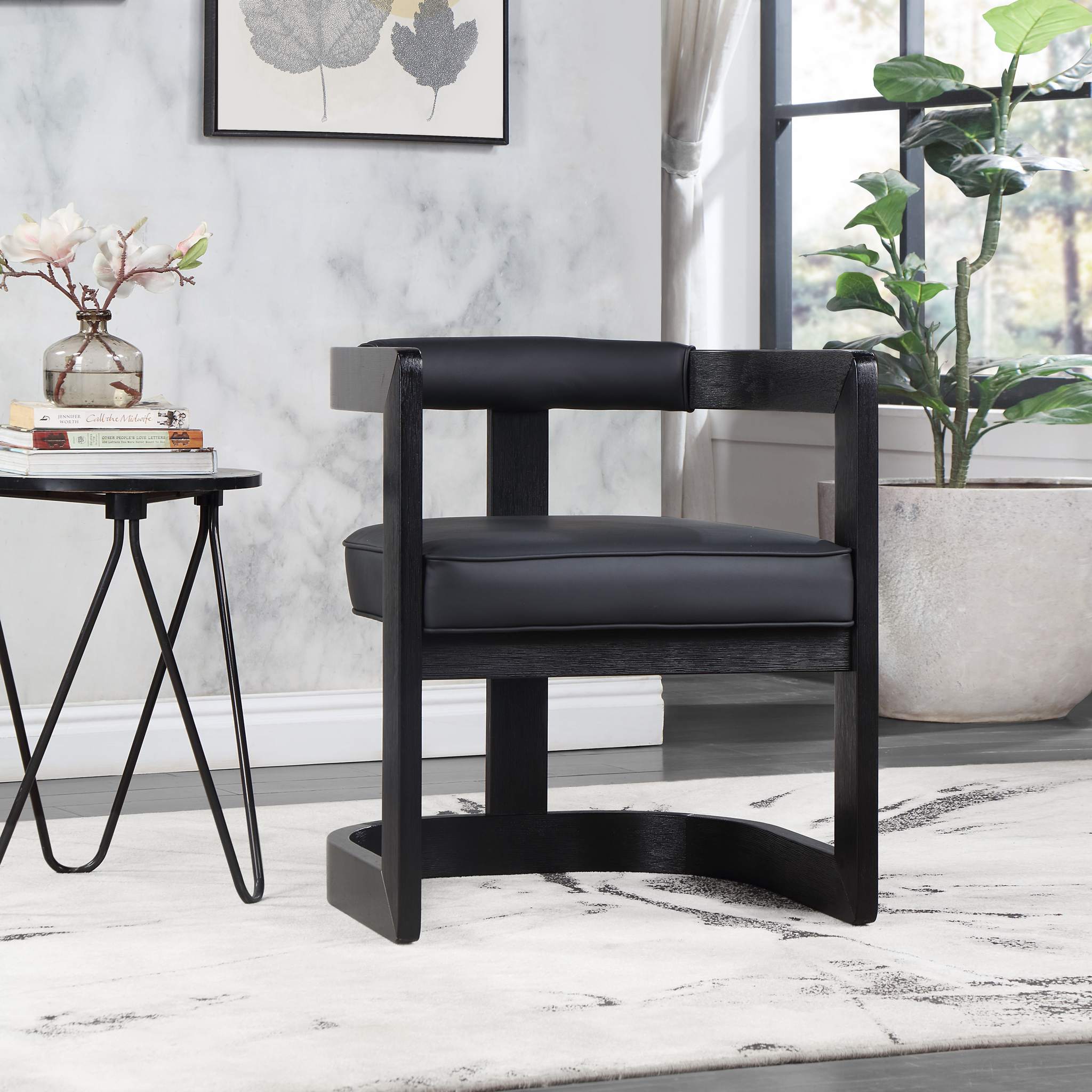 Manchester Black Vegan Leather Upholstered Dining Chair | Meridian Furniture - 591Black-C